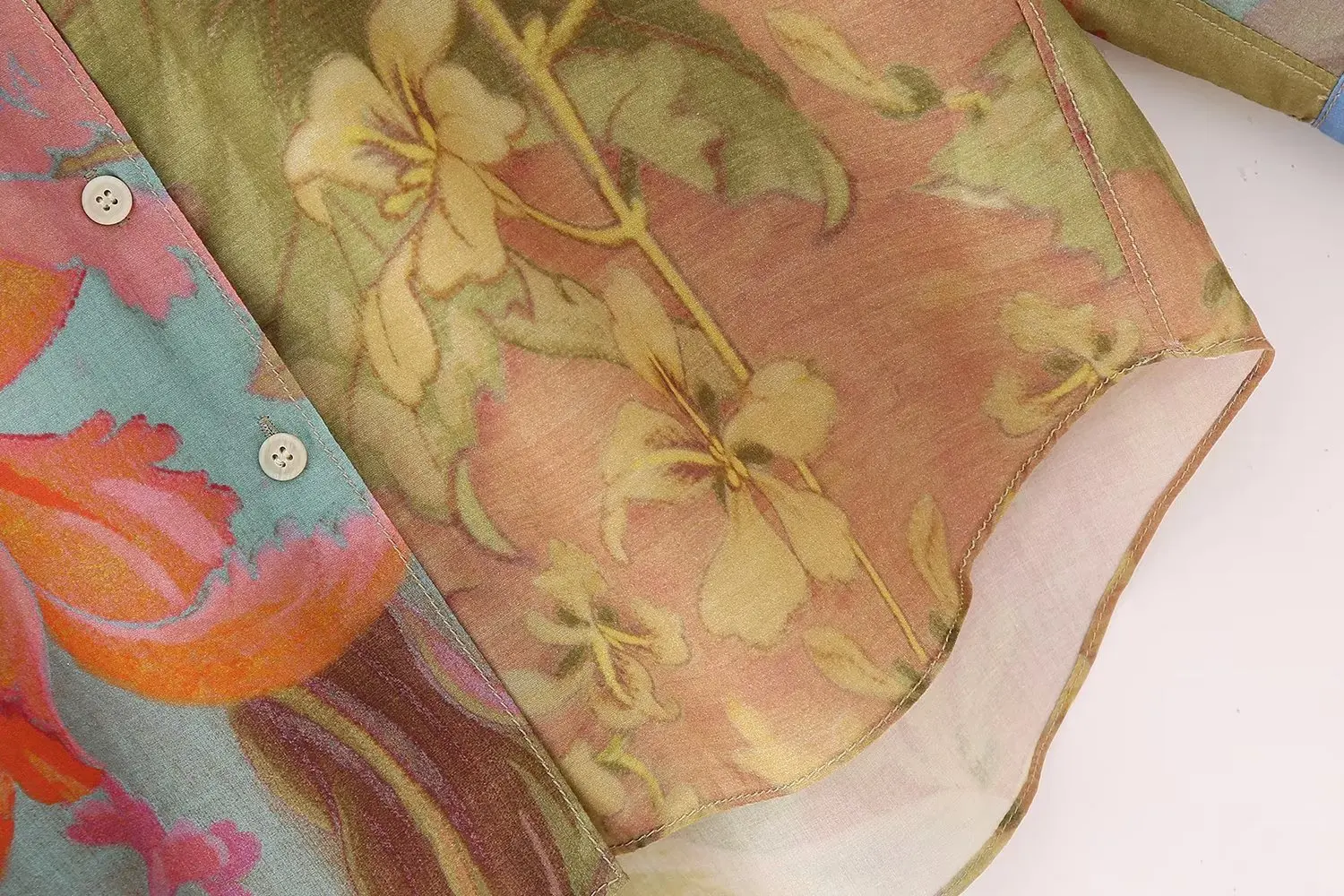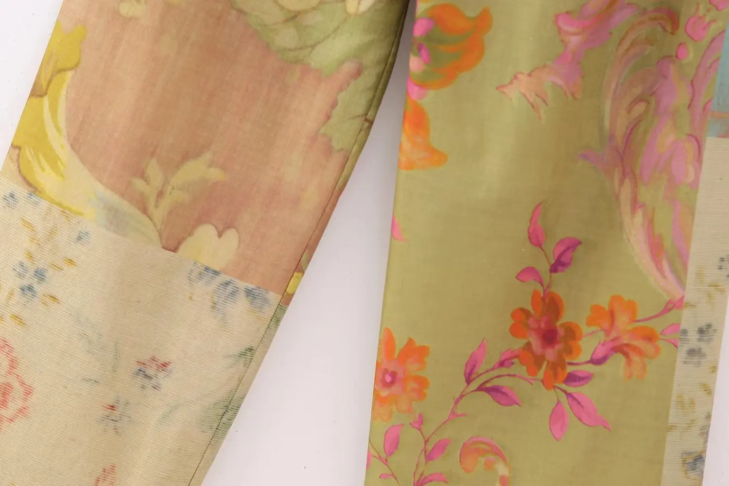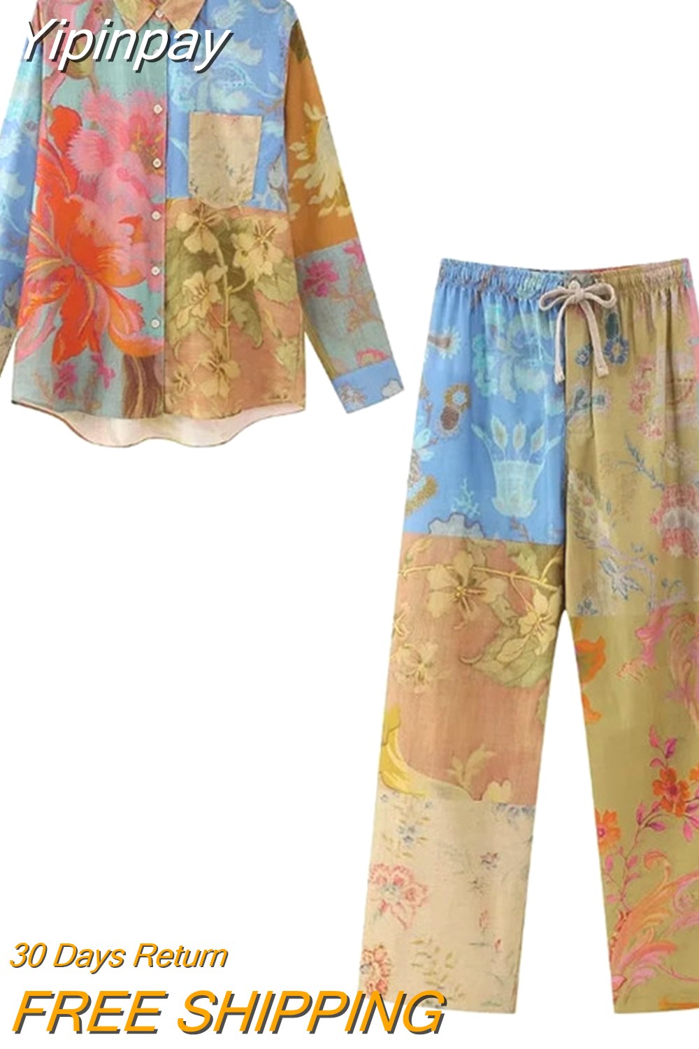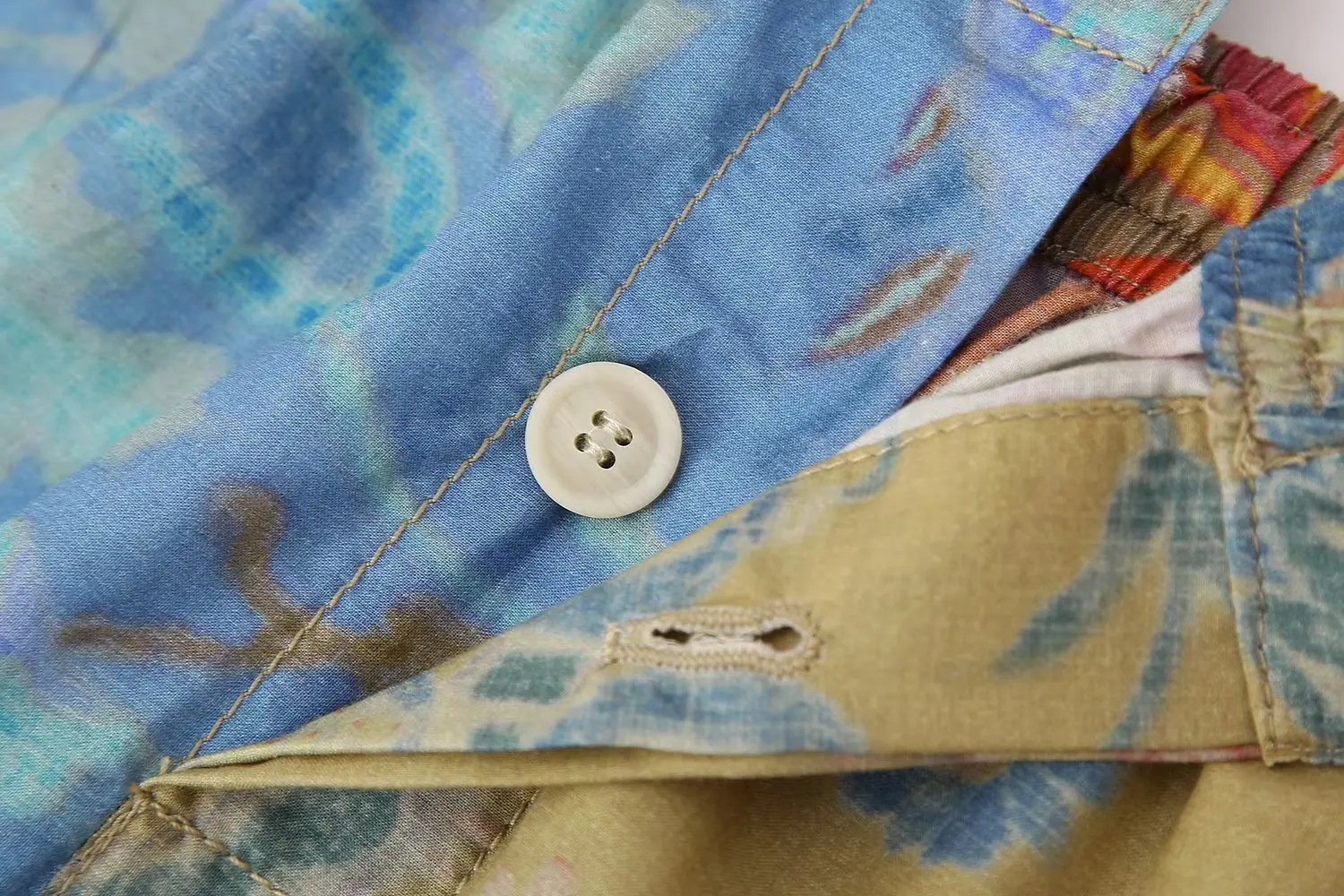 Yipinpay Patchwork Print Shirts And Blouses For Women Vintage Button Up Shirt Women Asymmetric Long Sleeve Top Female Summer Tops