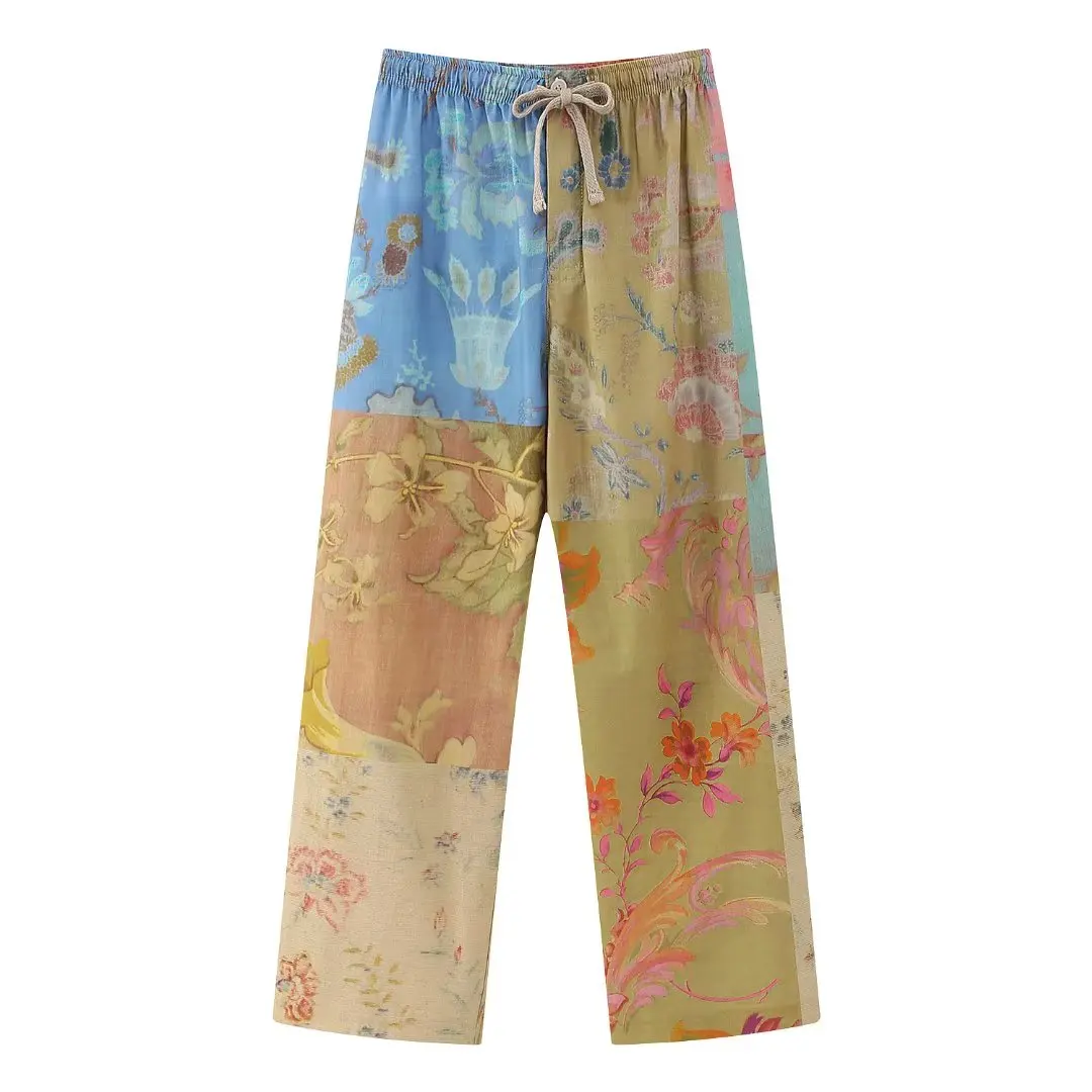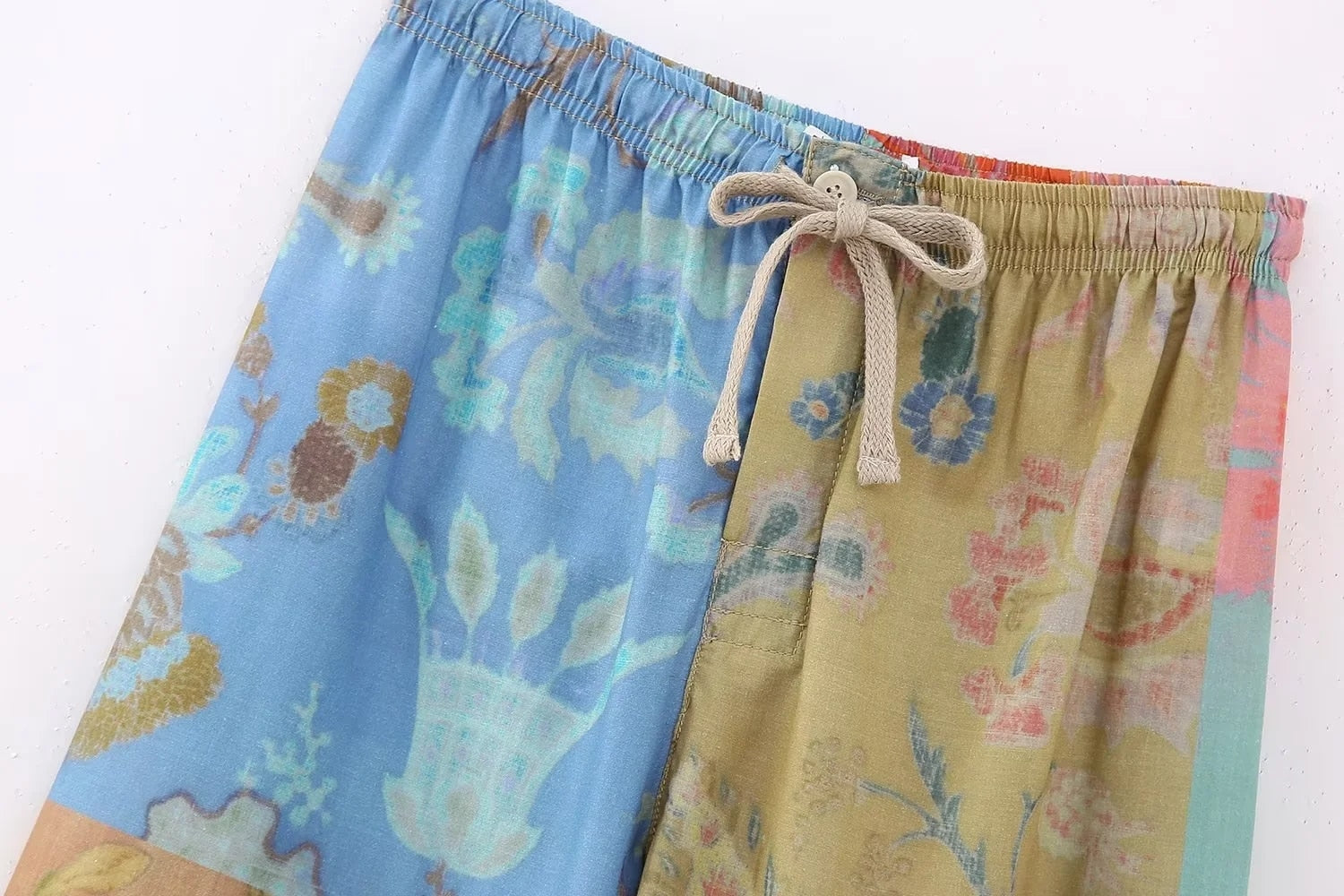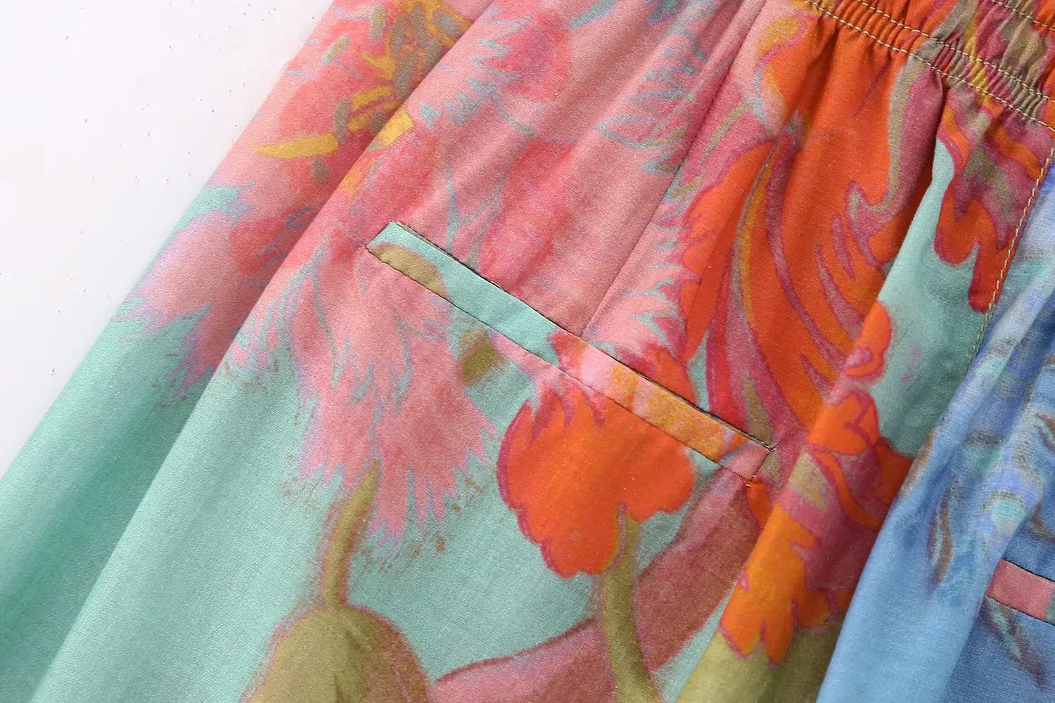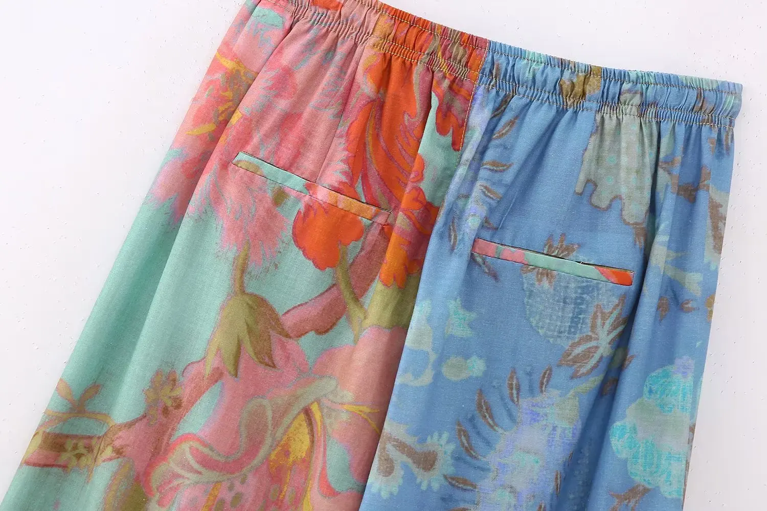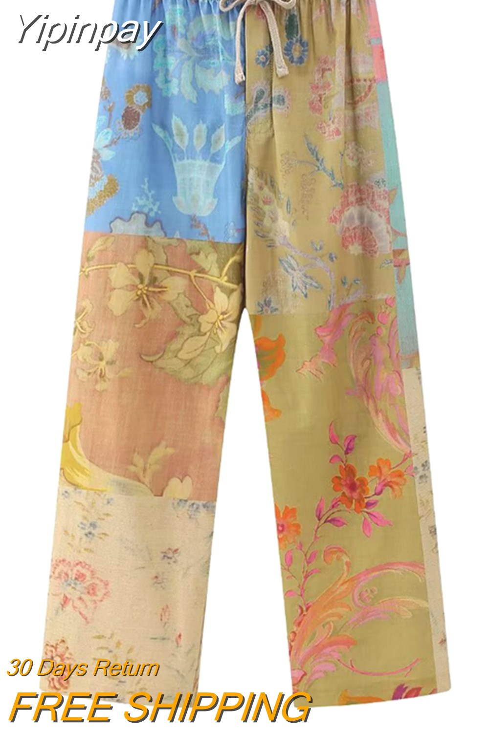 Yipinpay Patchwork Print Shirts And Blouses For Women Vintage Button Up Shirt Women Asymmetric Long Sleeve Top Female Summer Tops