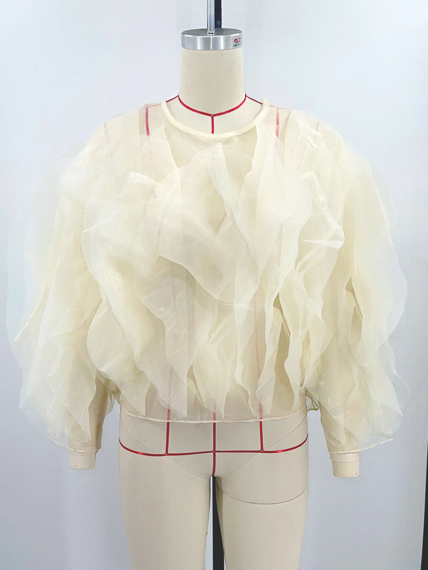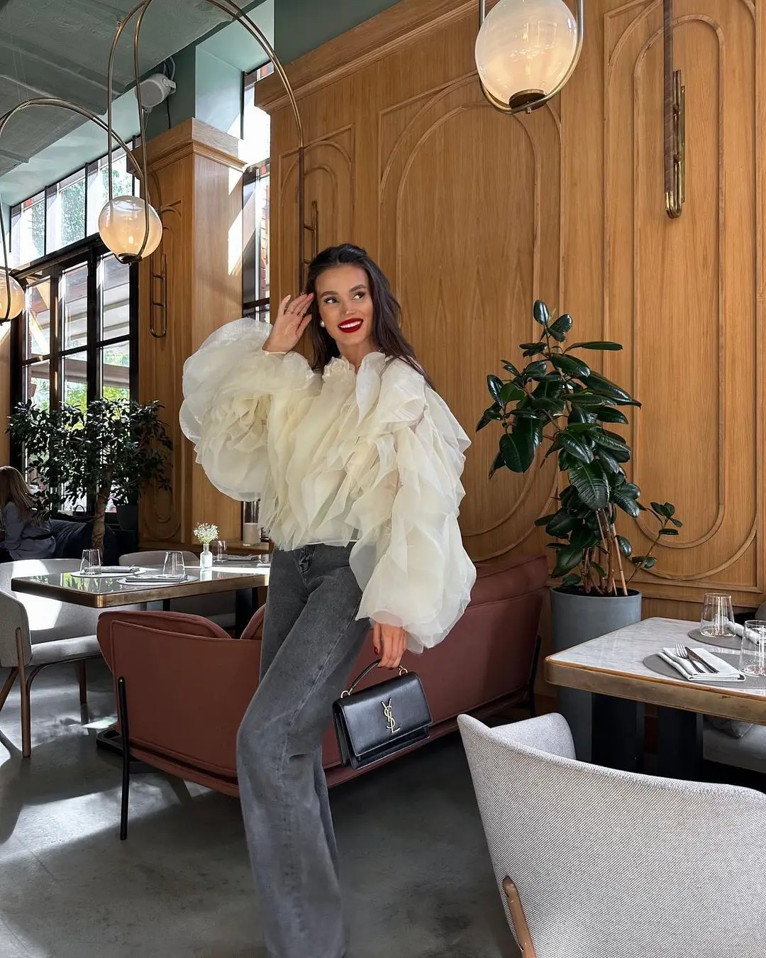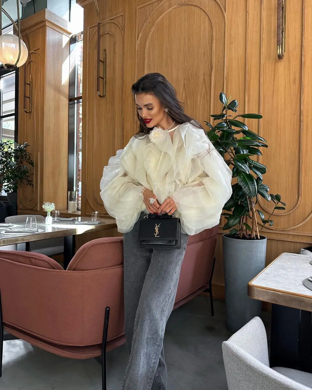Yipinpay Patchwork Ruffled White Shirts Fashion Elegant For Women High Waist Long Sleeve Casual Streetwear Ladies Blouse Top 2024