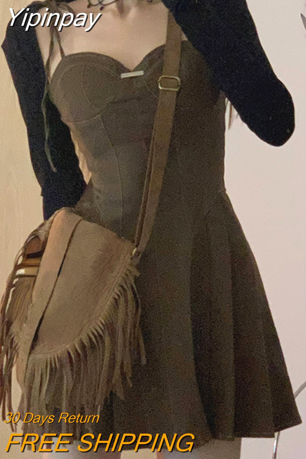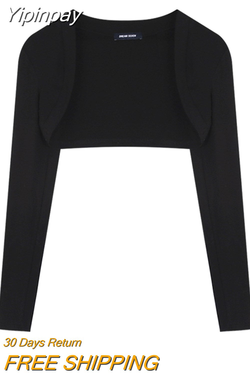 Yipinpay Piece Dress Set Woman Casual Long Sleeve Crop Tops + Pure Color Strap Mini Dress Elegant Korea Fashion Suit Female 2023 Autumn