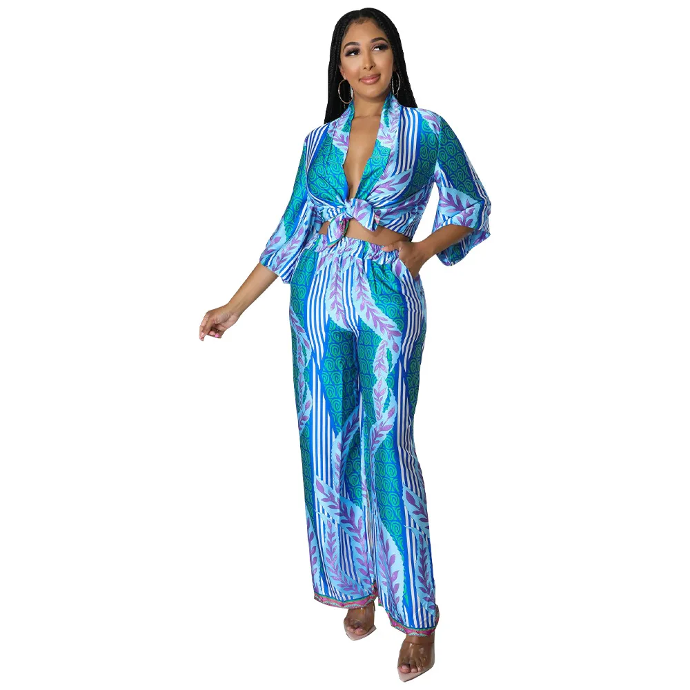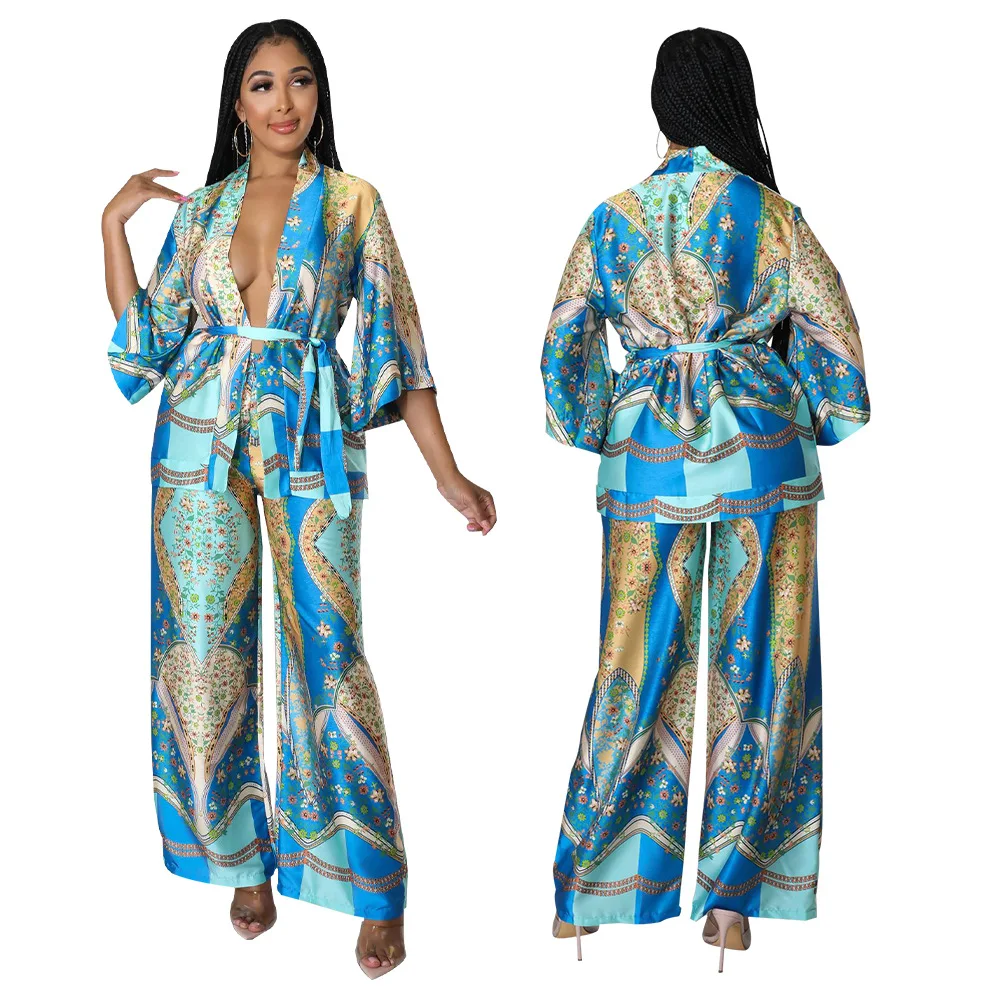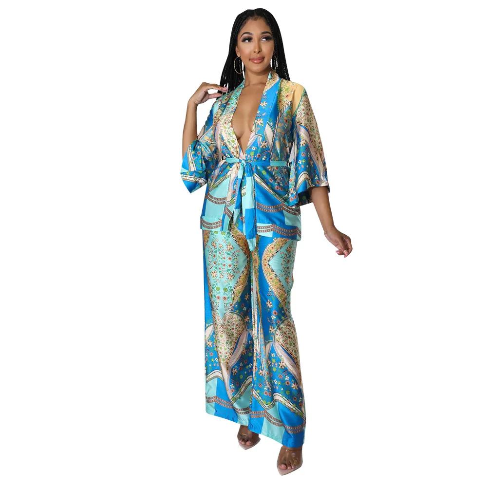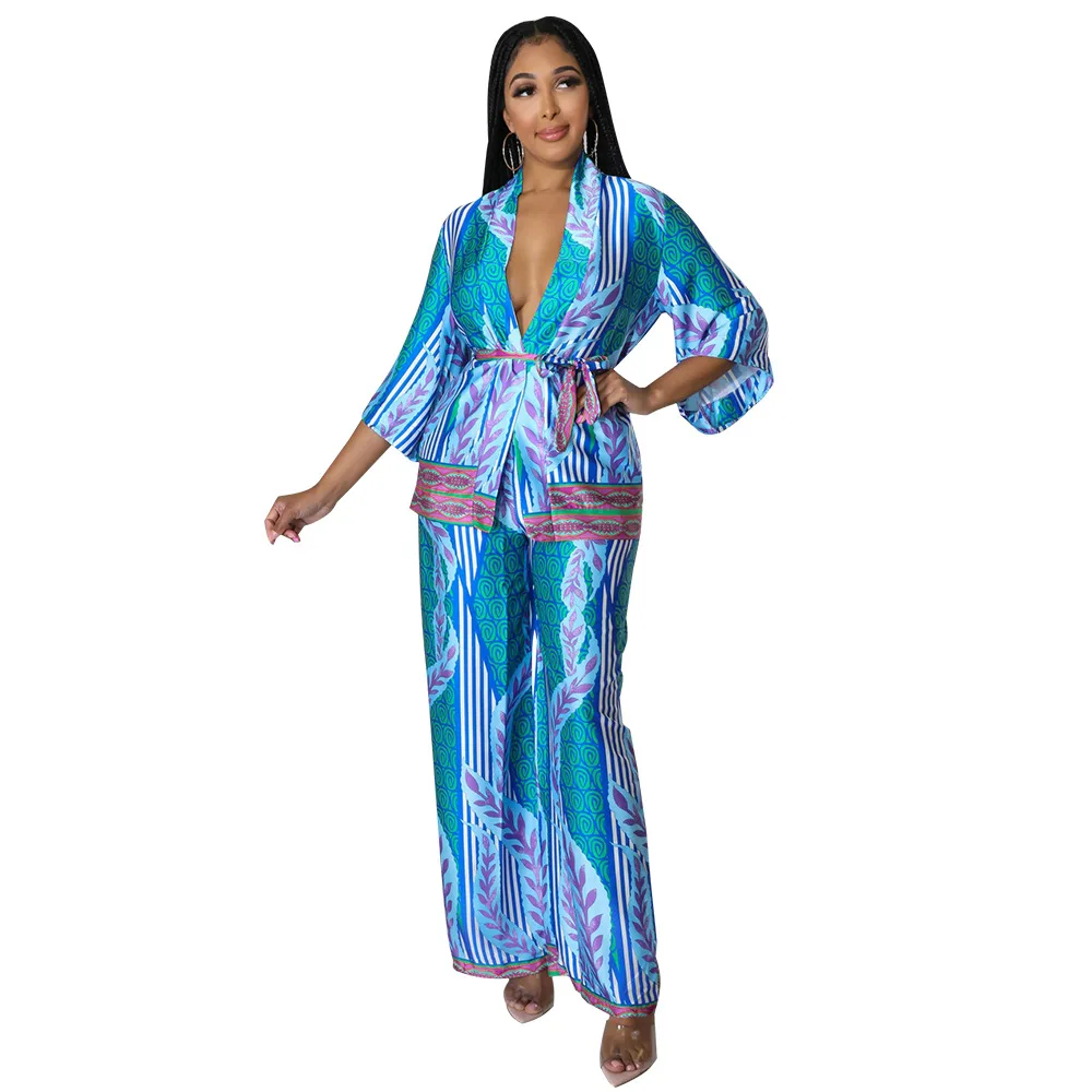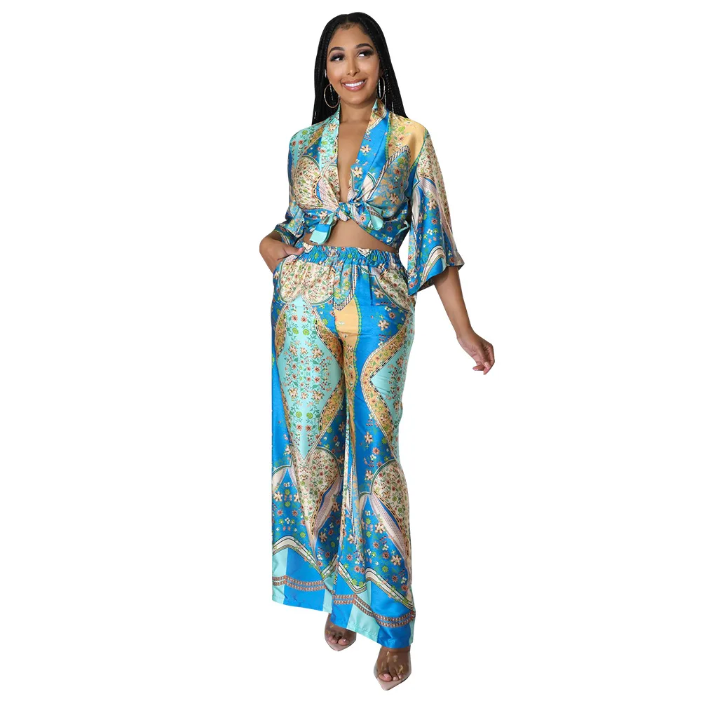 Yipinpay Piece Women Sets 2023 New Arrival Summer Autumn Matching Sets Flower Print Two Pieces Sets Top Pants Suits Outfits Clothing