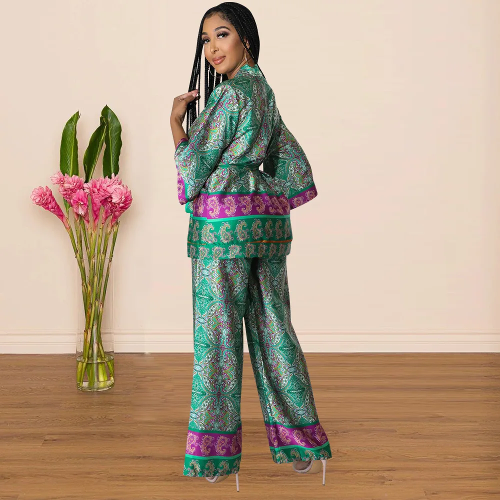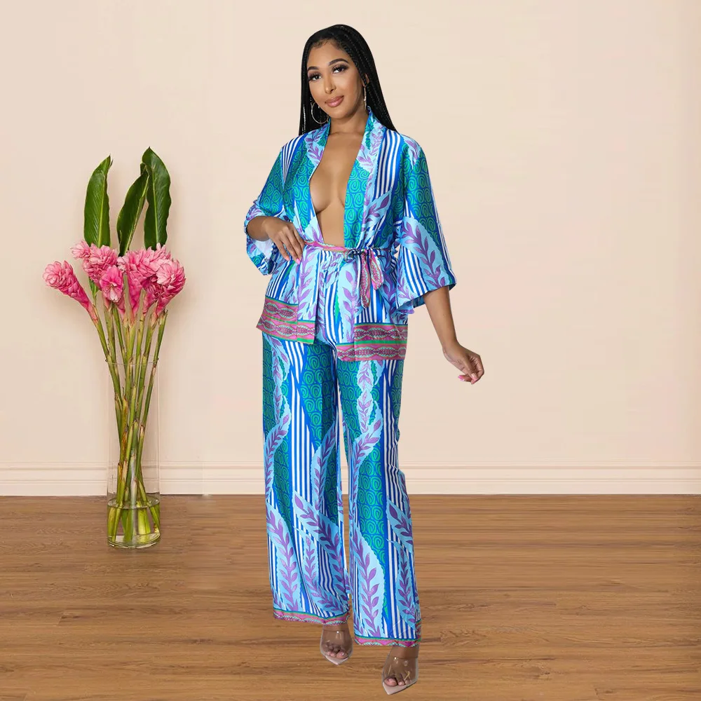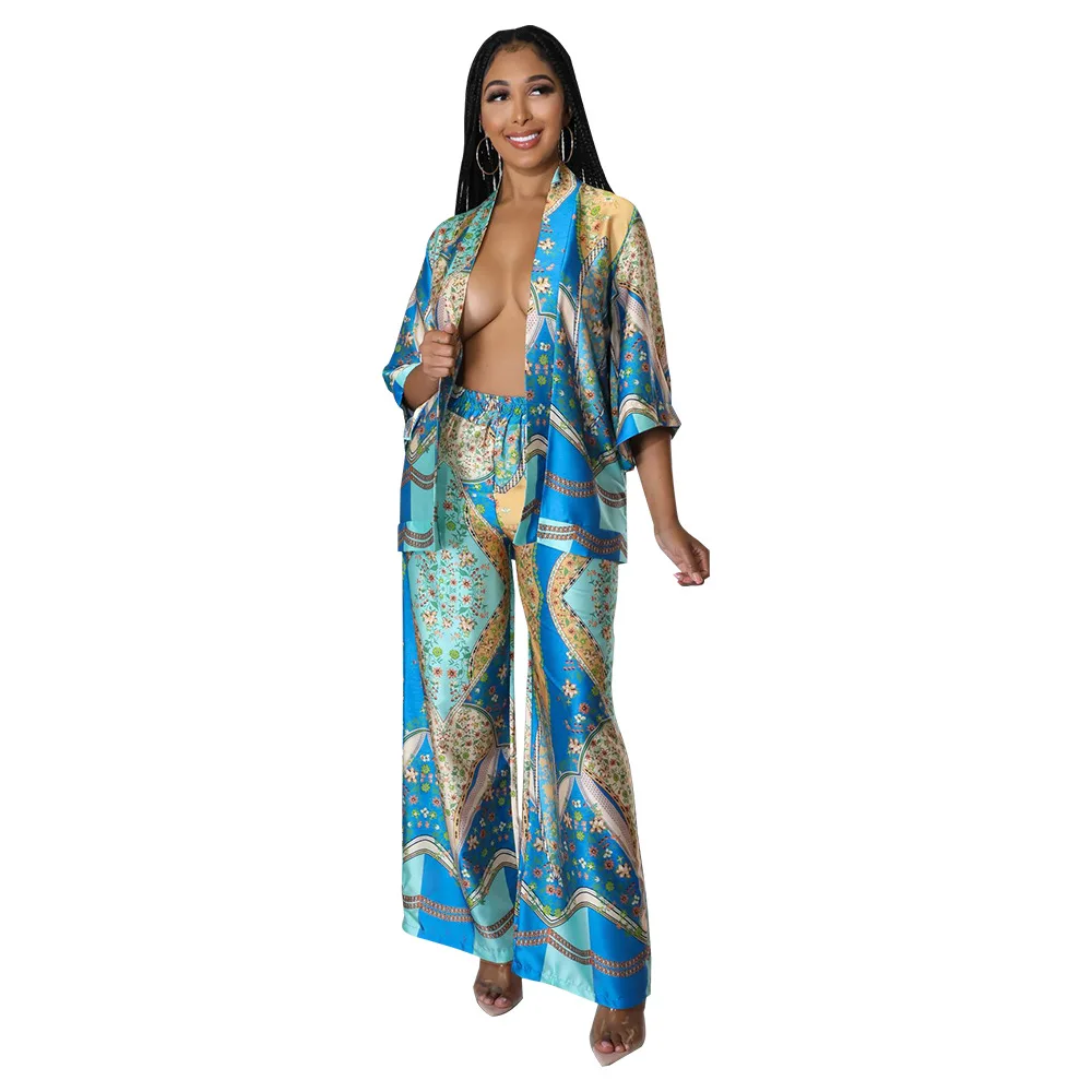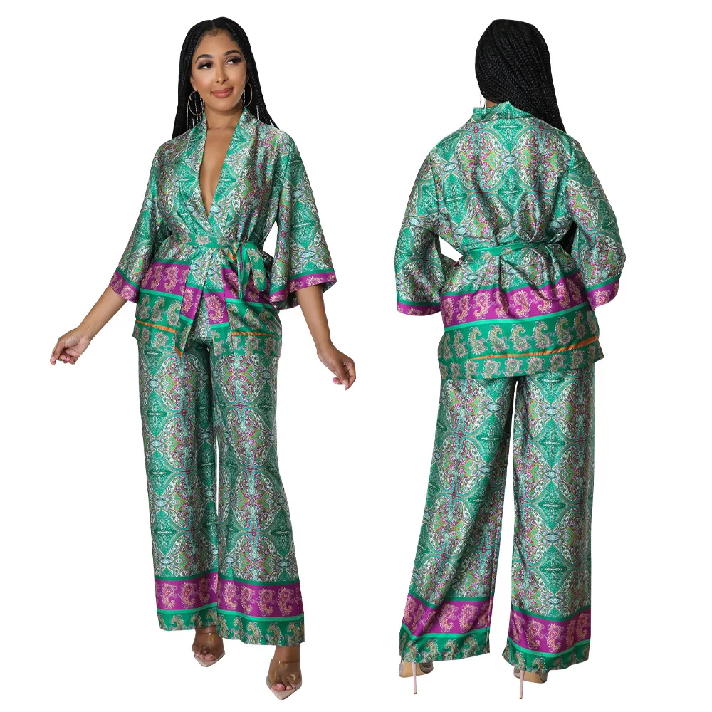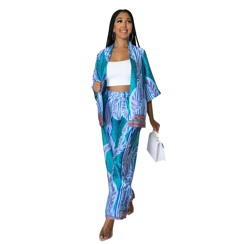 Yipinpay Piece Women Sets 2023 New Arrival Summer Autumn Matching Sets Flower Print Two Pieces Sets Top Pants Suits Outfits Clothing