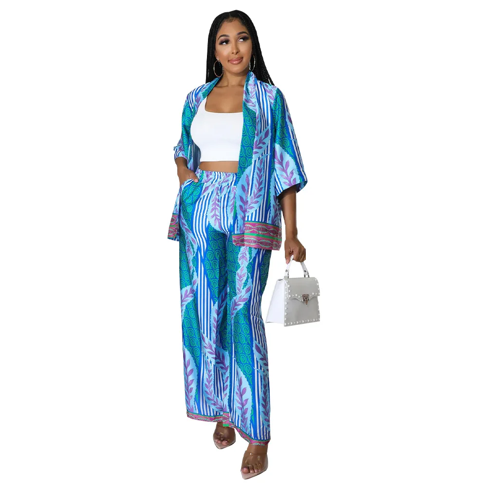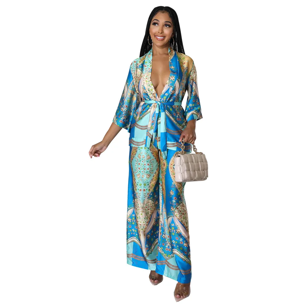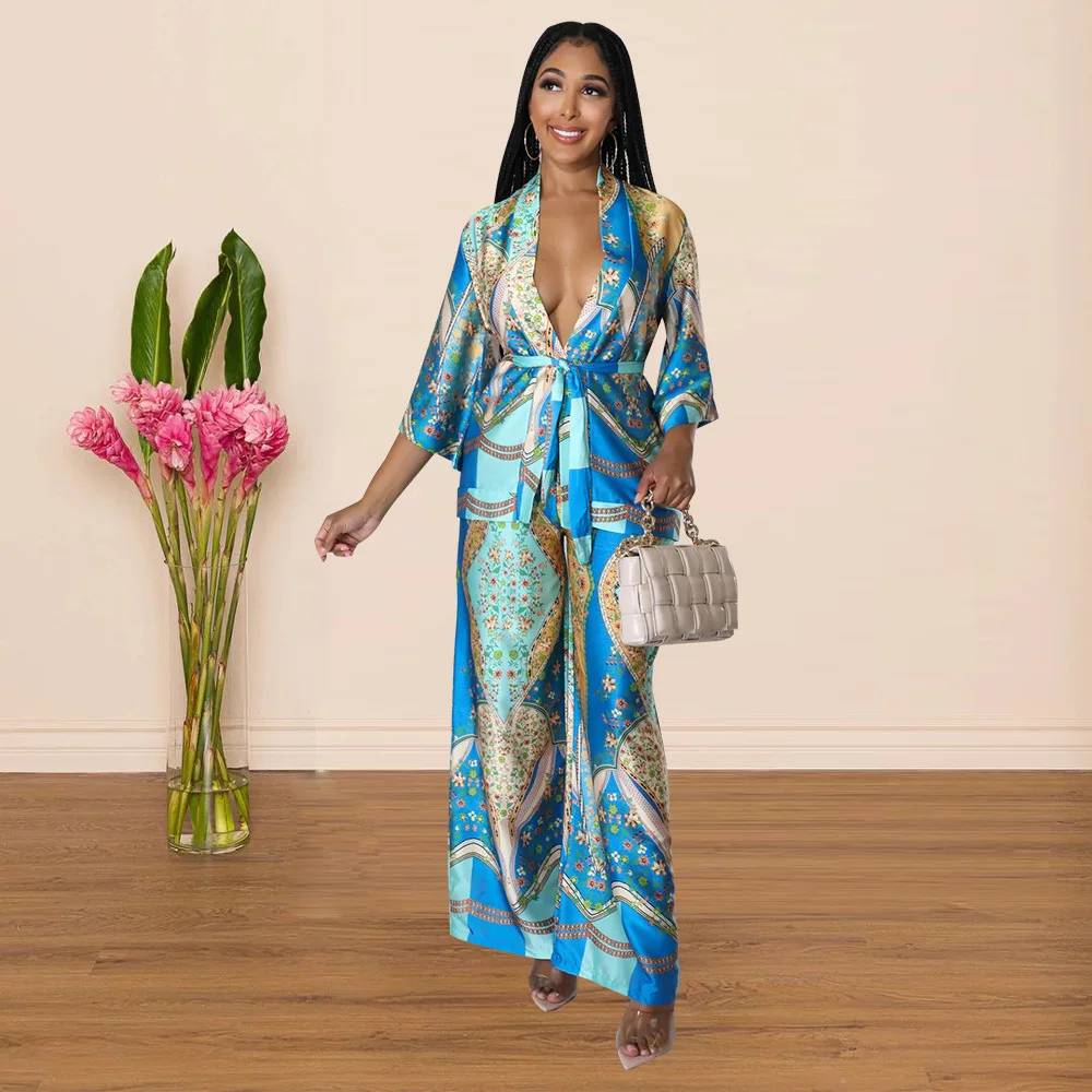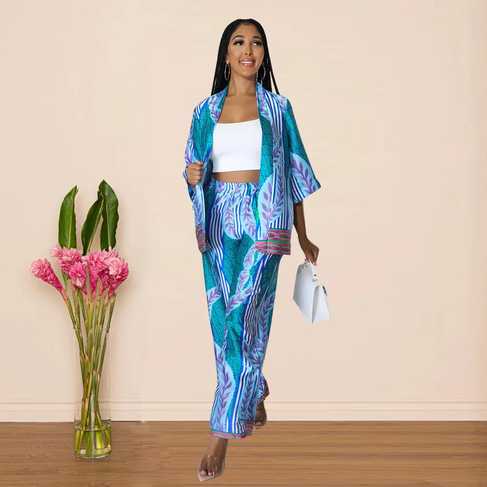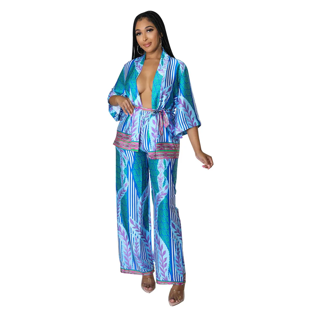 Yipinpay Piece Women Sets 2023 New Arrival Summer Autumn Matching Sets Flower Print Two Pieces Sets Top Pants Suits Outfits Clothing