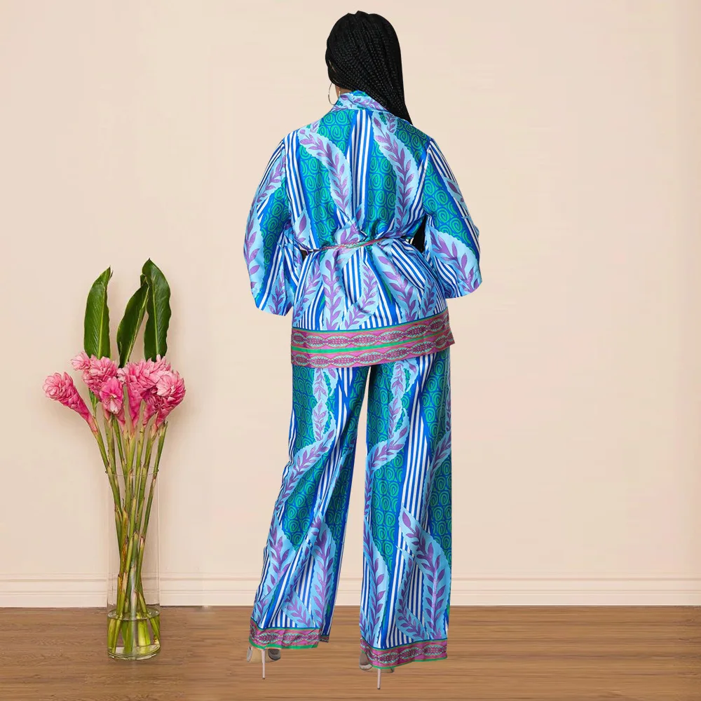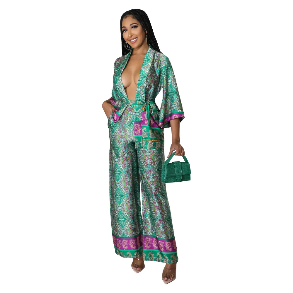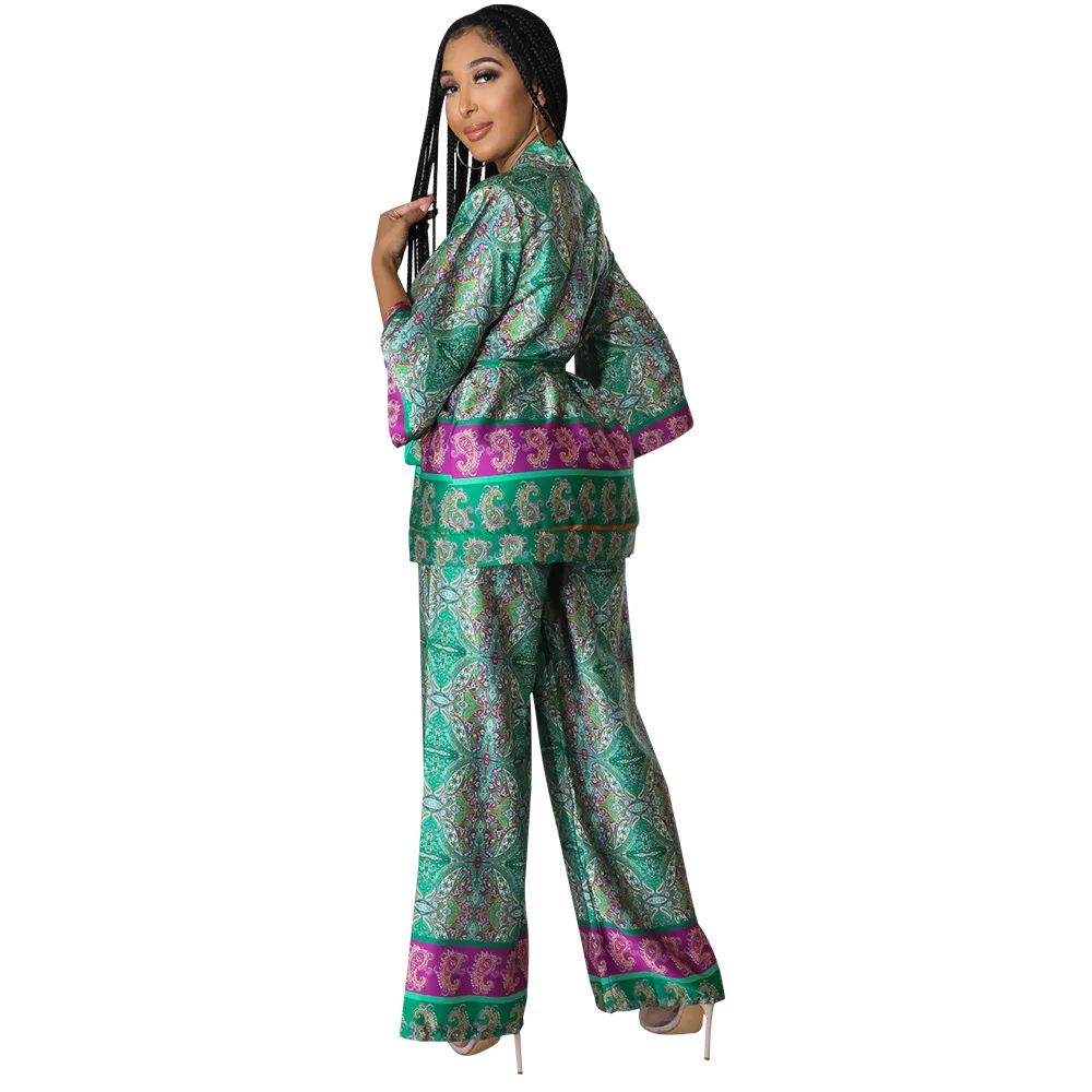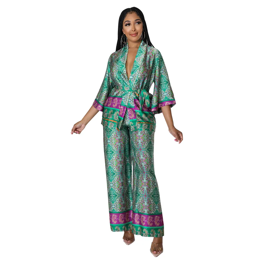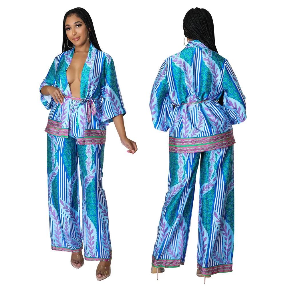 Yipinpay Piece Women Sets 2023 New Arrival Summer Autumn Matching Sets Flower Print Two Pieces Sets Top Pants Suits Outfits Clothing