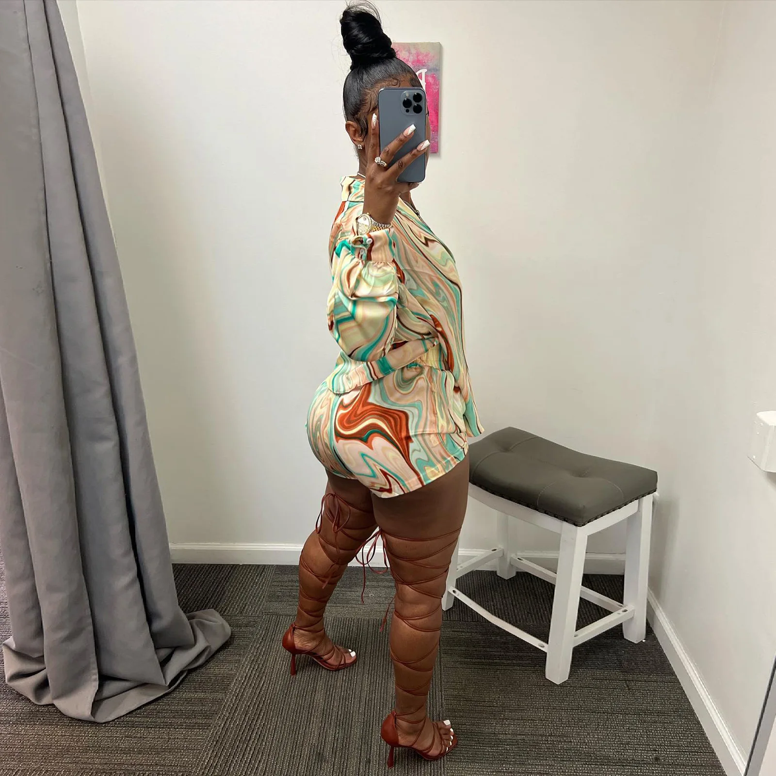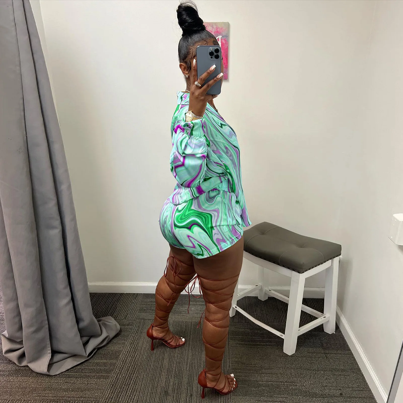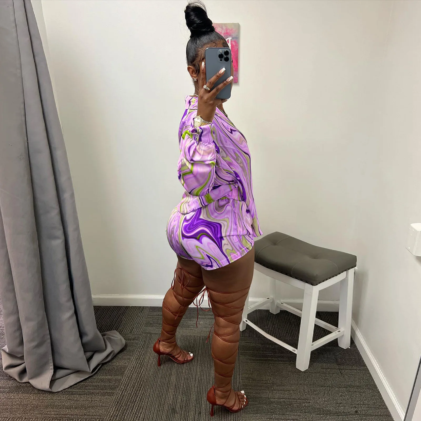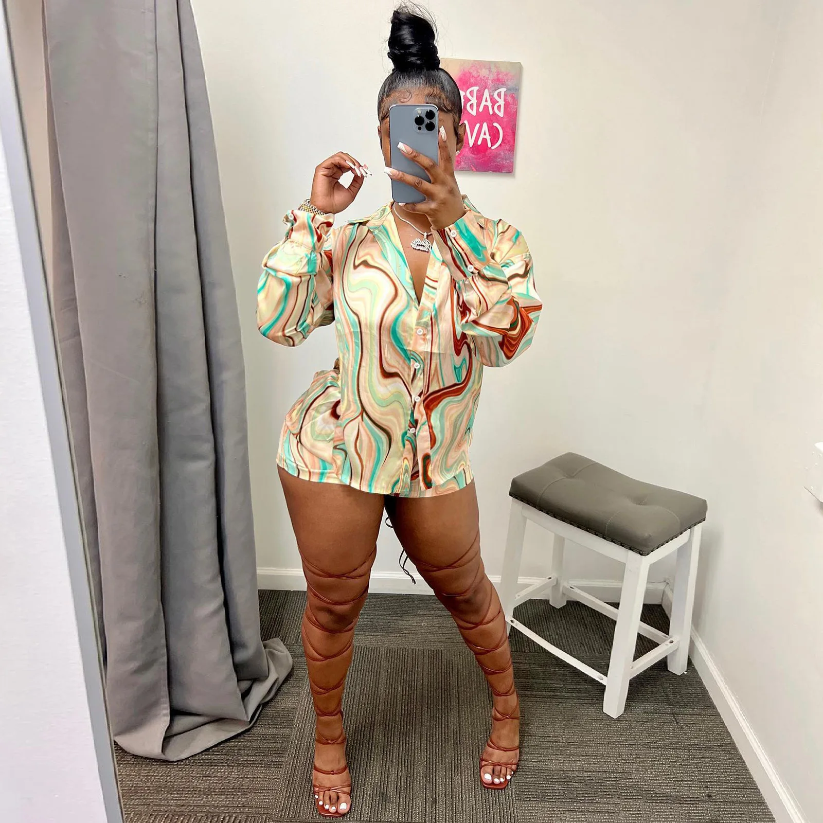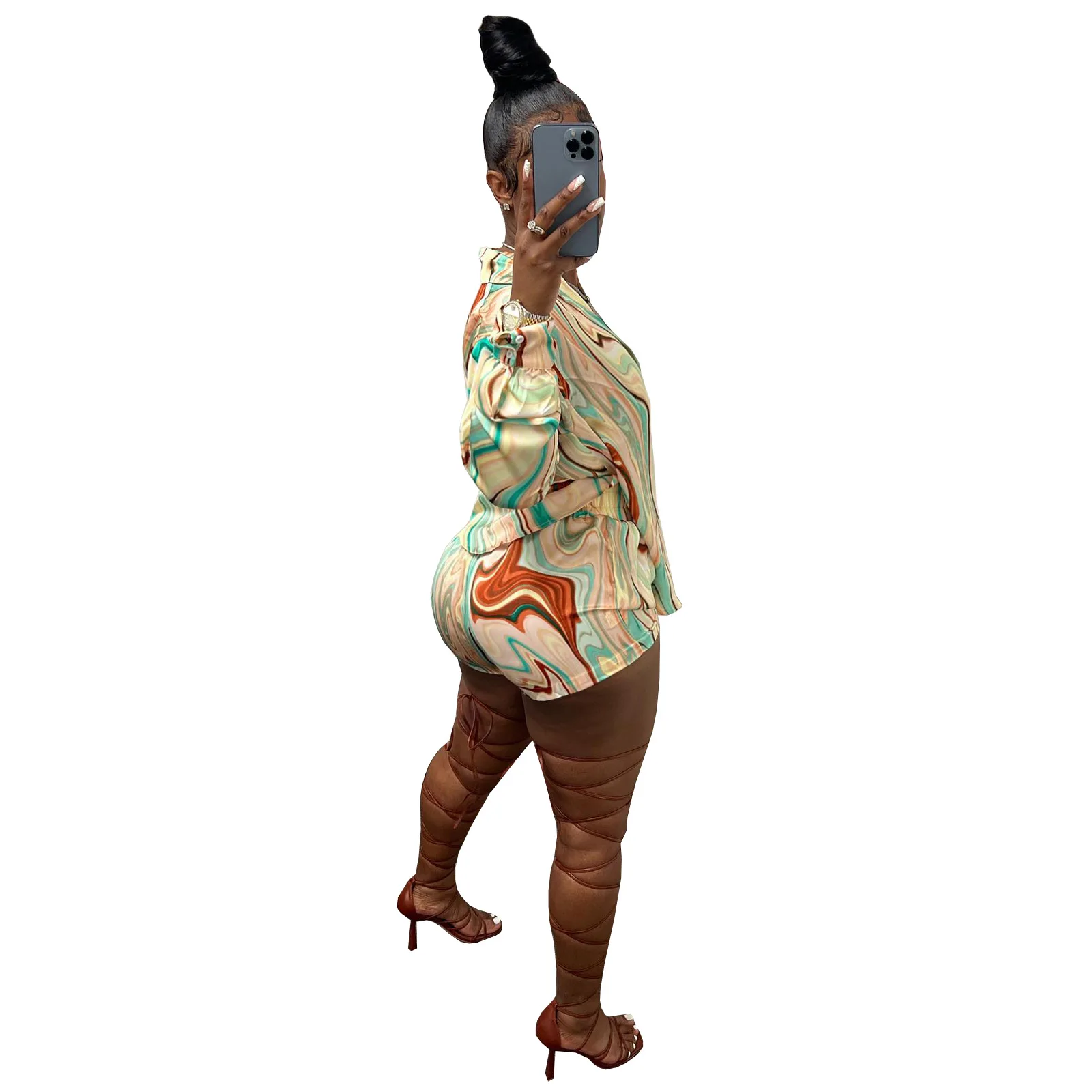 Yipinpay Pieces Set Sexy Summer Autumn Fashion Women Sets 2023 Stripe Long Sleeve Shirt Tops And Elastic Waist Shorts Suits Outfit