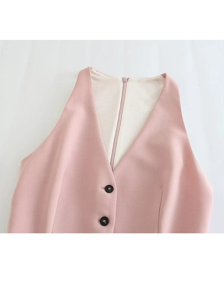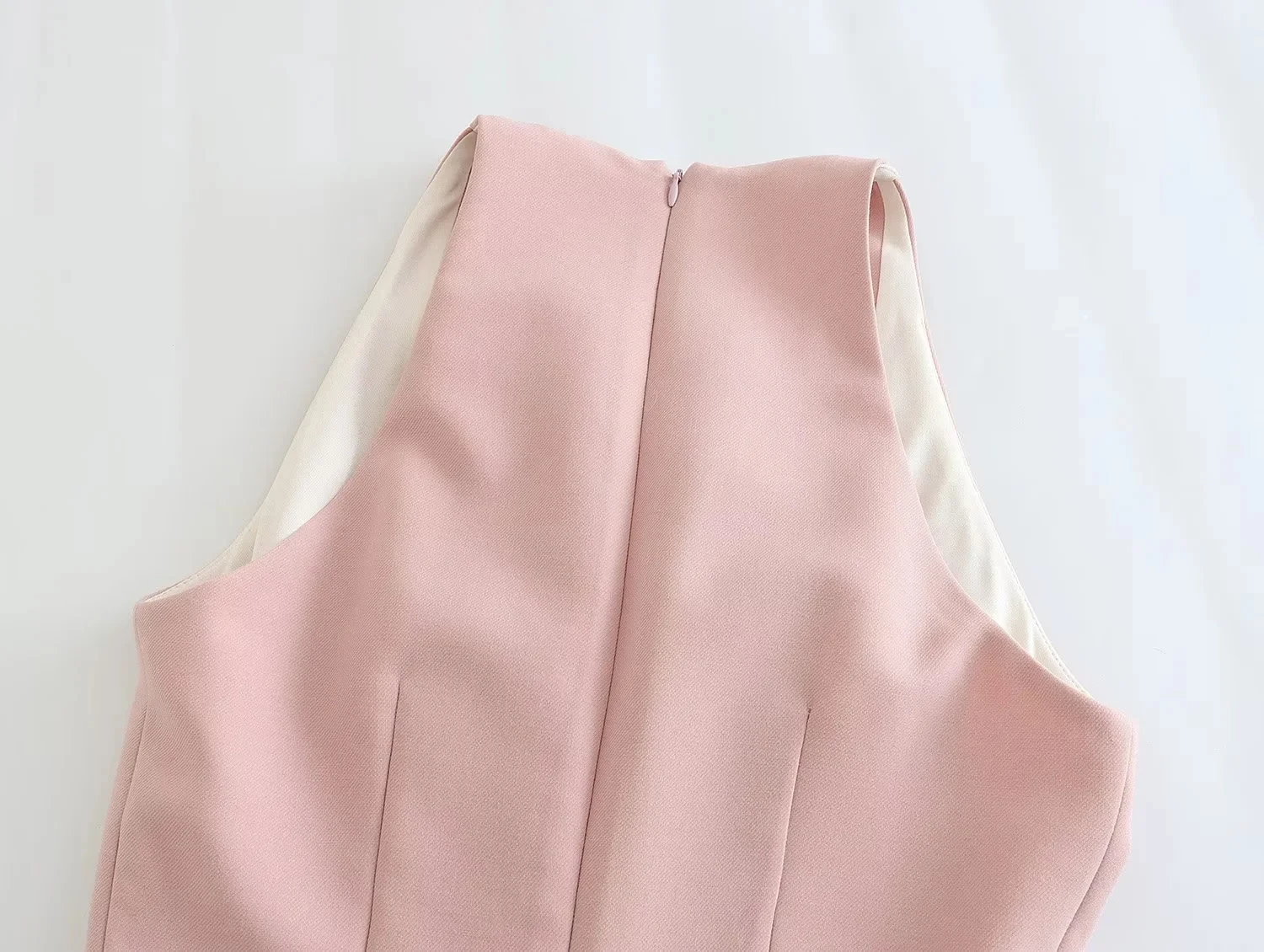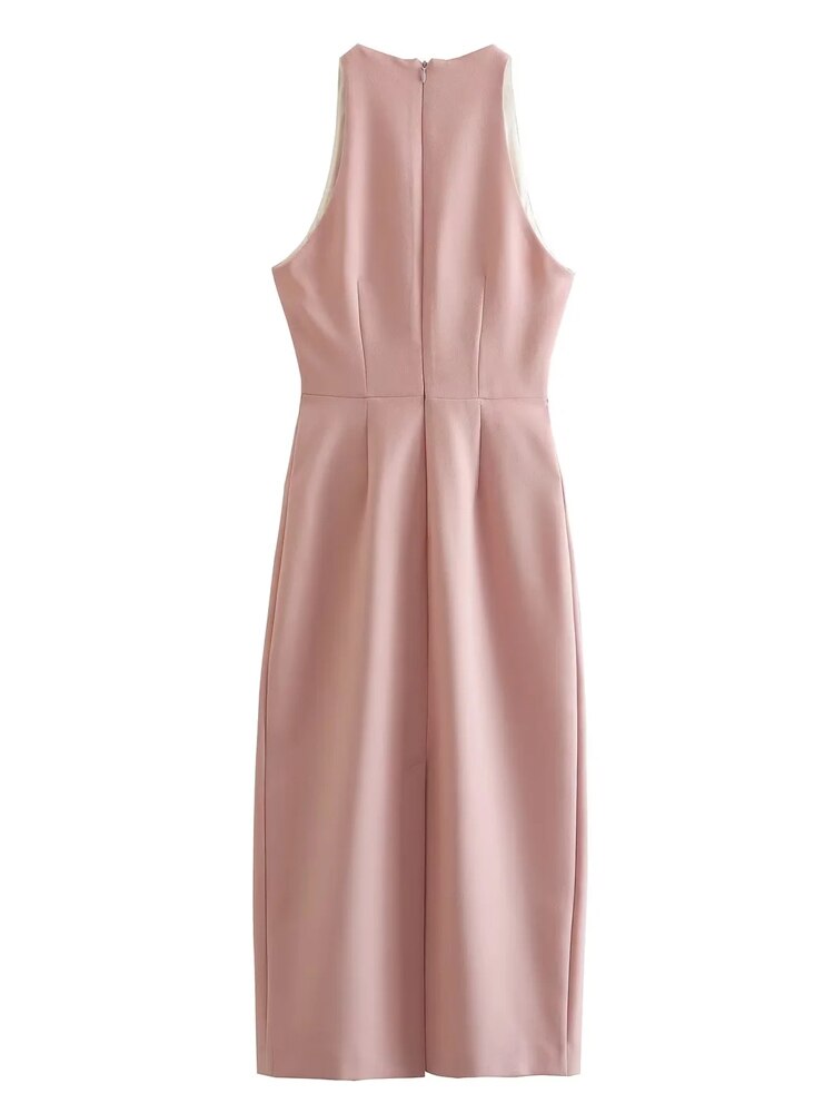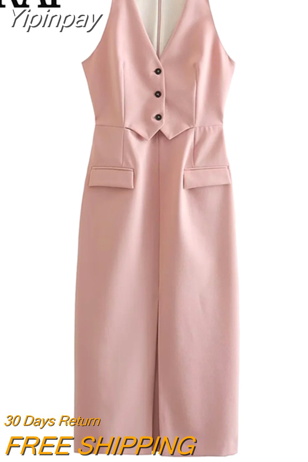 Yipinpay Pink Long Dress Women Waistcoat Midi Dress Woman Sleeveless Elegant Dresses For Women 2023 Office Formal Party Dresses