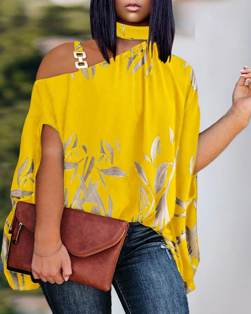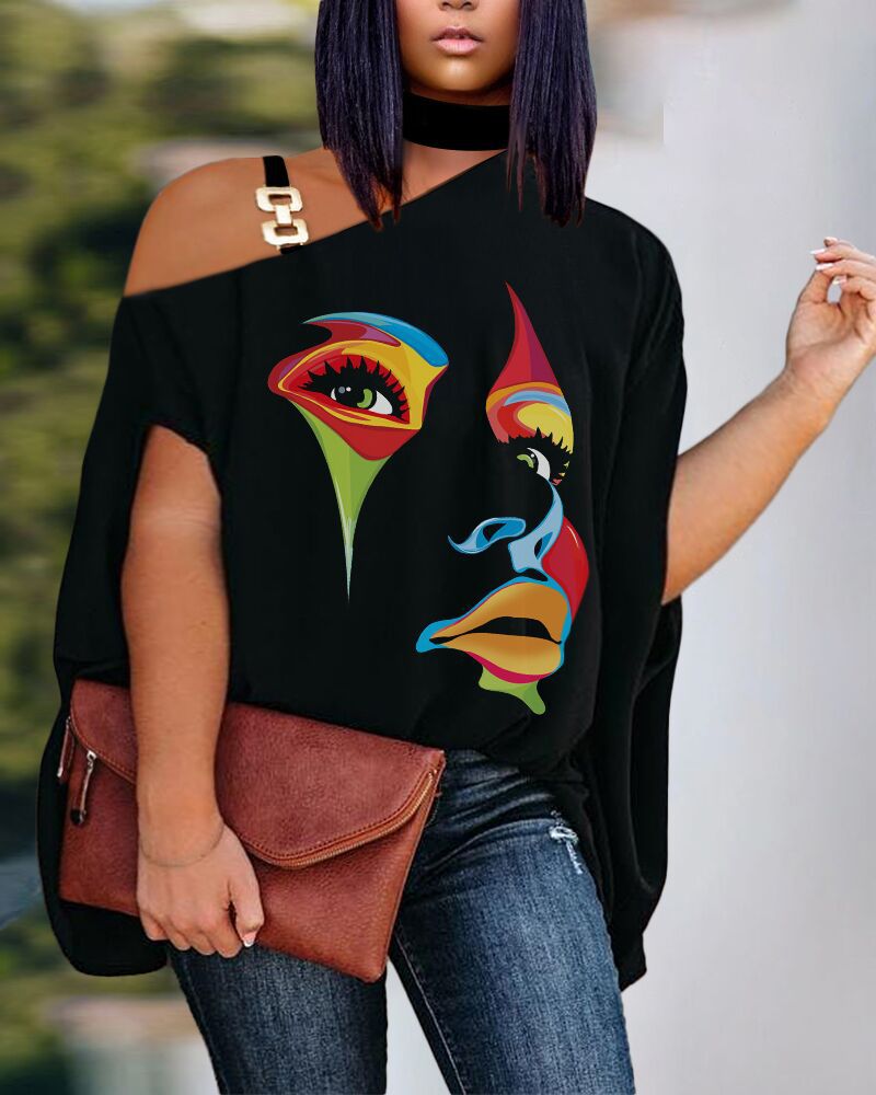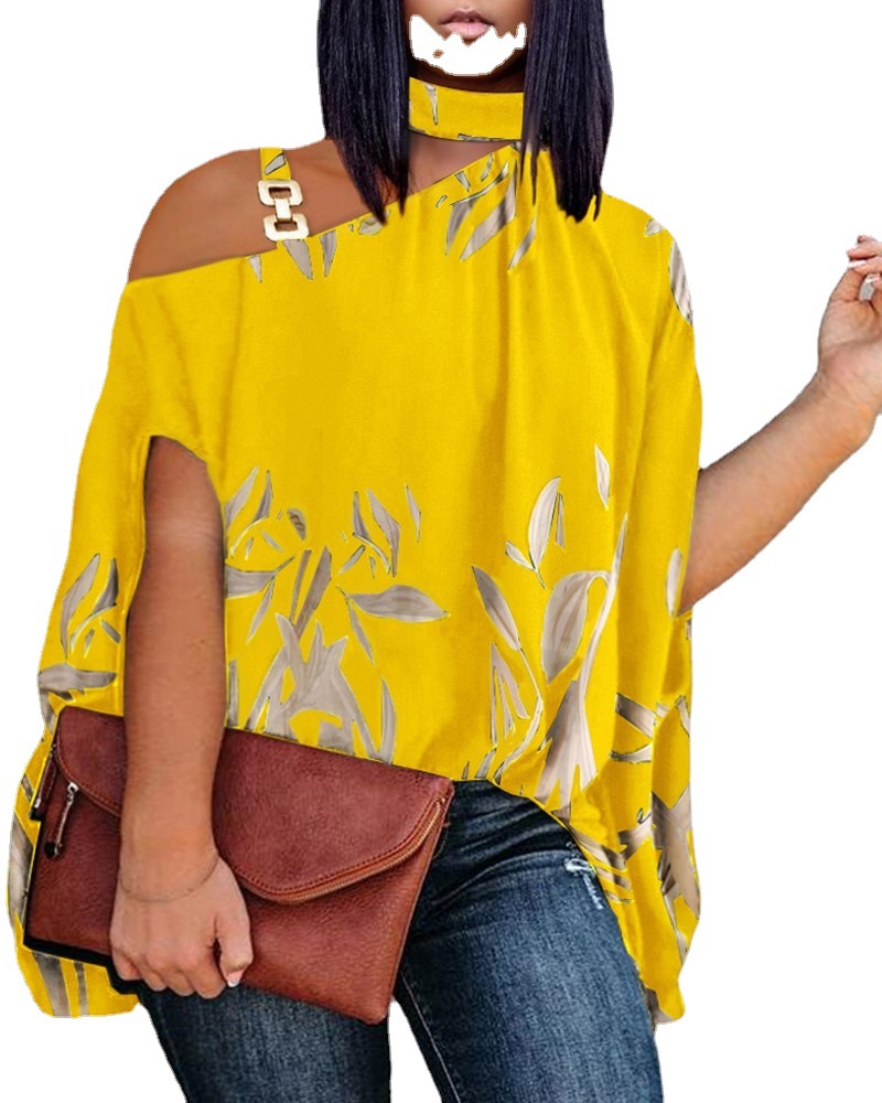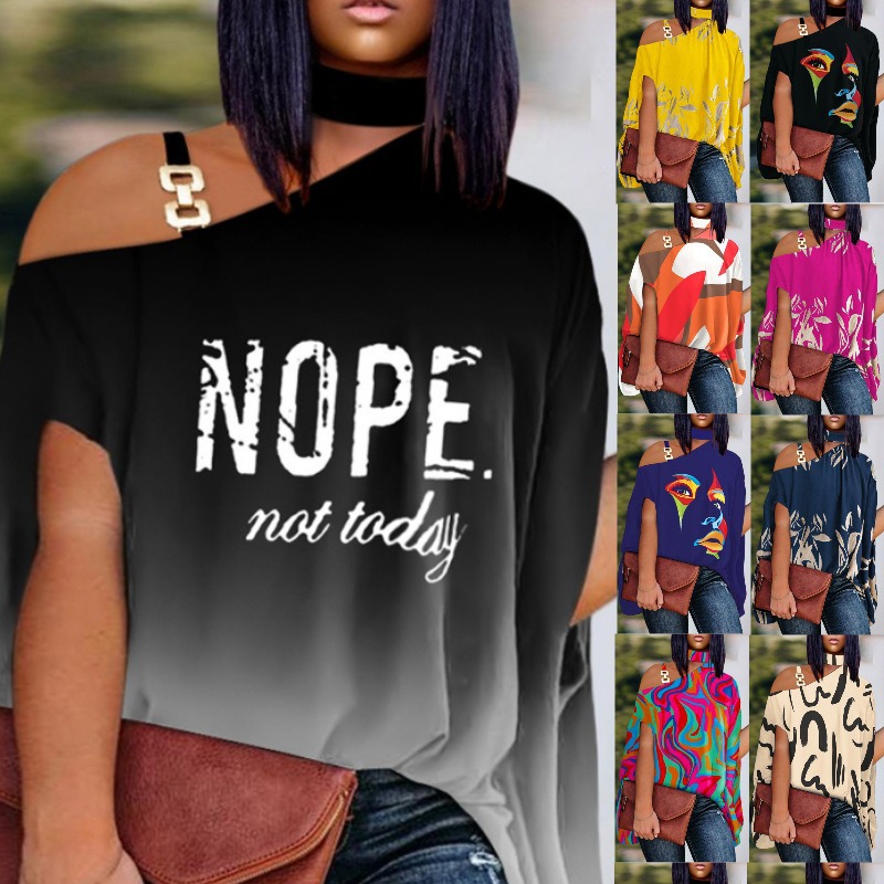Yipinpay Plus-Size Women's Wear 2024 Summer New Fashion Off-Shoulder Casual Printed T-Shirt