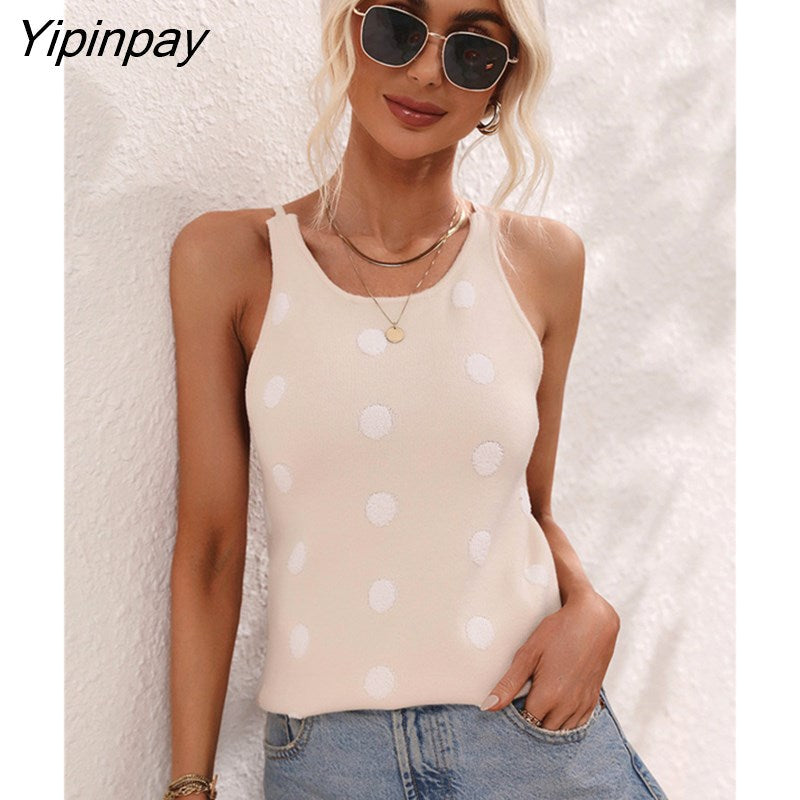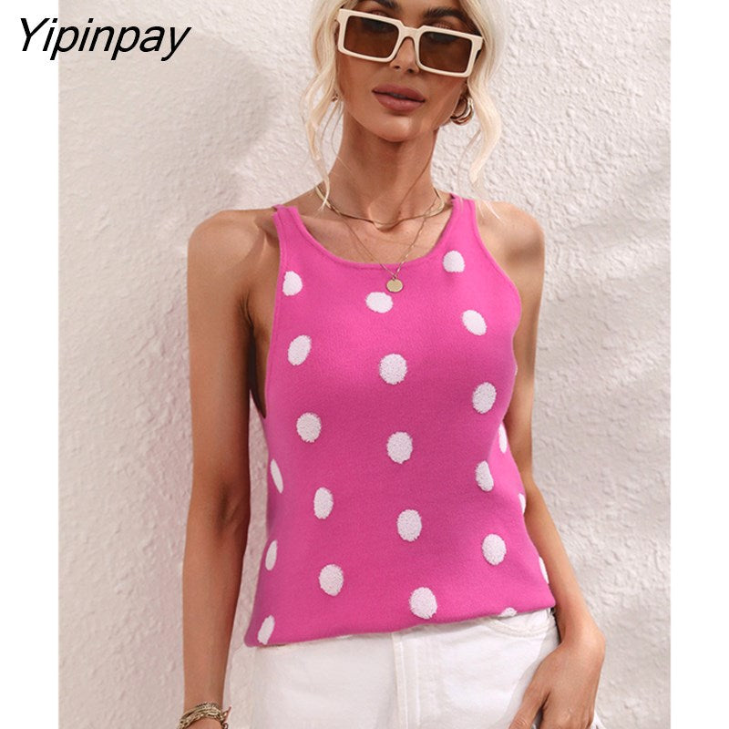 Yipinpay Polka Dot Tank Sexy Knitted Top Summer 2023 Women Rave Outfits Streetwear Sleeveless Basic Vest Knitwear Cute Crop Tops