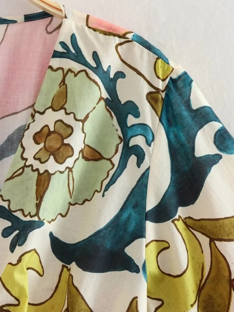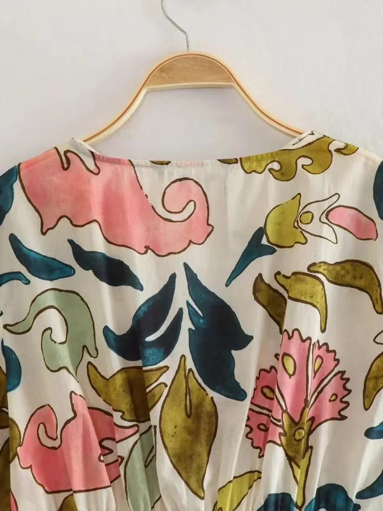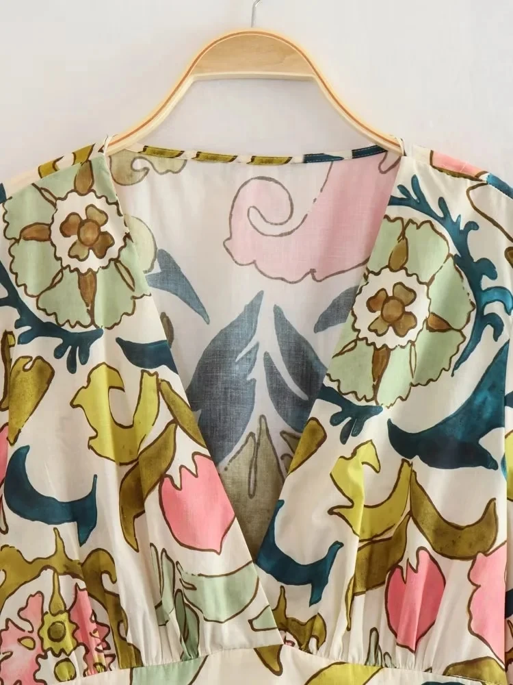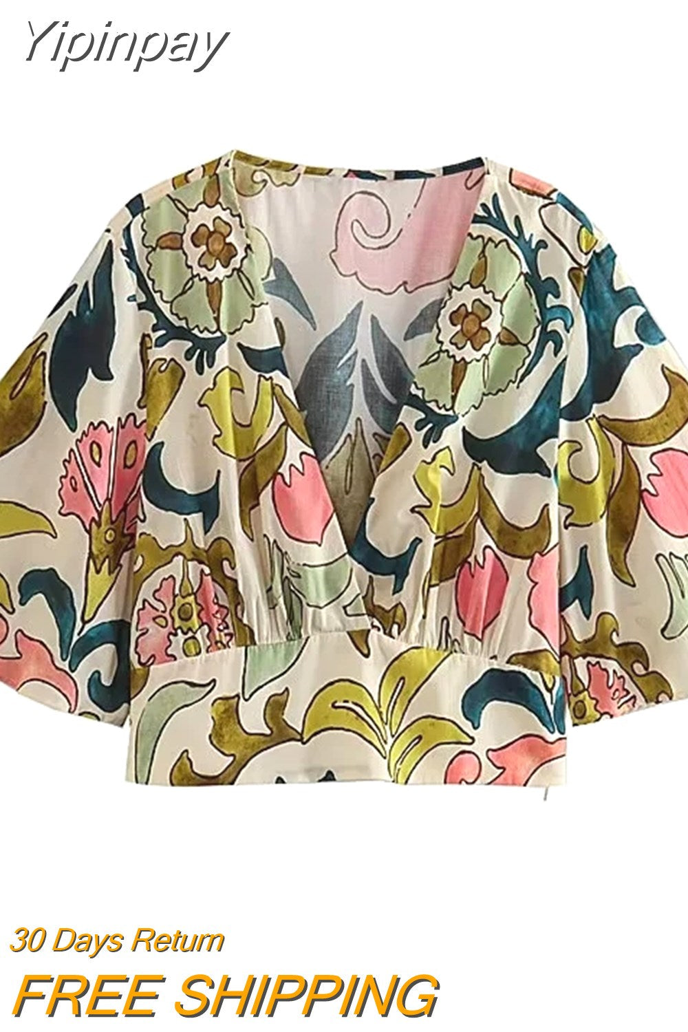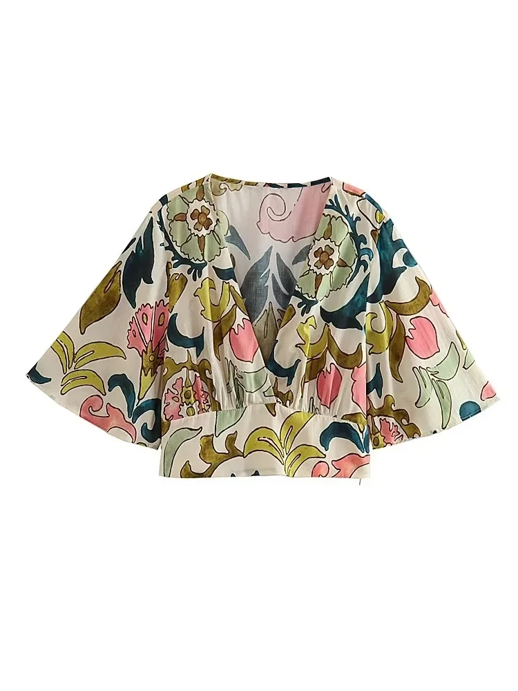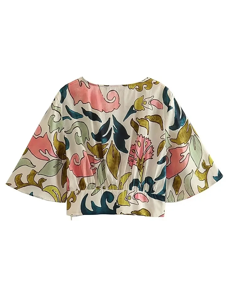 Yipinpay Print Crop Top Women Short Sleeve Blouses Summer 2023 Woman Fashion Streetwear Cropped Blouse For Women Boho Vintage Blouse