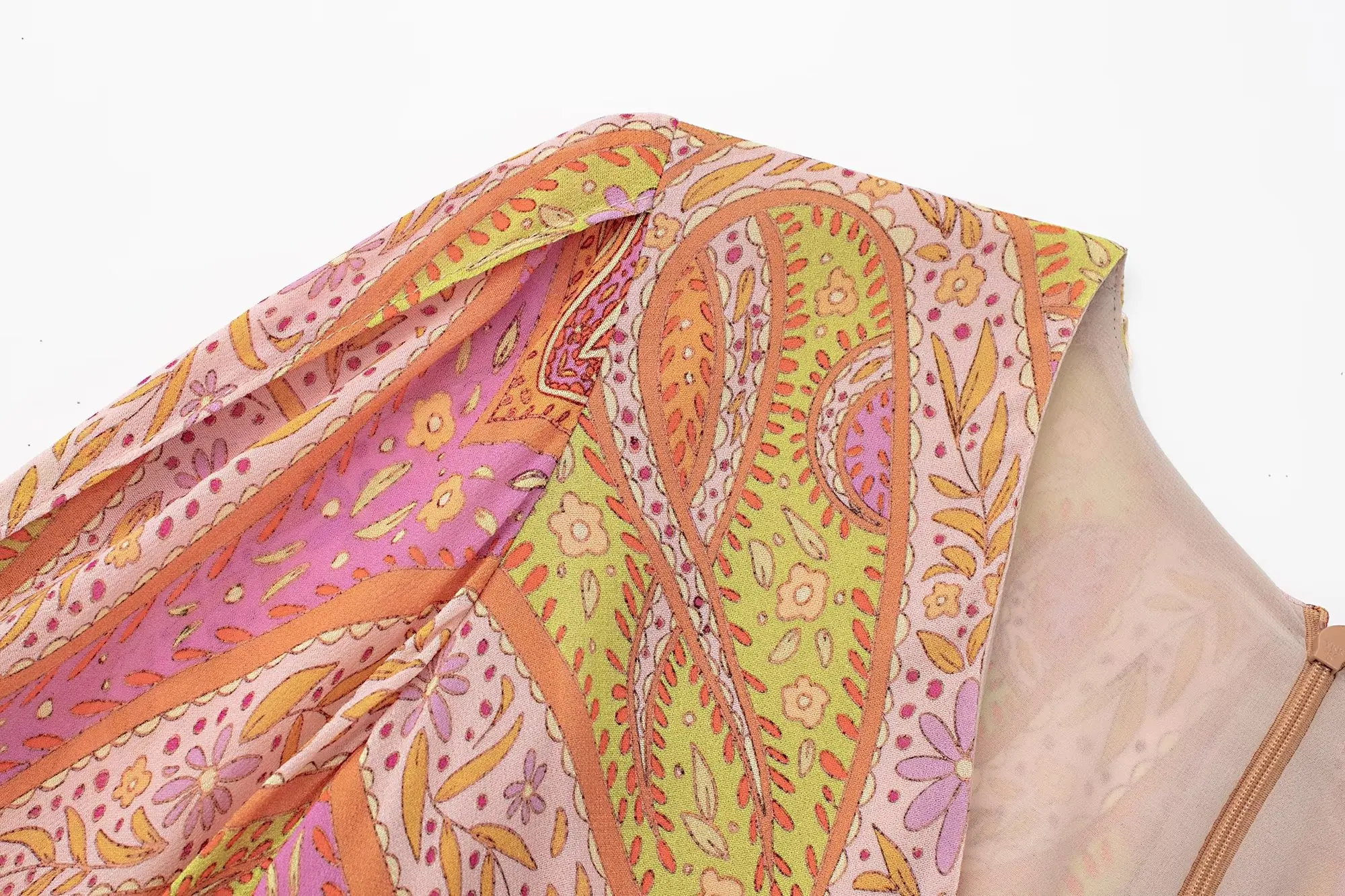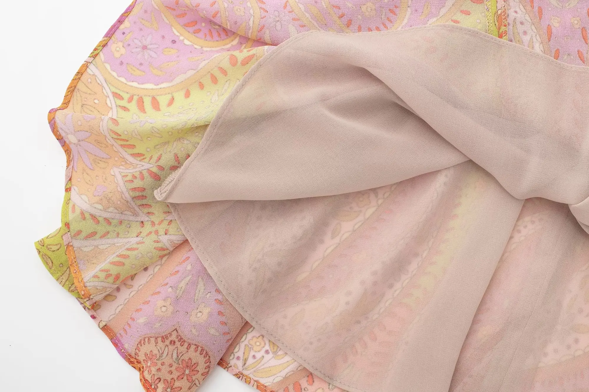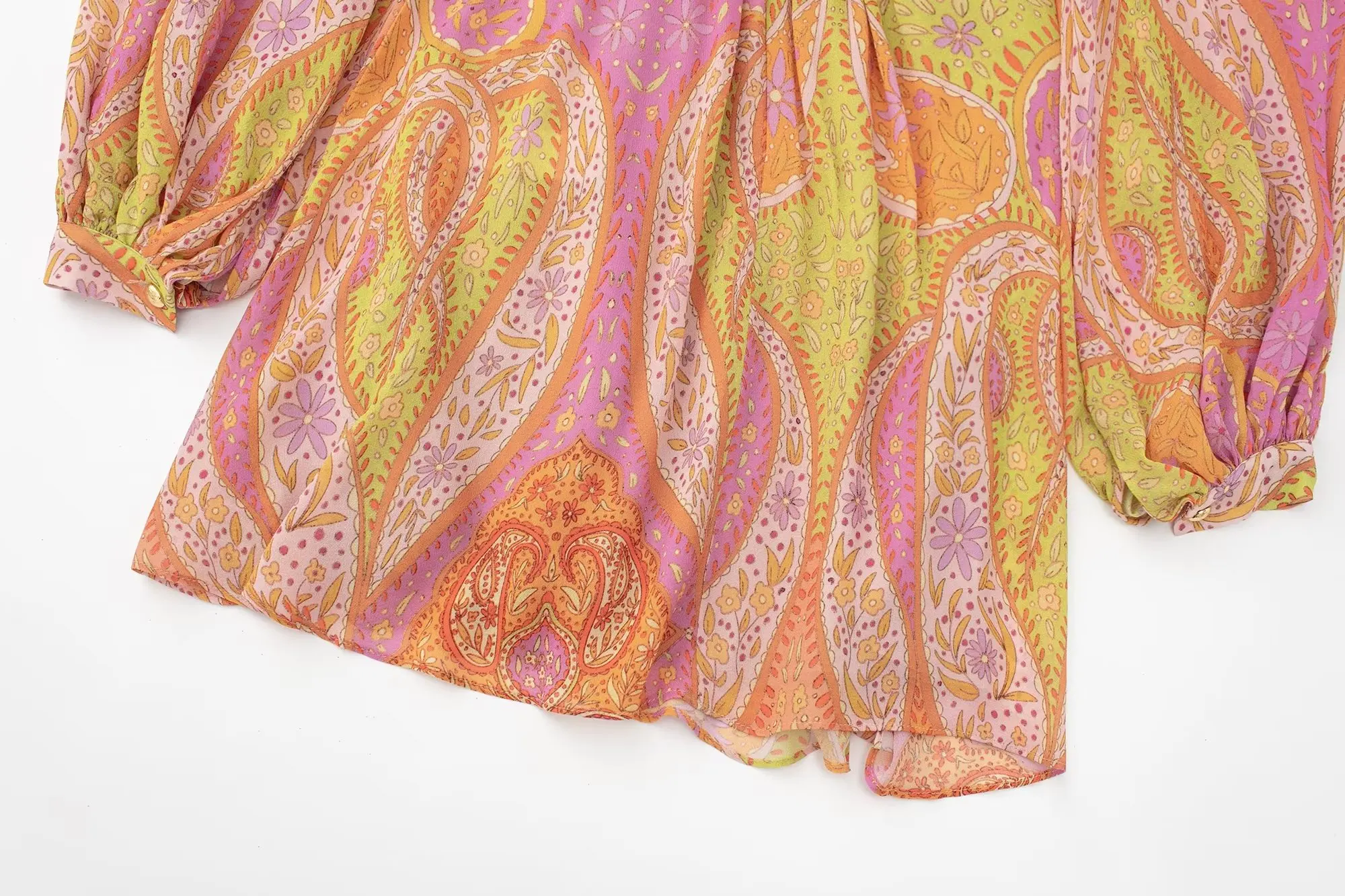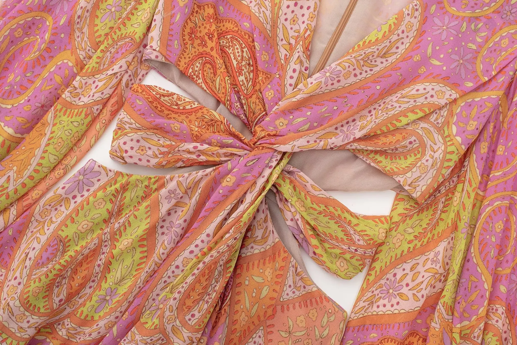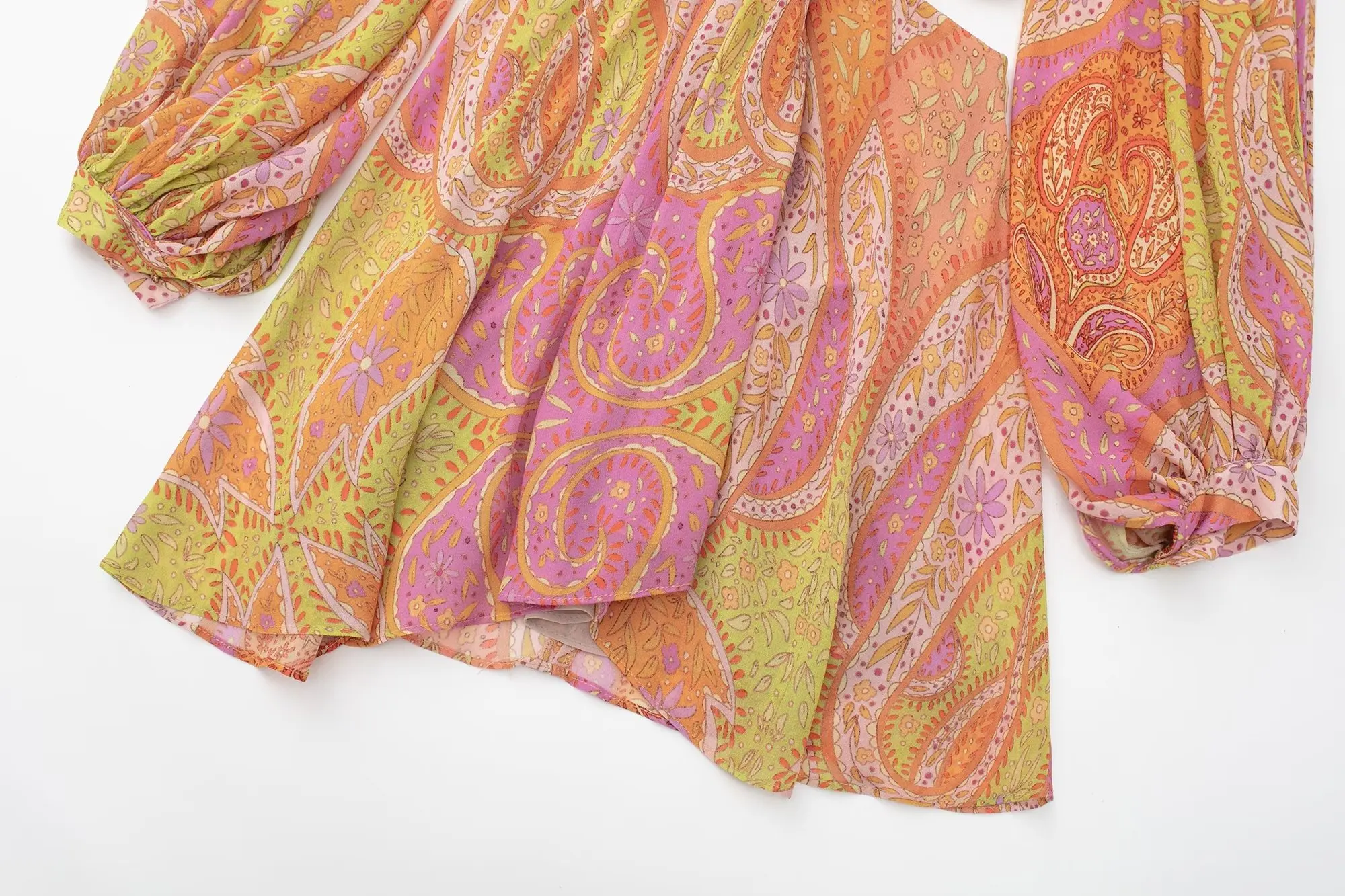 Yipinpay Print Cut Out Dress Woman Short Chiffon Dress Women 2023 Slit Boho Long Puff Sleeve Summer Dresses Beach Sexy Party Dresses