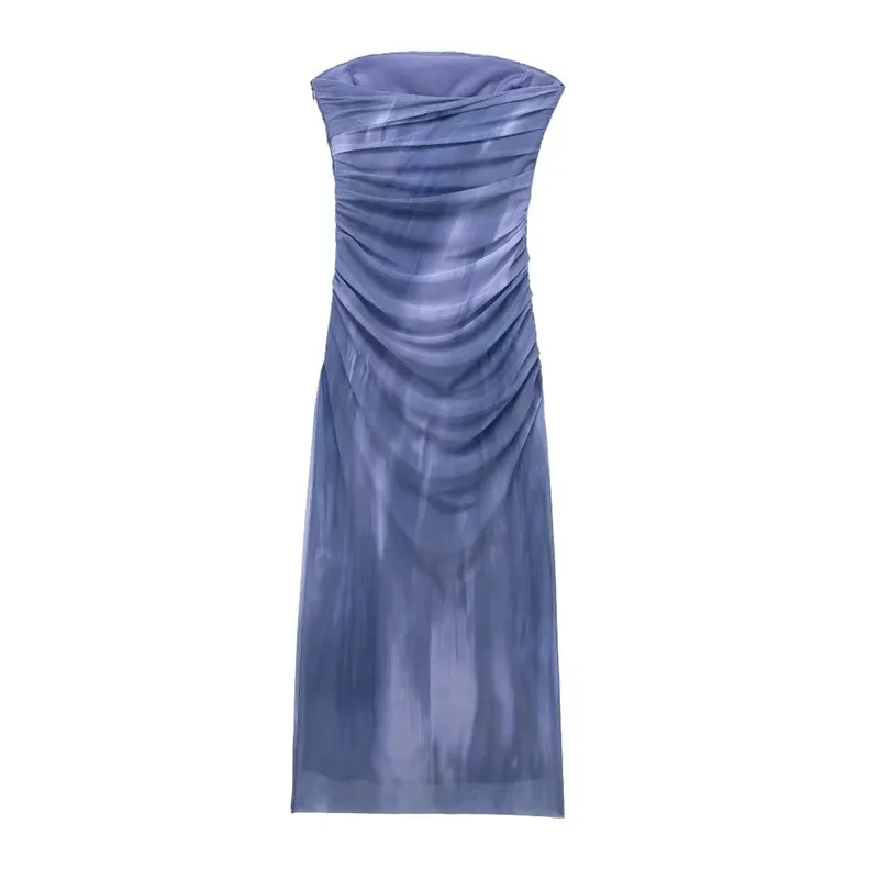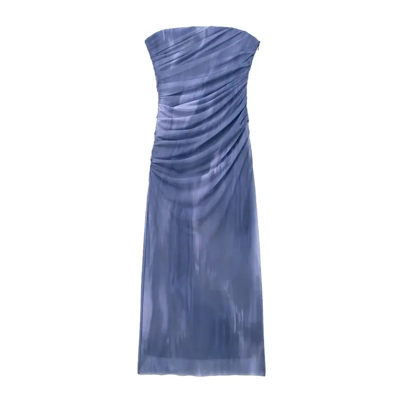 Yipinpay Print Tulle Corset Dress Woman Off Shoulder Midi Bodycon Dress Women Ruched Elegant Long Dresses Women Summer Party Dresses