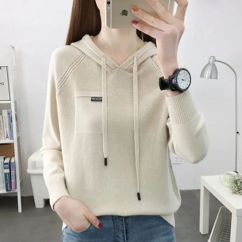 Yipinpay Pullover Sweater 2024 New Thin Knitwear Hooded Sweater Loose Long Sleeve Solid Pullover Sweater Coat Undercoat Women Top