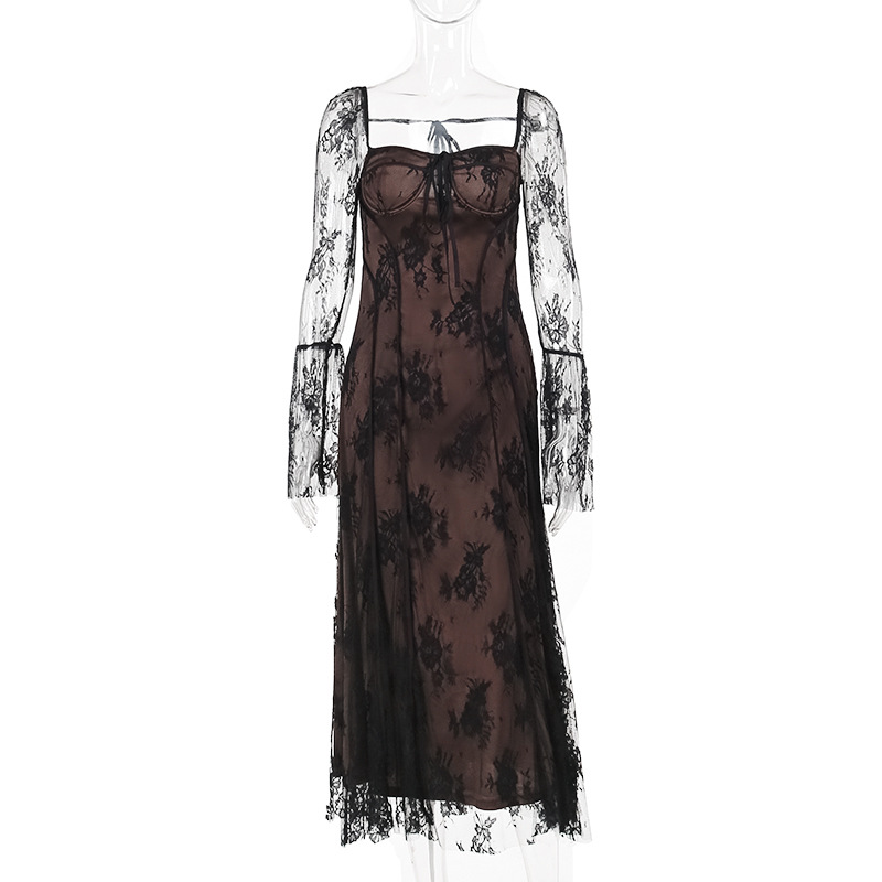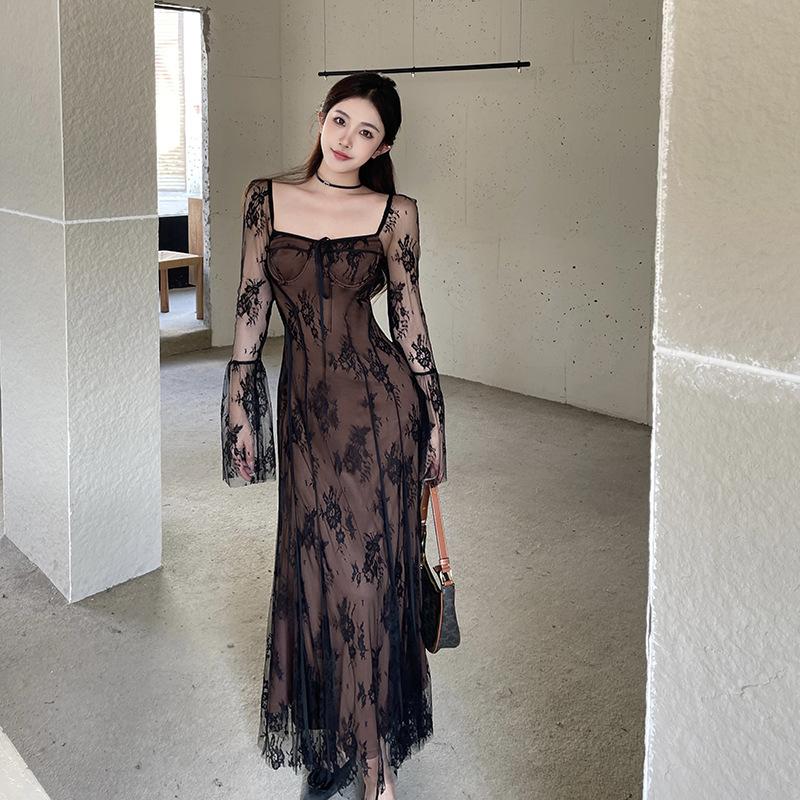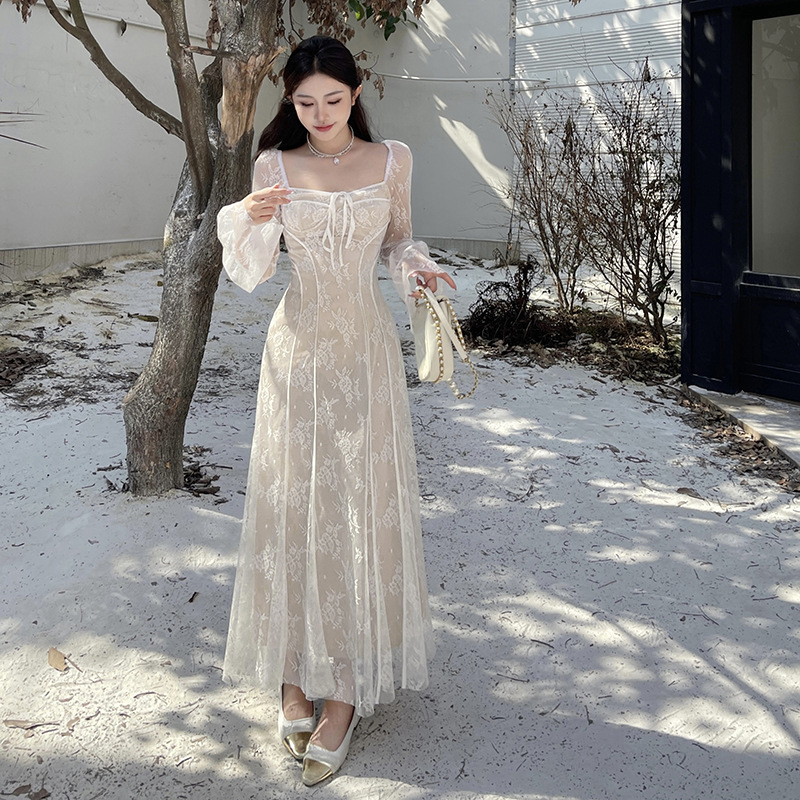 Yipinpay Pure Wants To Show Chest Lace A Dress Autumn New Literary Retro Style Dress Girl
