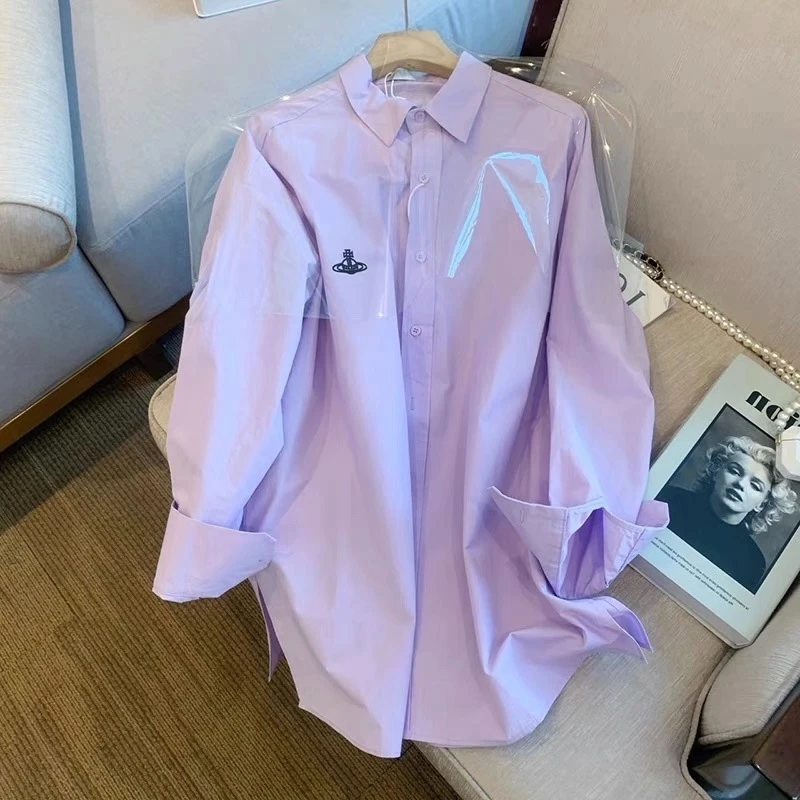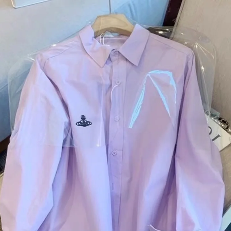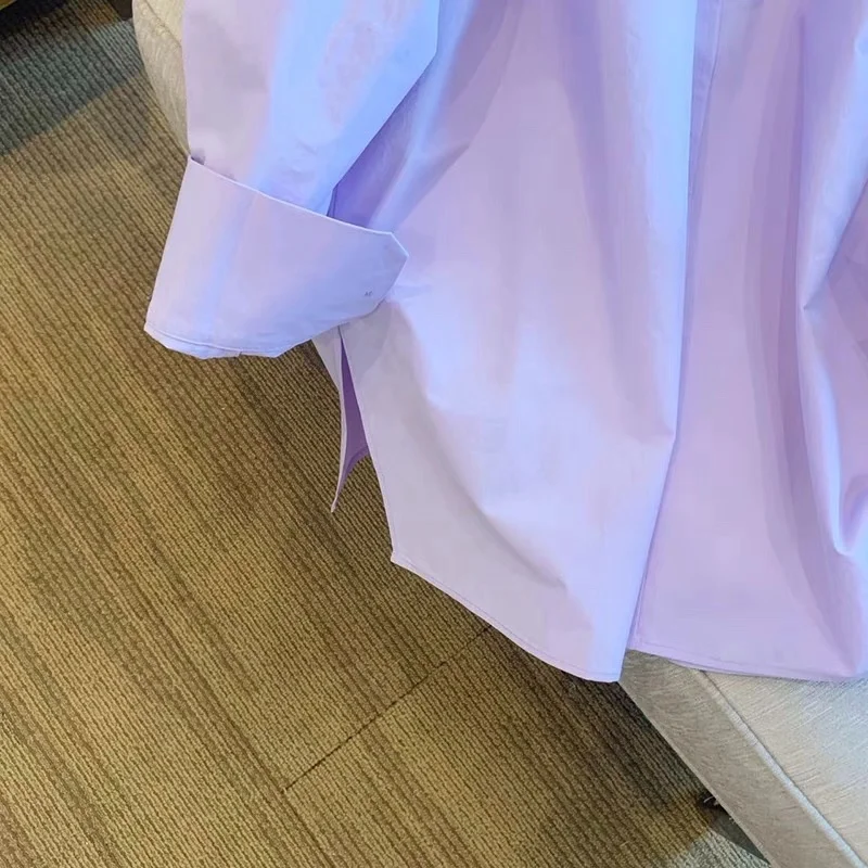 yipinpay Purple Shirt Women Blouse Chic Embroid Design Long Sleeves Casual Tops 2023 Fashion Vintage Single-Breasted Femmes Shirt