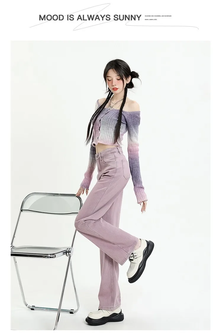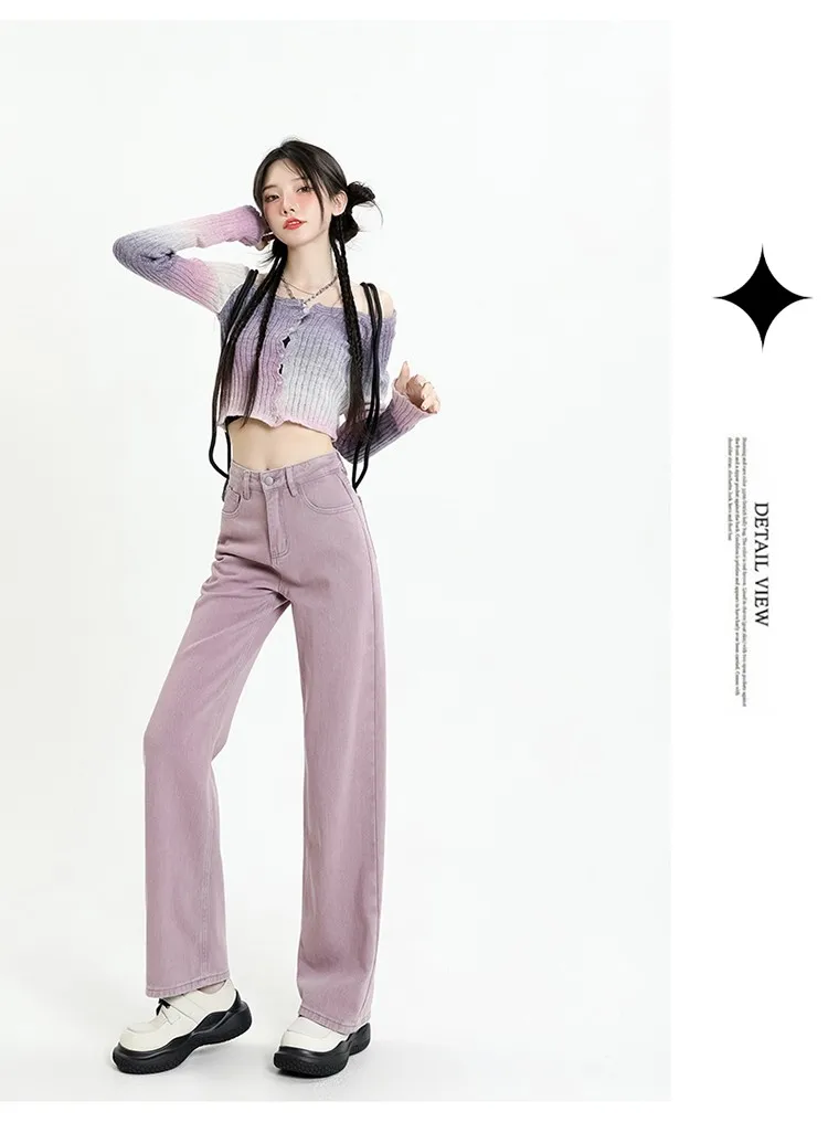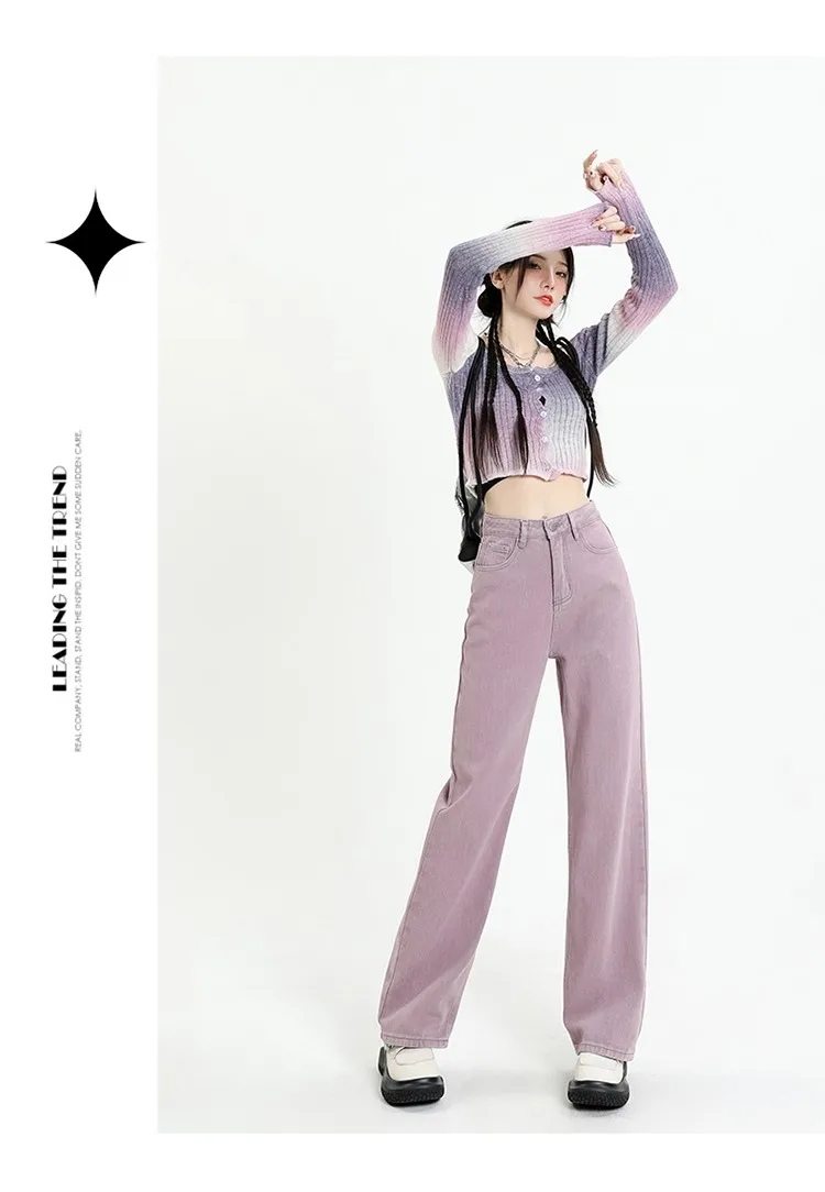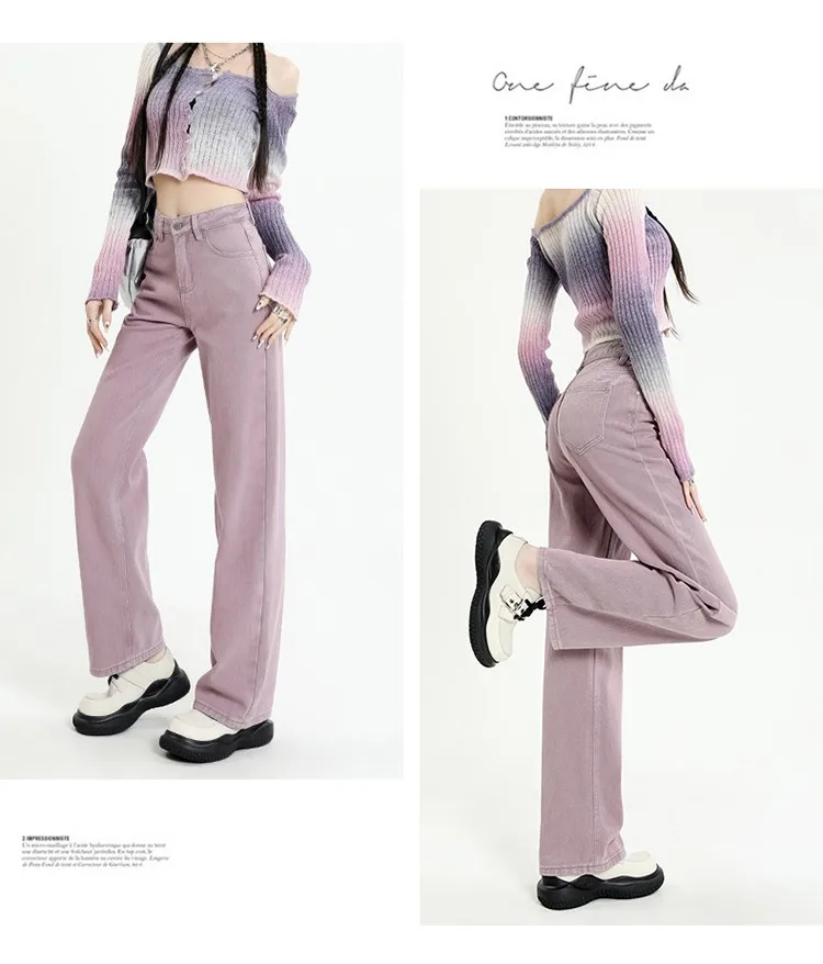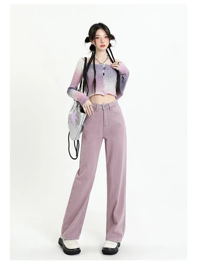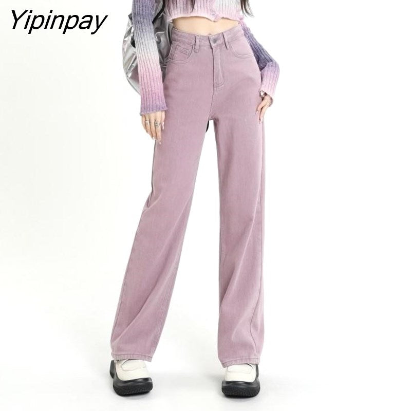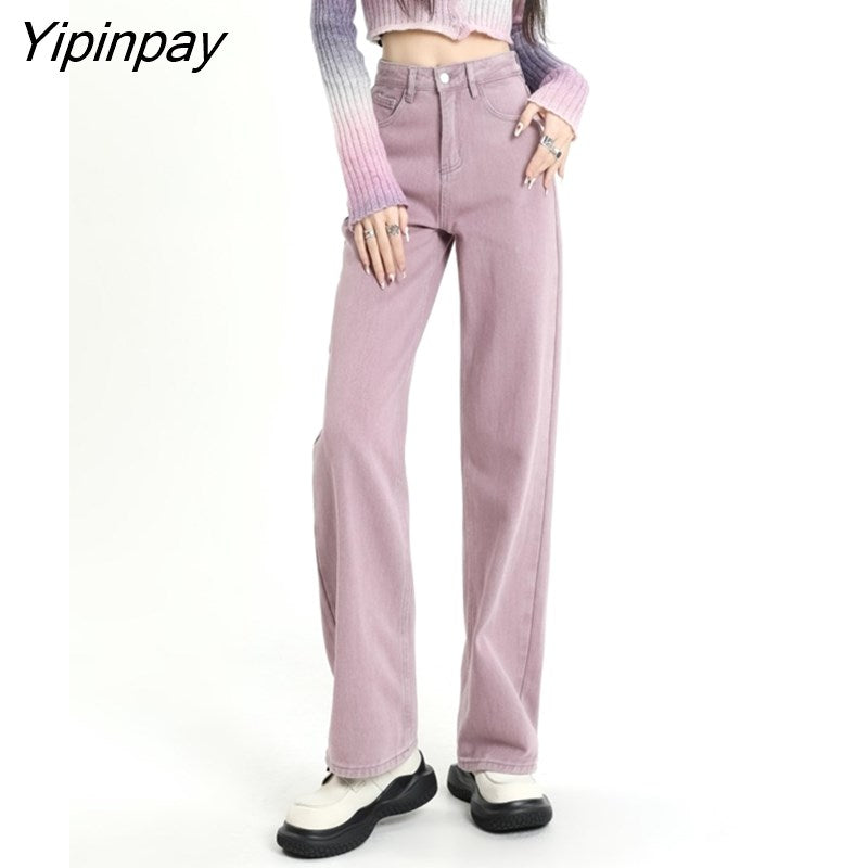 Yipinpay Purple Wide Leg Jeans Woman Loose High Waist Denim Pants Korean