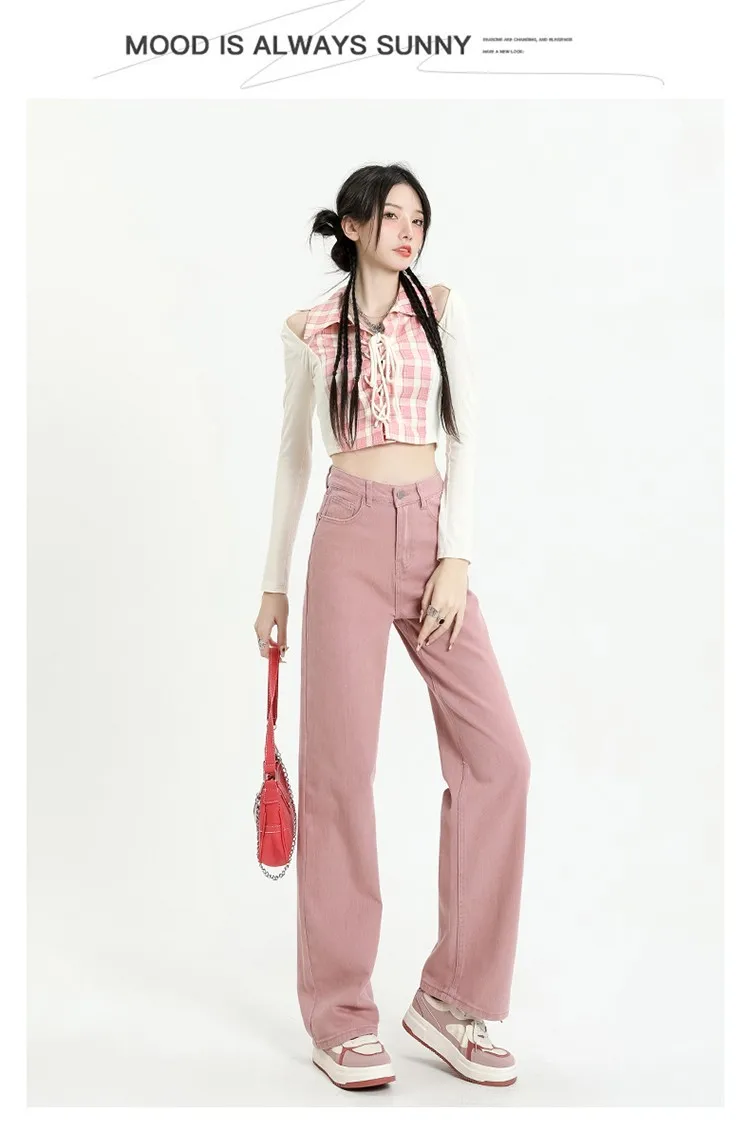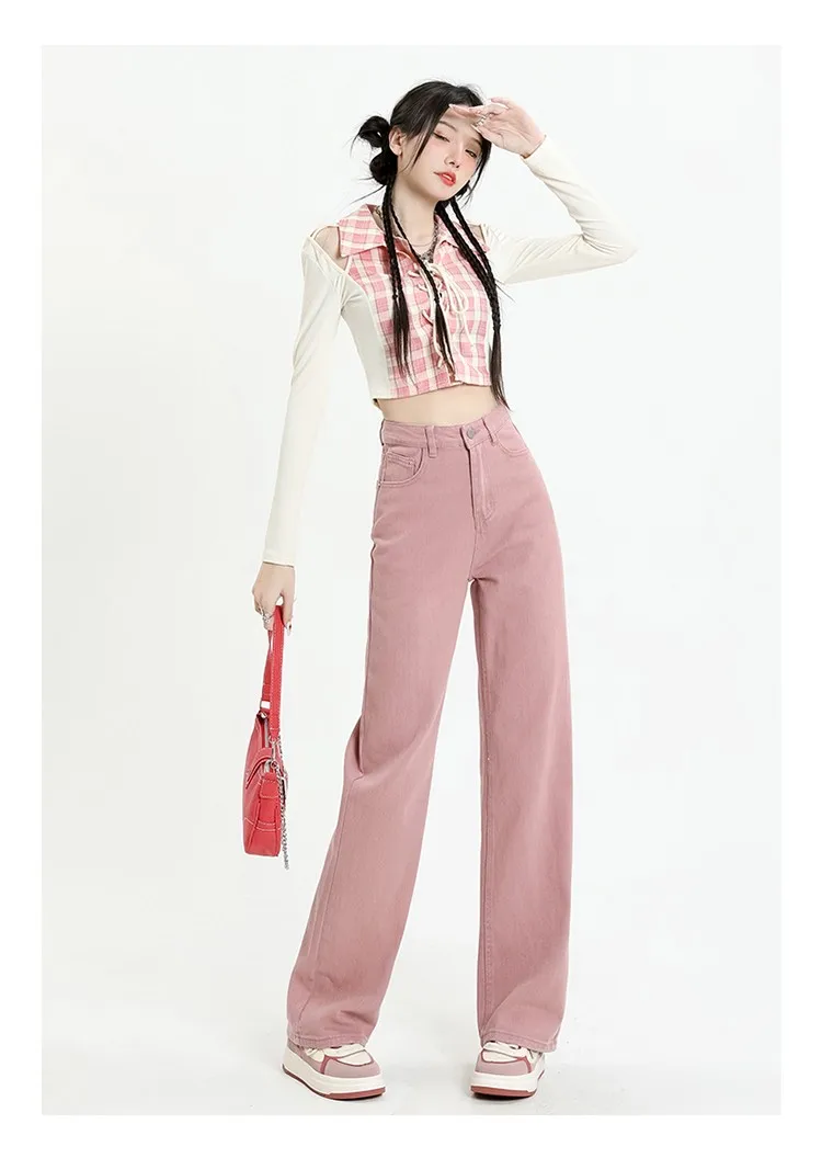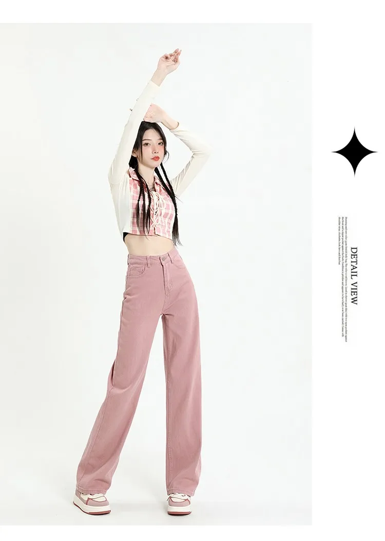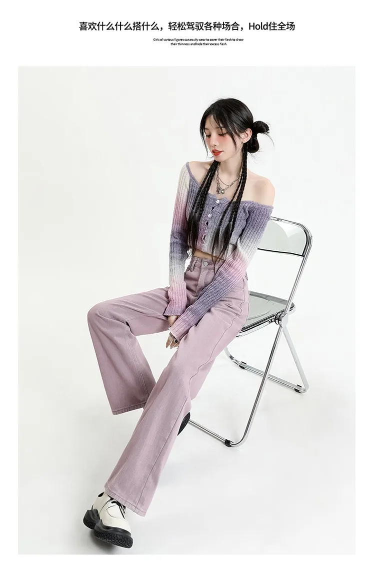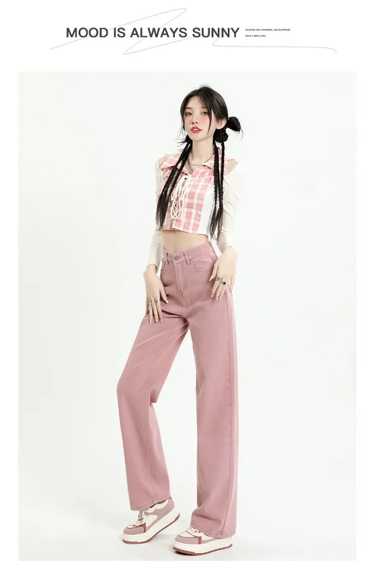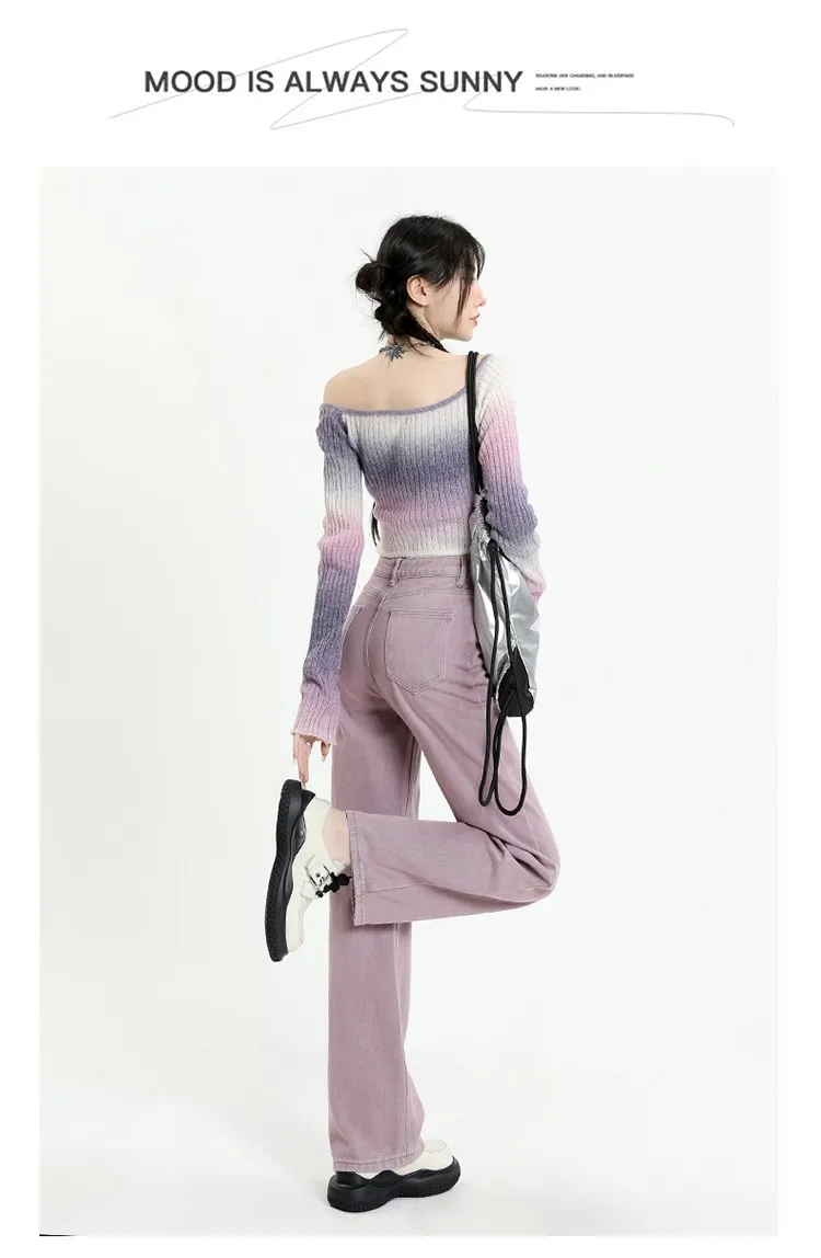 Yipinpay Purple Wide Leg Jeans Woman Loose High Waist Denim Pants Korean