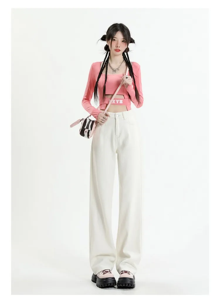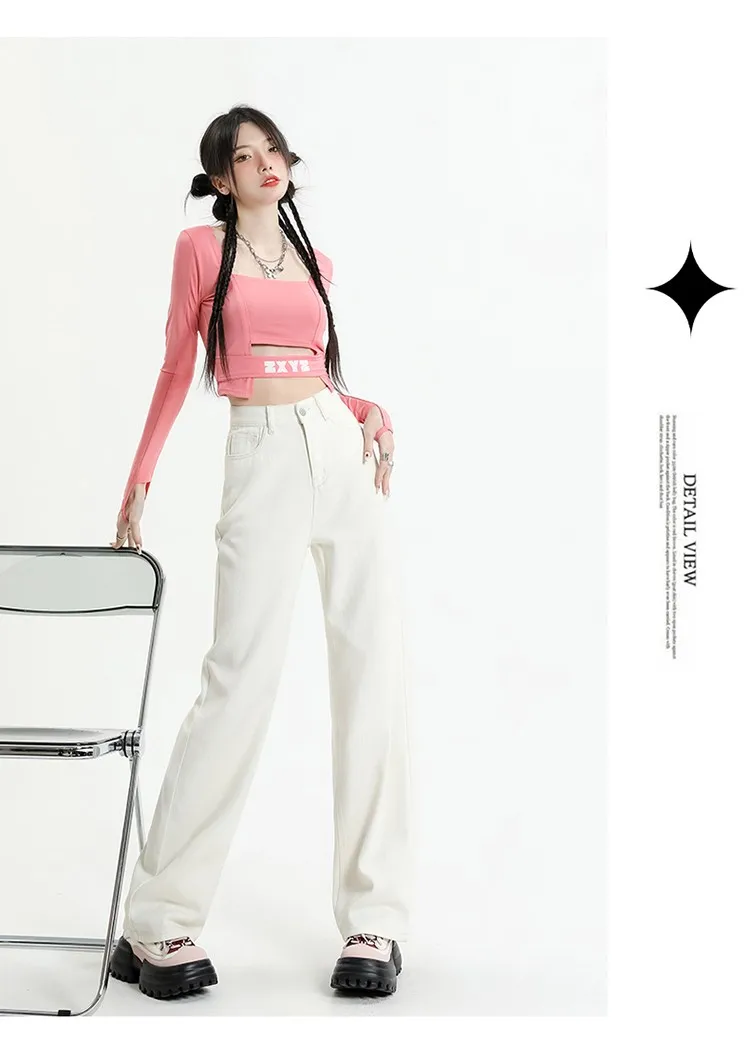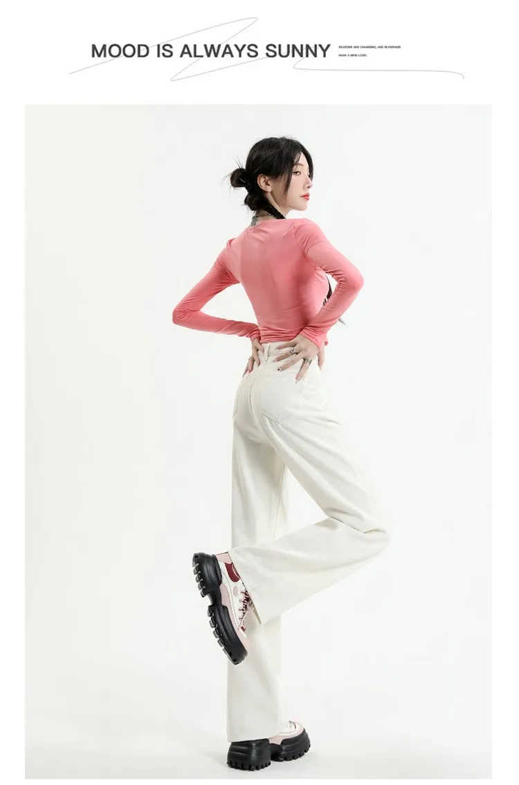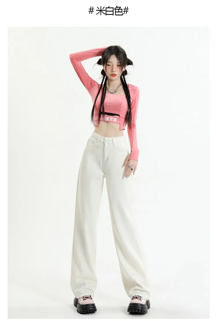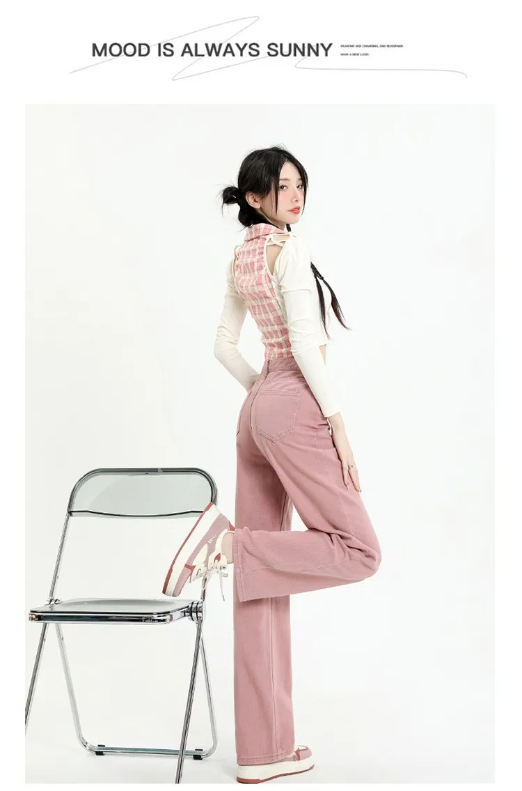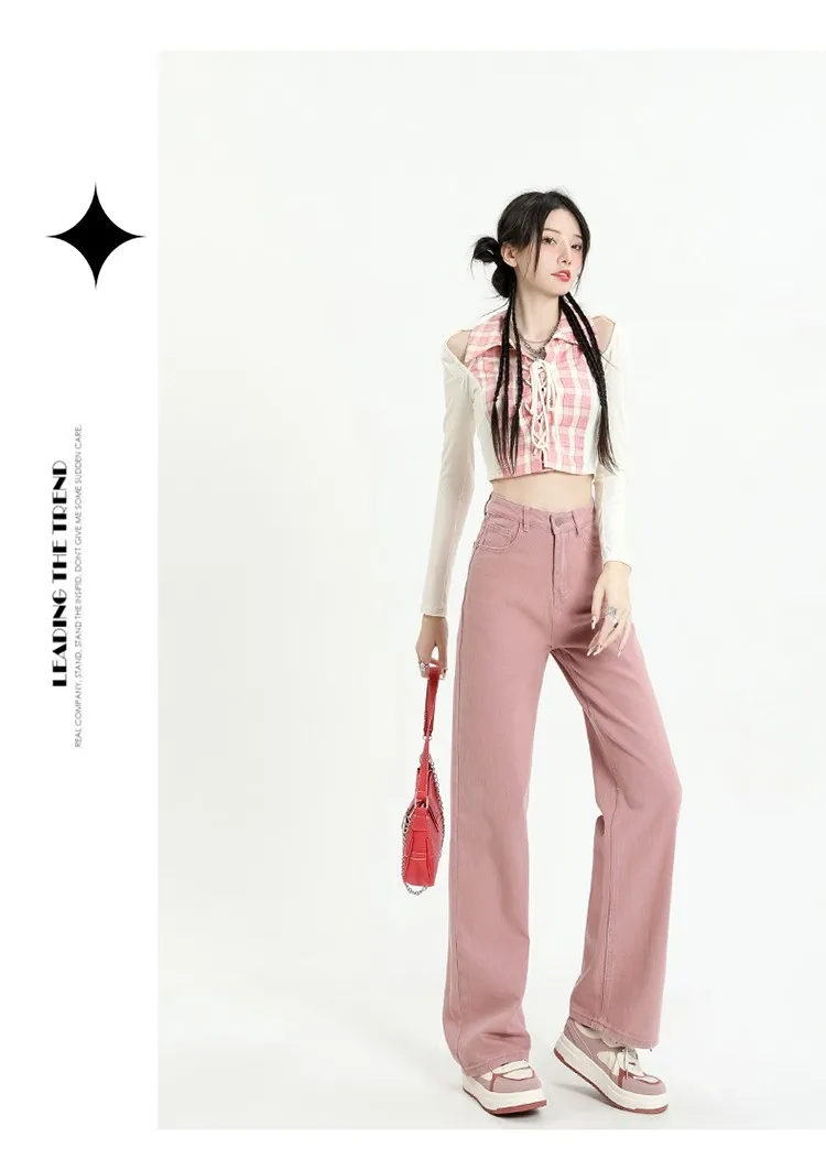 Yipinpay Purple Wide Leg Jeans Woman Loose High Waist Denim Pants Korean