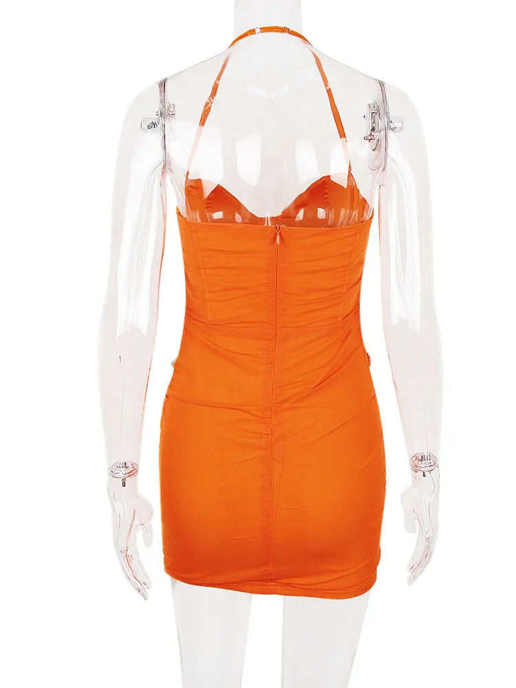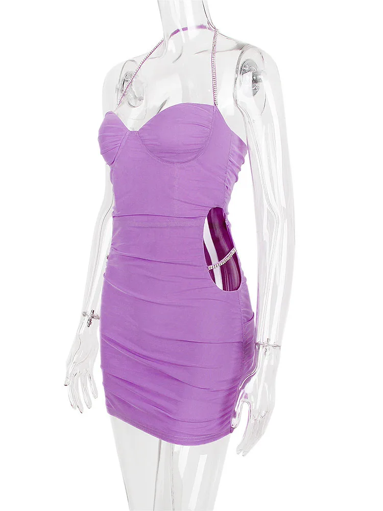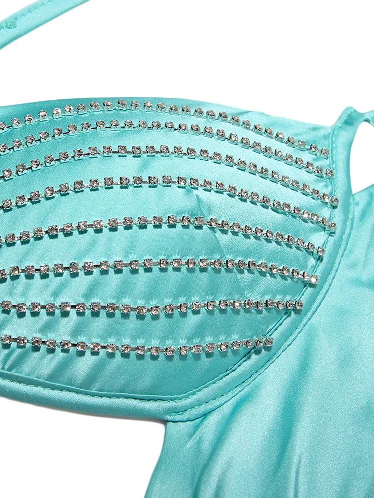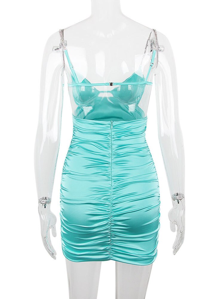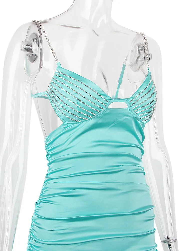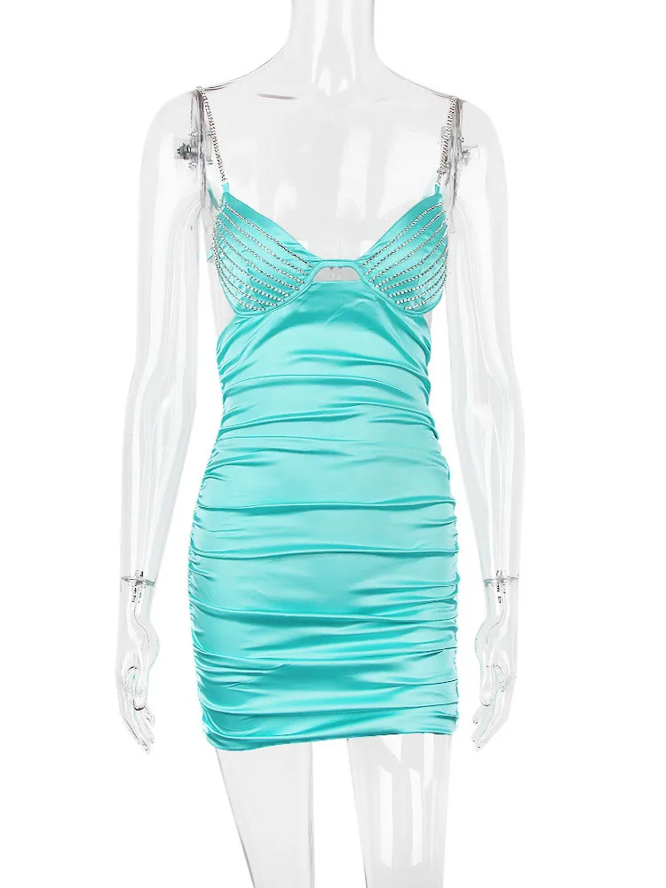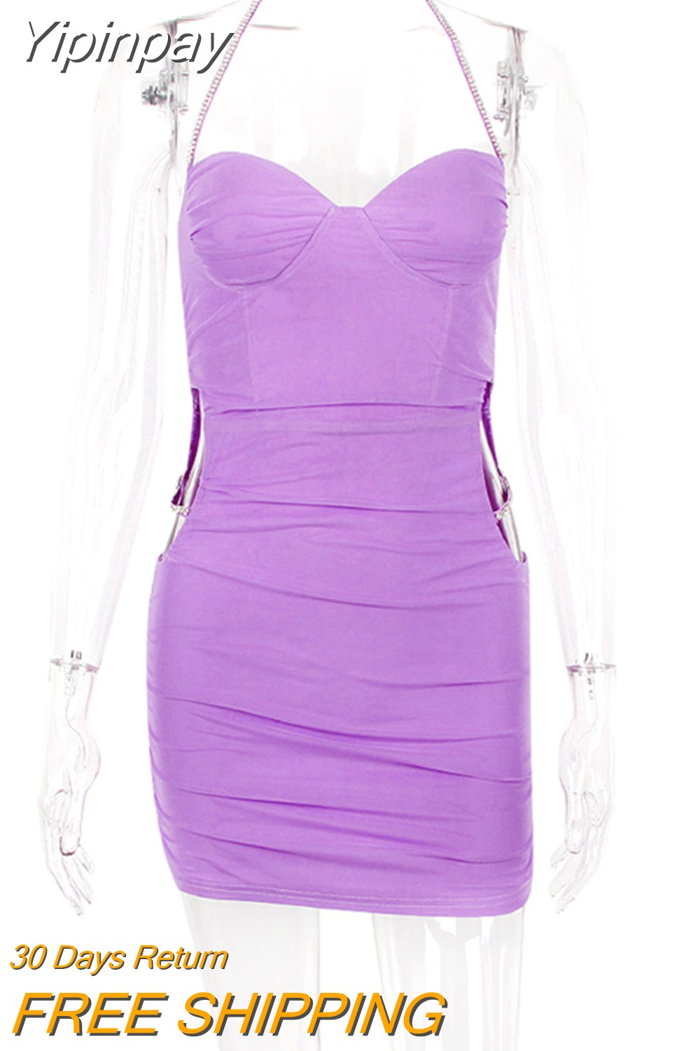 Yipinpay Quality Crystal Satin Bodycon Dress Summer Sexy Backless Dress Mini Ruched Beading Dress Birthday Prom Event Party Dress