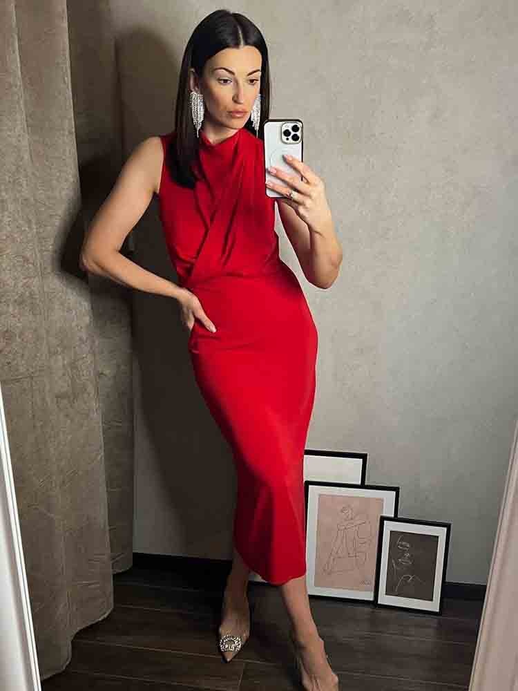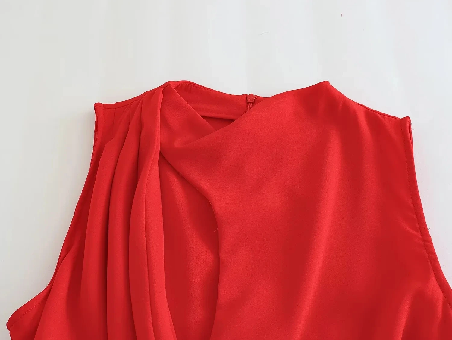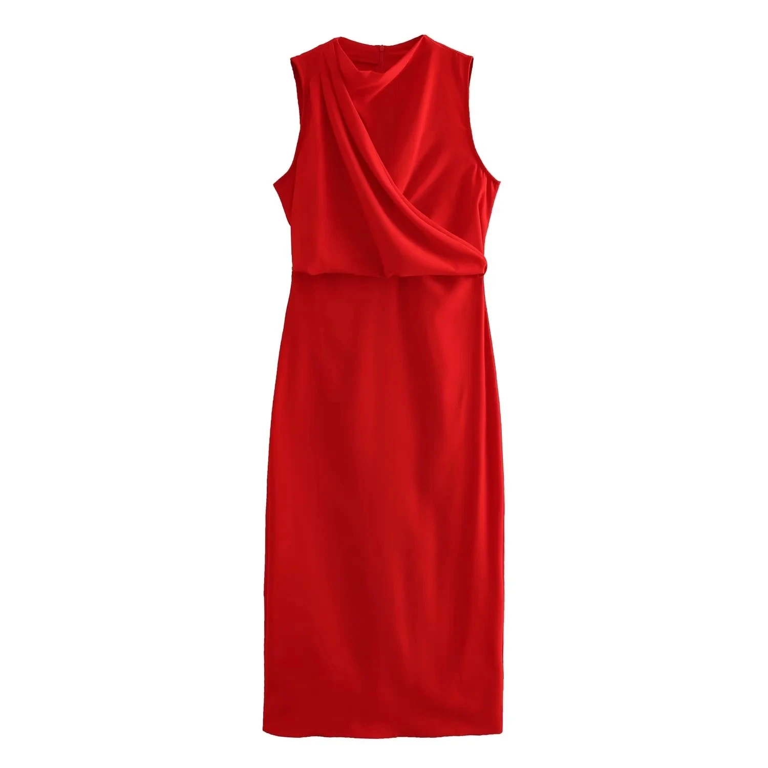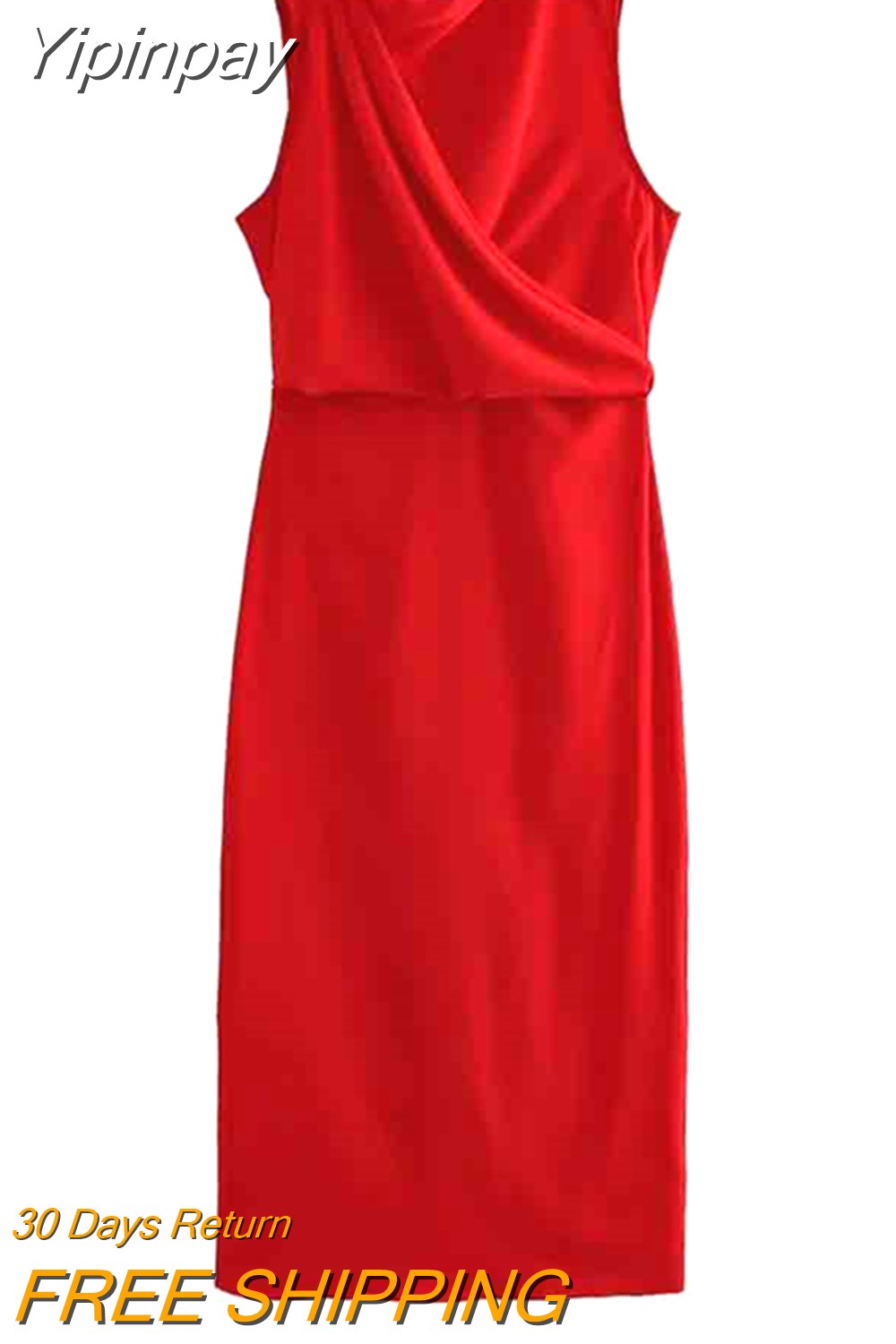 Yipinpay Red Long Dress Women Sleeveless Elegant Party Dresses For Women 2023 Ruched Midi Summer Dress Woman Sexy Evening Dresses