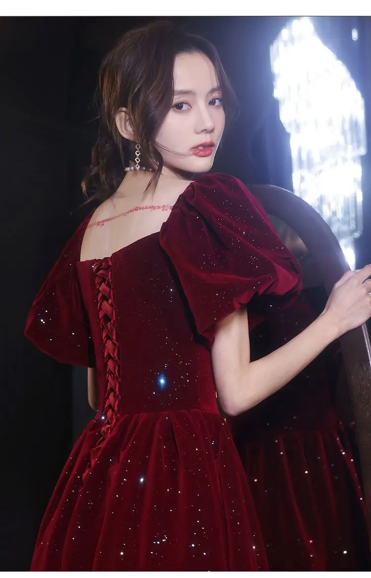 Yipinpay Red Long Formal Dress Women Summer Casual Bandage Design New In Dress Sexy Slim Puff Sleeve Wedding Evening Party Dress