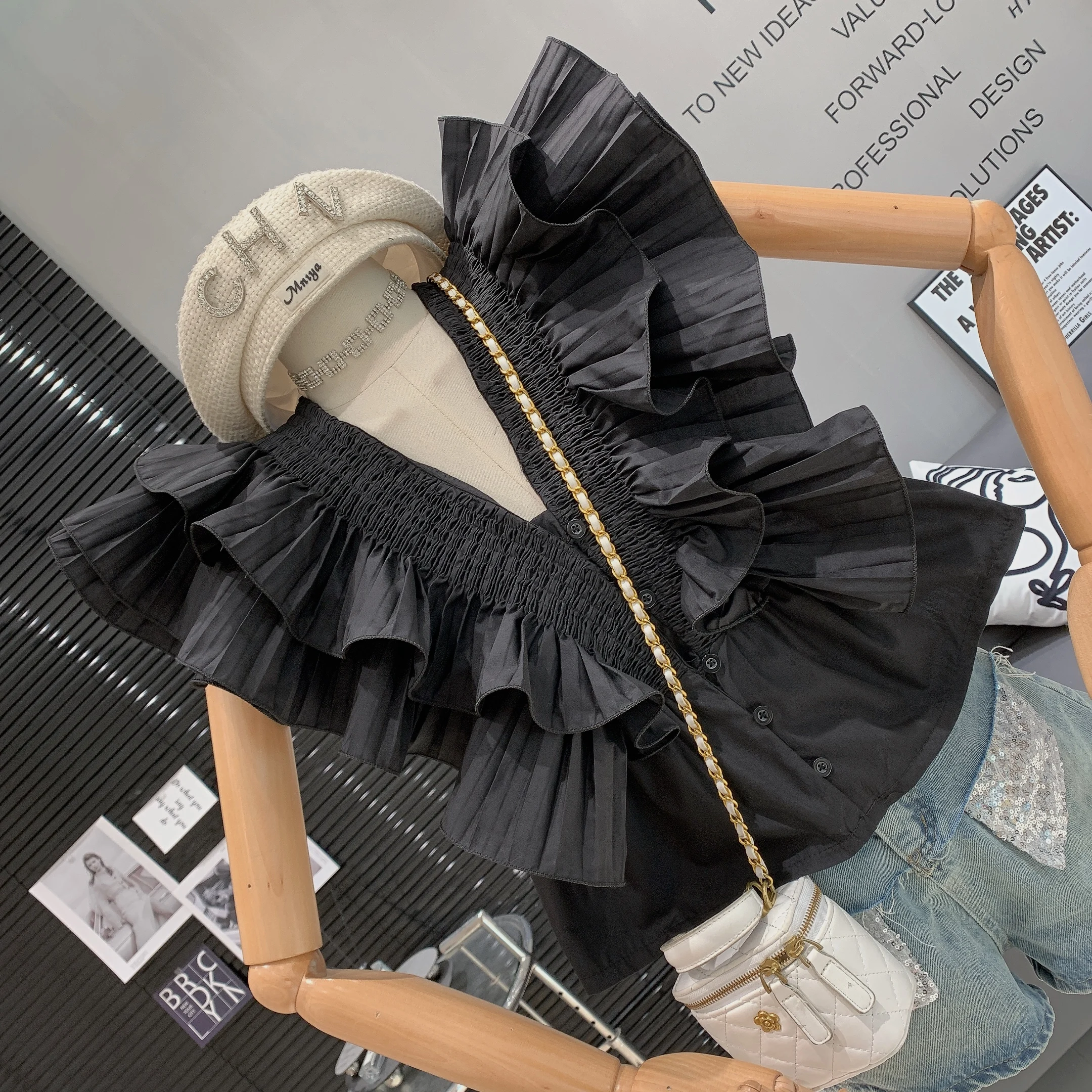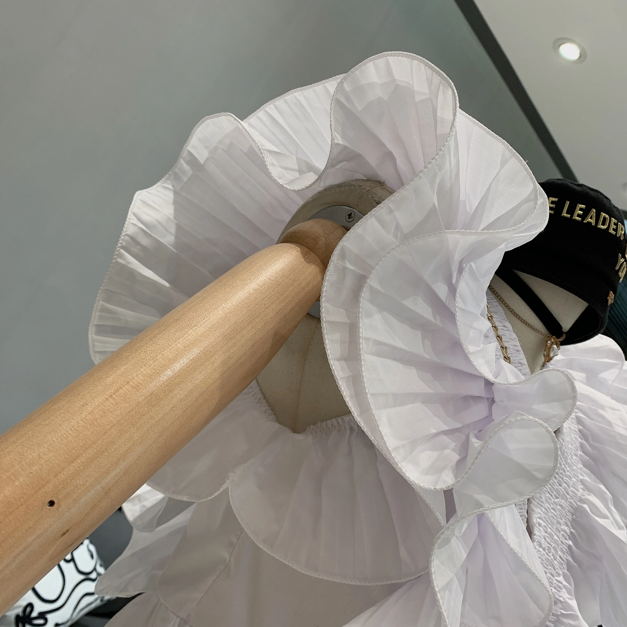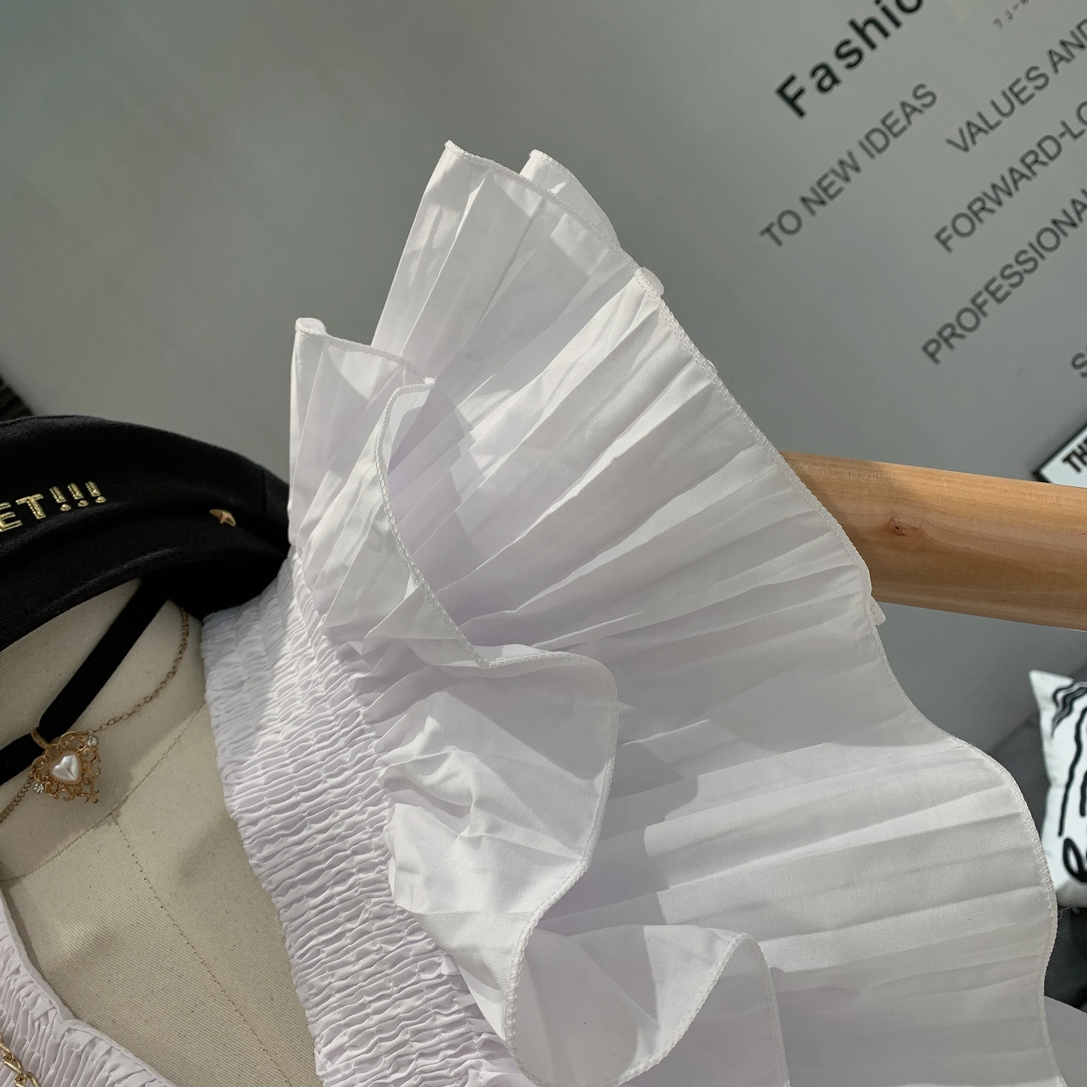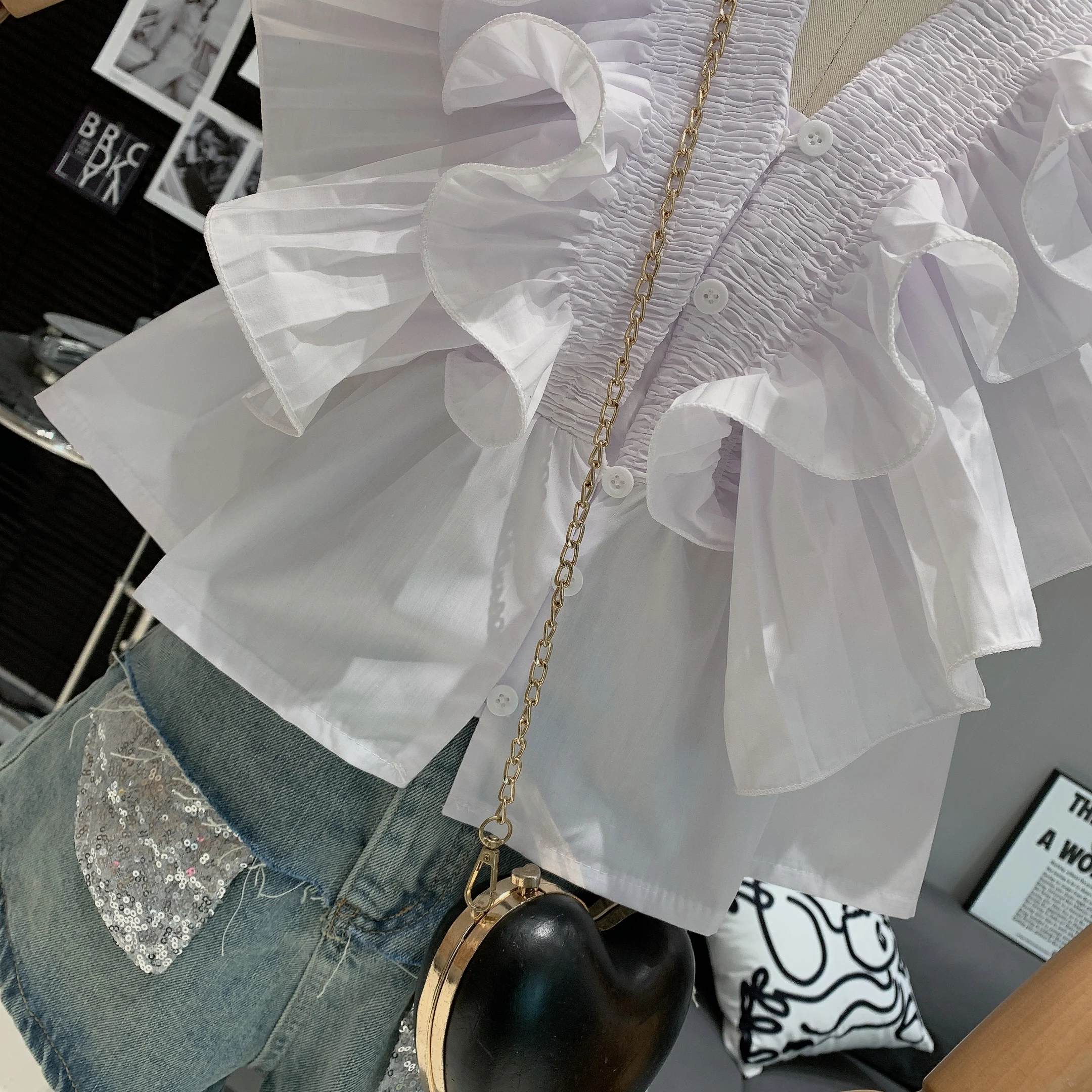 Yipinpay Red V Neck Blouse Layered Ruffled Sleeveless Chiffon Shirt Waist Design Crop Top Femme Shirts for Women Blusas White Flying