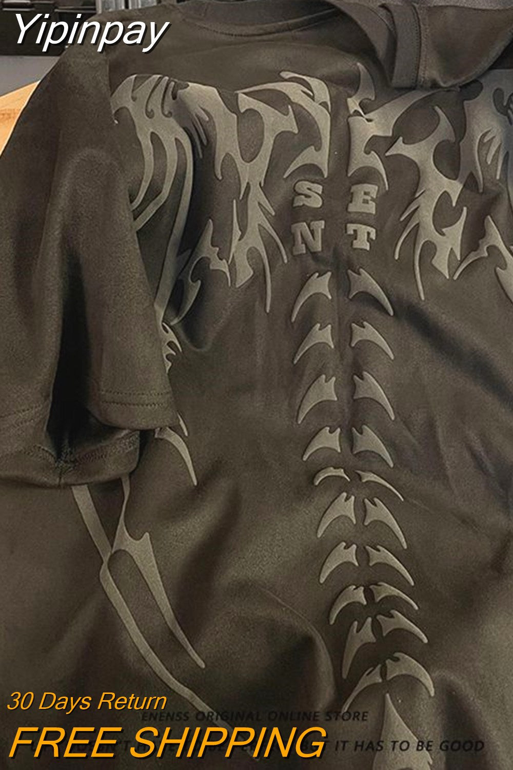 Yipinpay Retro Skull Wings Print 2023 New Summer Short Sleeved T Shirt Mens Casual Loose Couple All Match Trendy Round Neck T-shirt