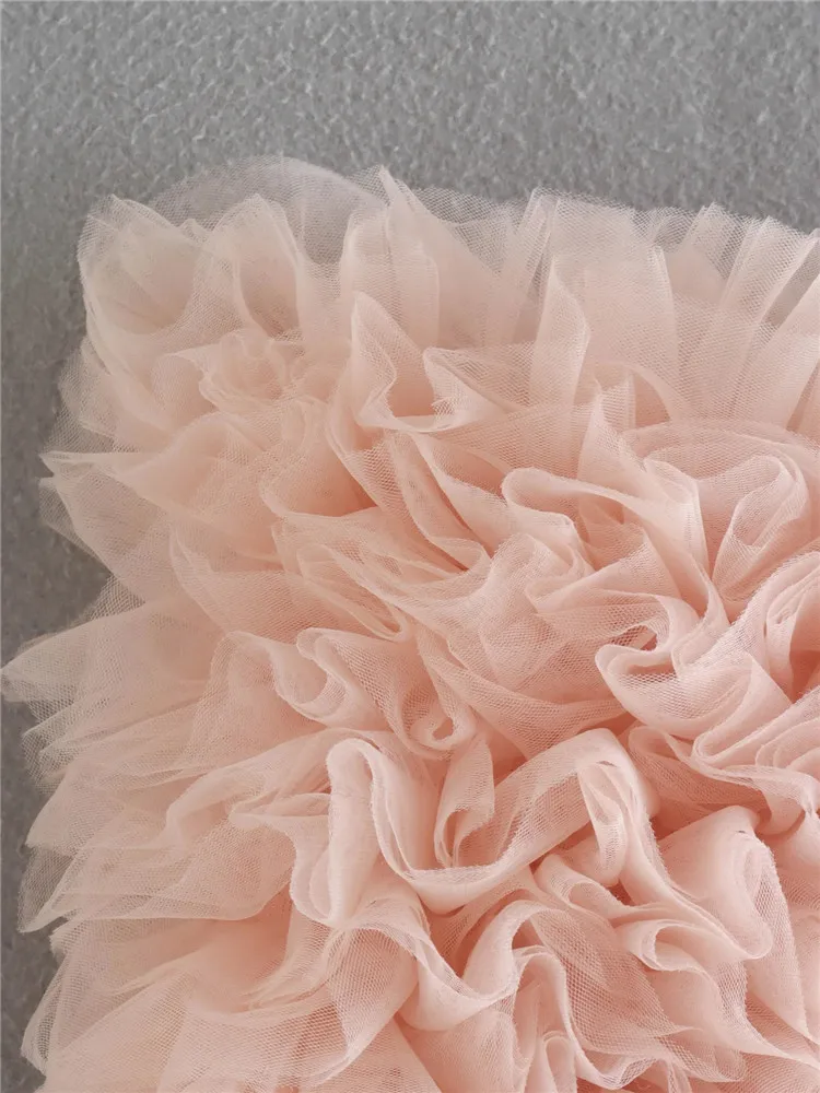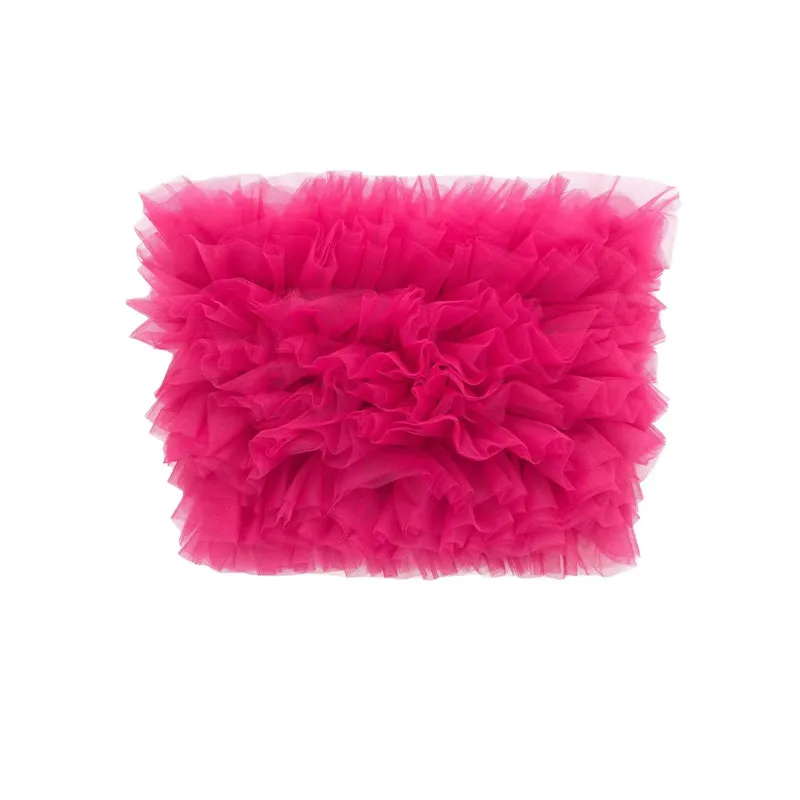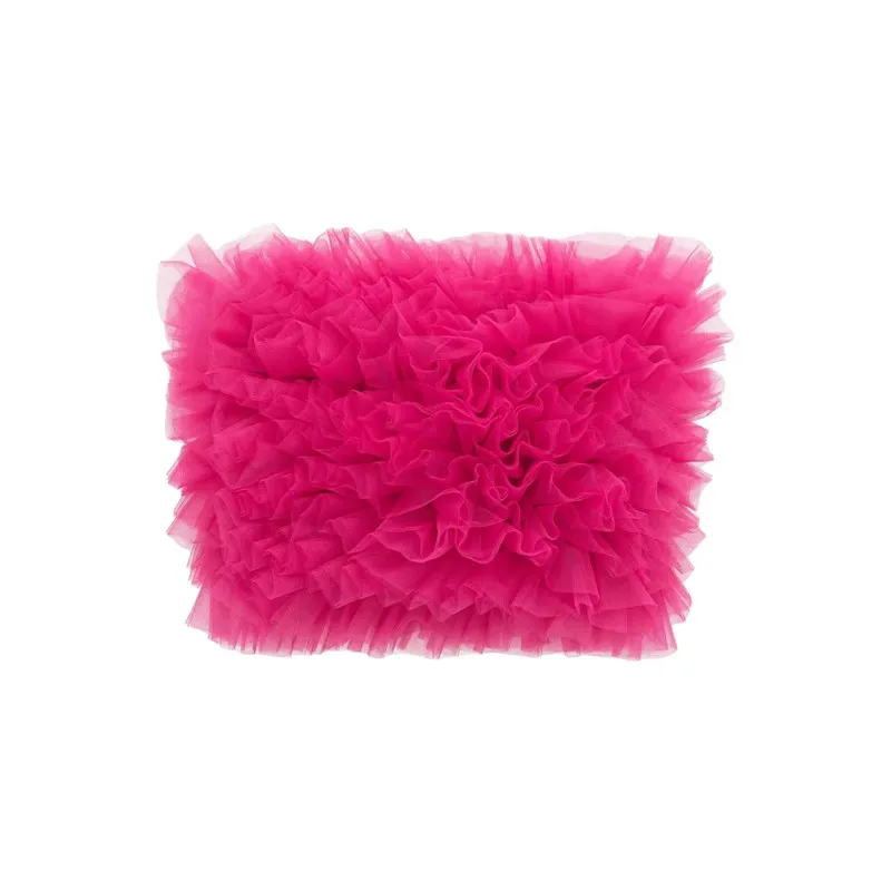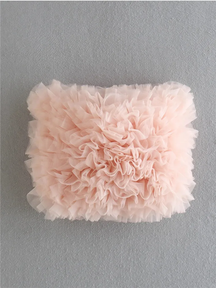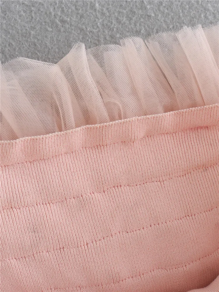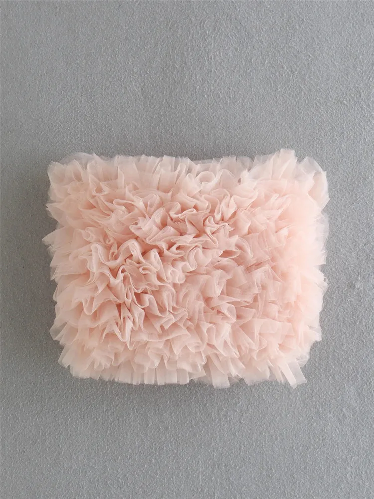 Yipinpay Rosy Tulle Crop Top Women Off Shoulder Mesh Knit Top Female Backless Summer Tube Tops Y2k Streetwear Sexy Woman Corset Tops