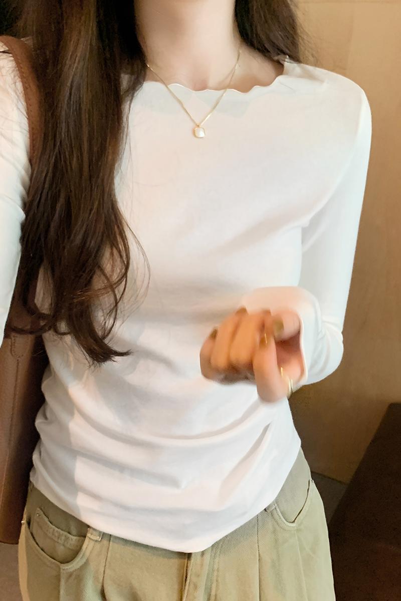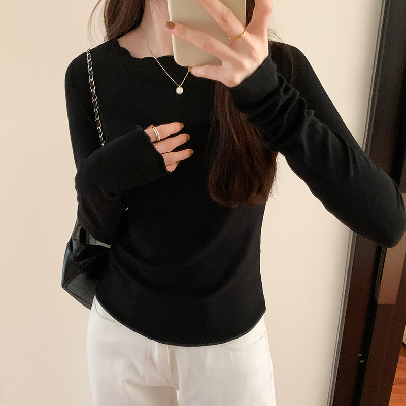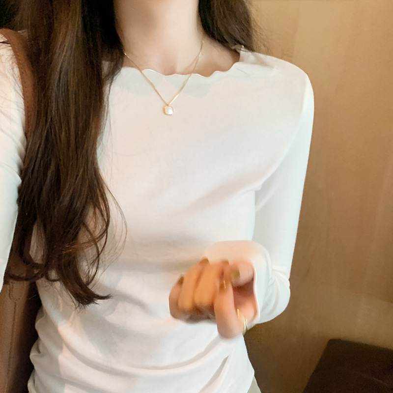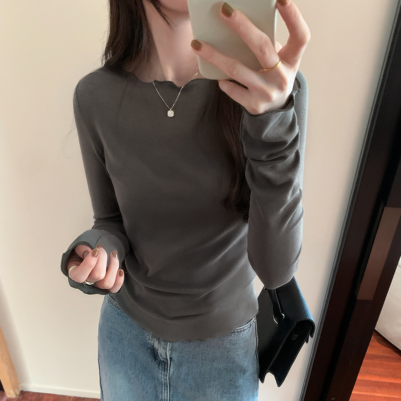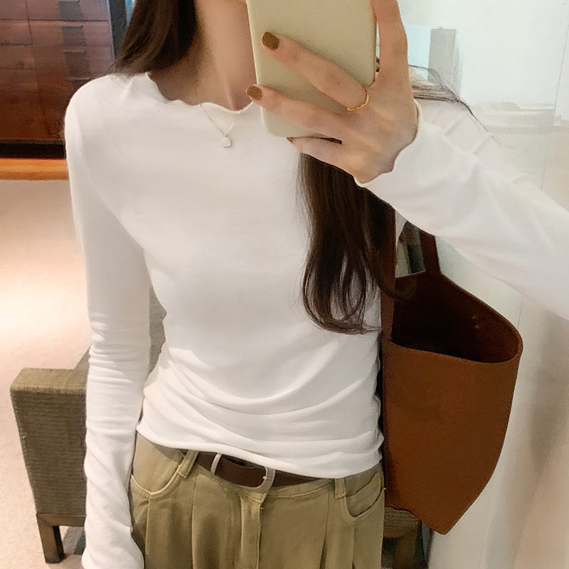 Yipinpay Round Collar Solid Color Elastic Long-Sleeved T-Shirt Women's Autumn And Winter New Basic Inner Bottom Top