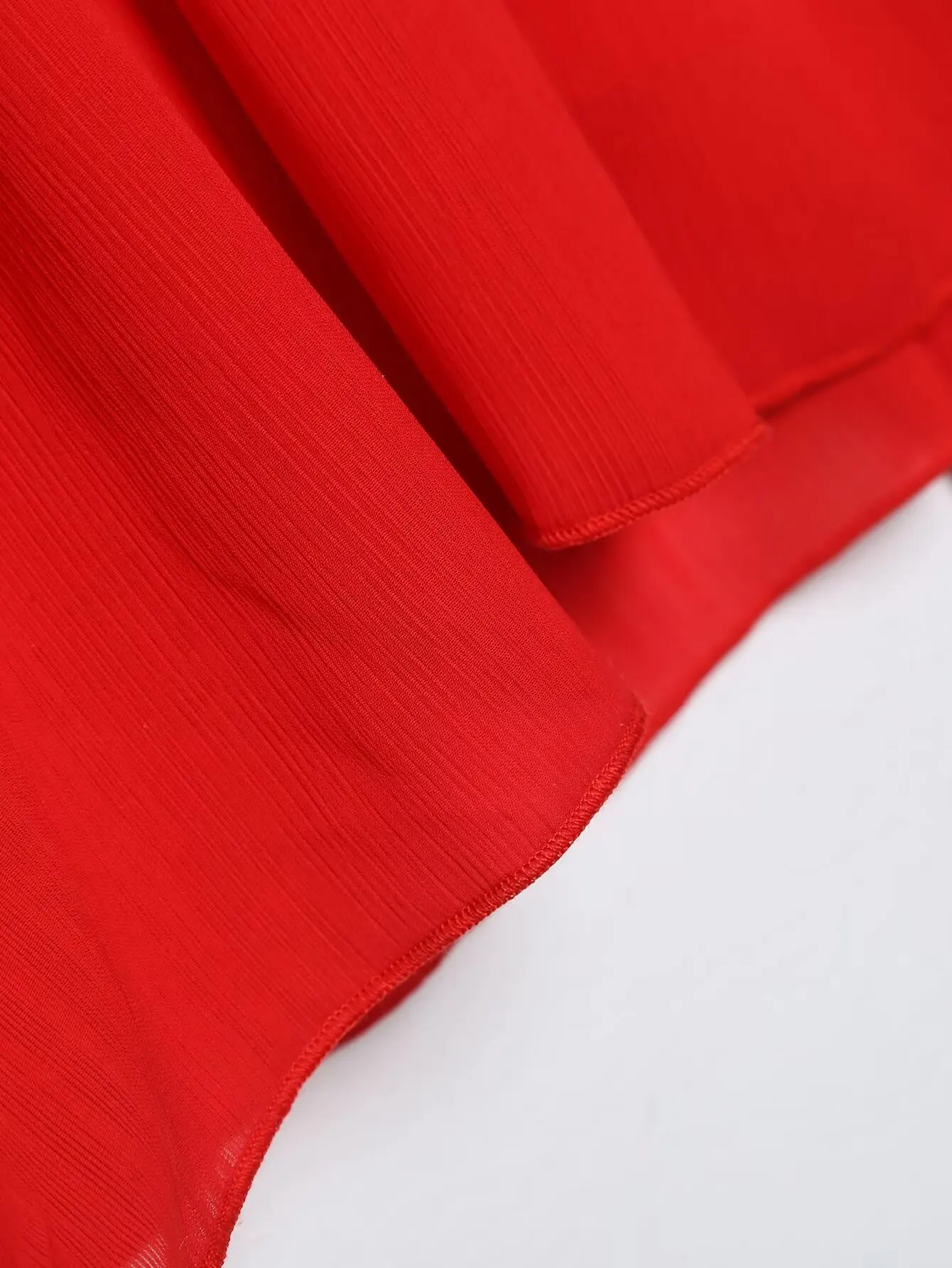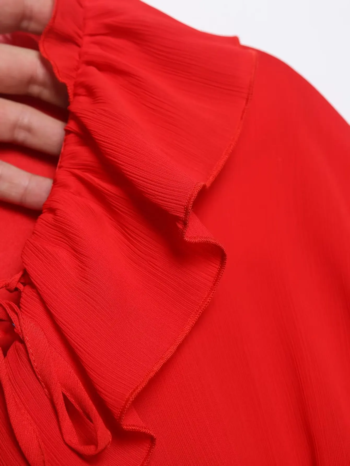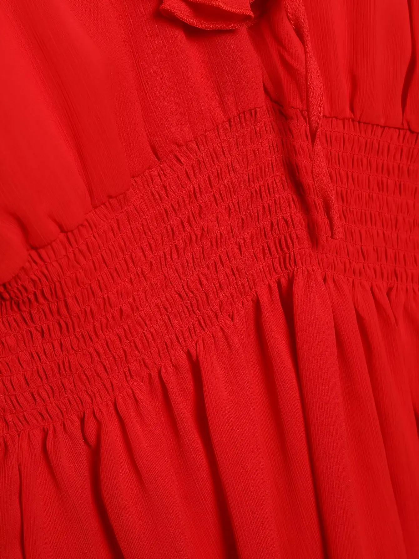Yipinpay Ruffled Red Dress For Women 2024 Lace Up V Neck Long Sleeve Robe Vintage Elastic Waist Party Mini Dresses
