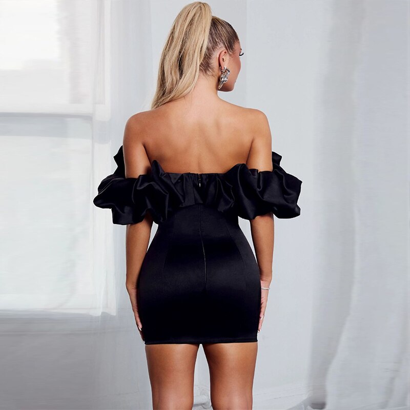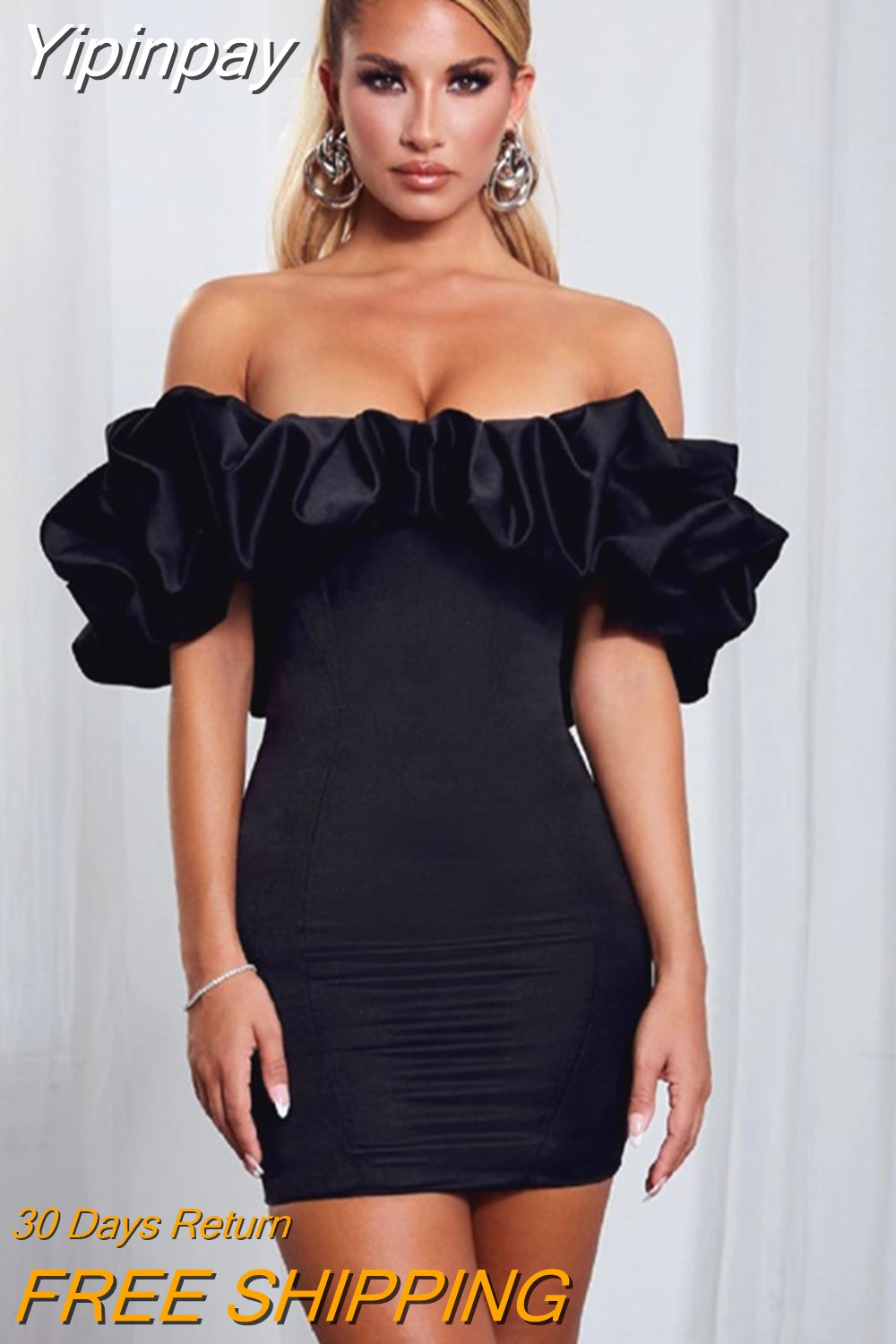 Yipinpay Satin Elegant Sexy Party Summer Dress Women Off Shoulder Backless Mini Dresses Strapless Solid Bodycon Club Vestido New