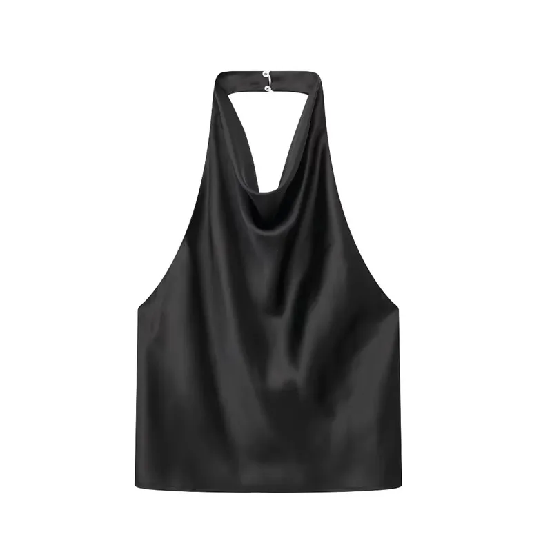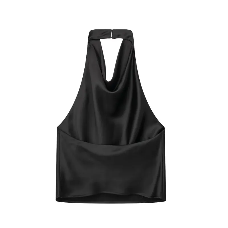 Yipinpay Satin Halter Top Female Sexy Backless Top Woman Party Night Off Shoulder Tops For Women 2023 Fashion Sleeveless Crop Top