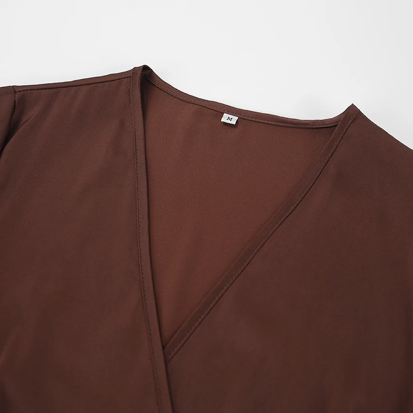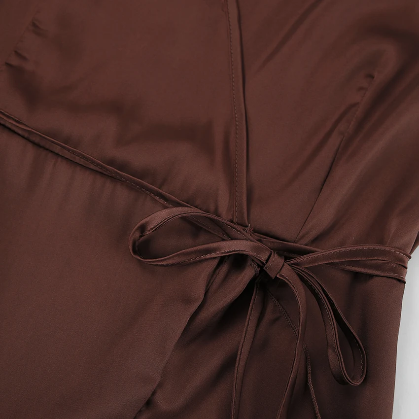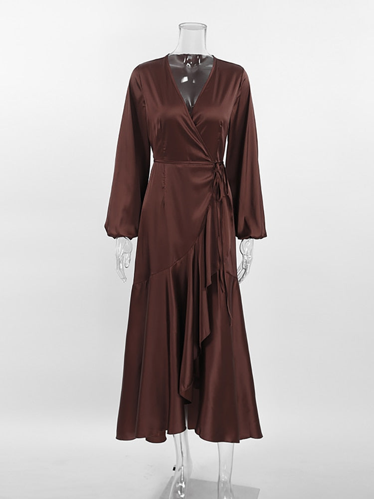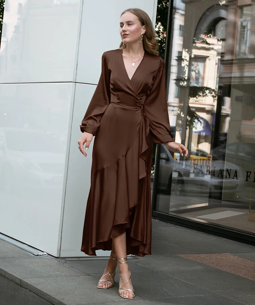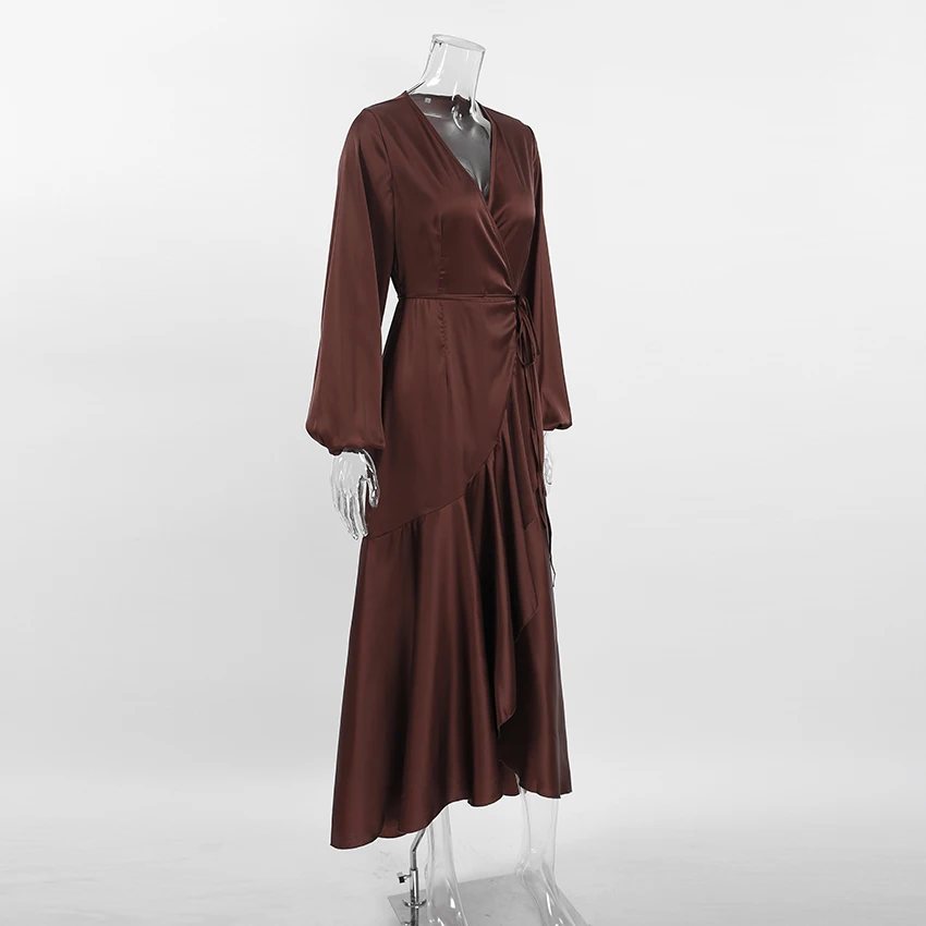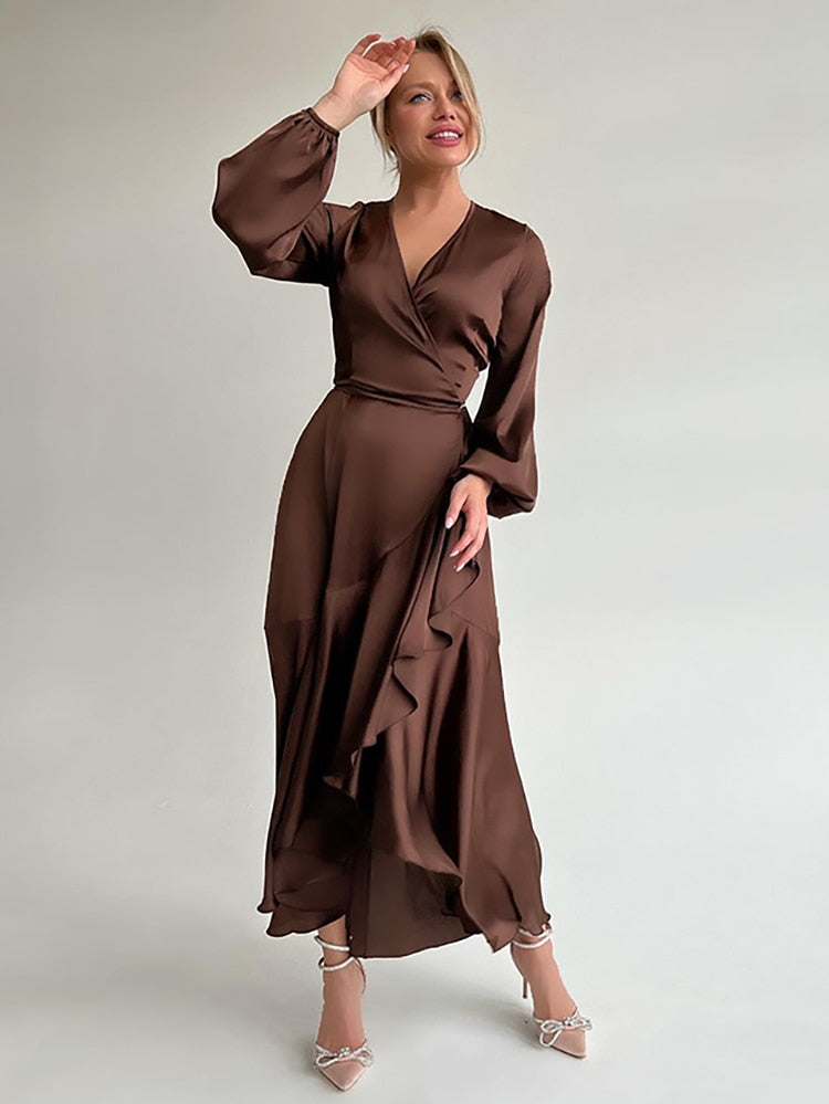 Yipinpay Satin Party Elegant Dress Women Silky Wrap French Mermaid Dress Ruffled Evening Lantern Sleeve Prom Dresses Flowing