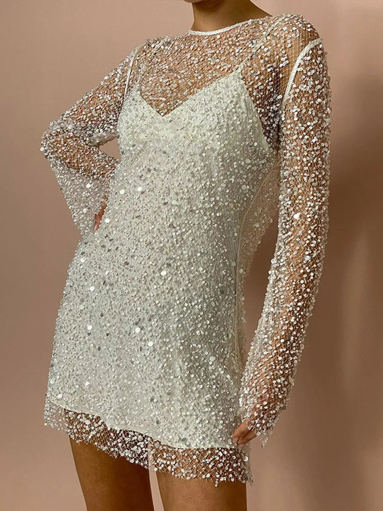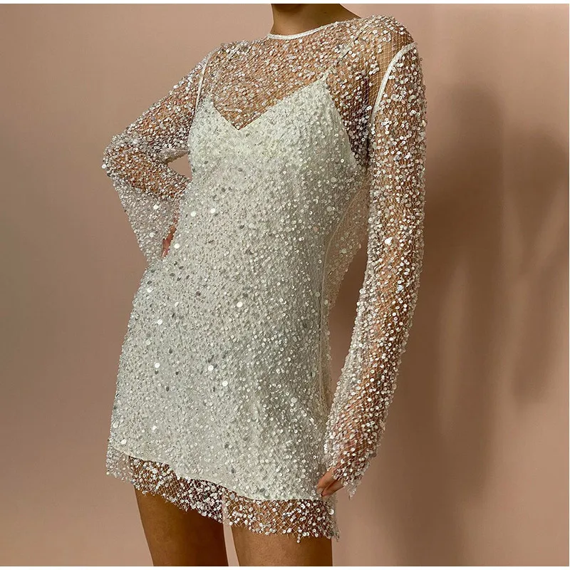 Model Number: Bubble Bead Perspective Mesh Two-piece Sling Dress