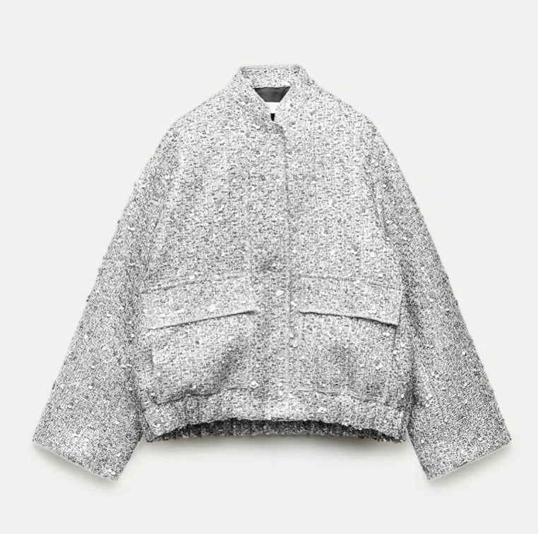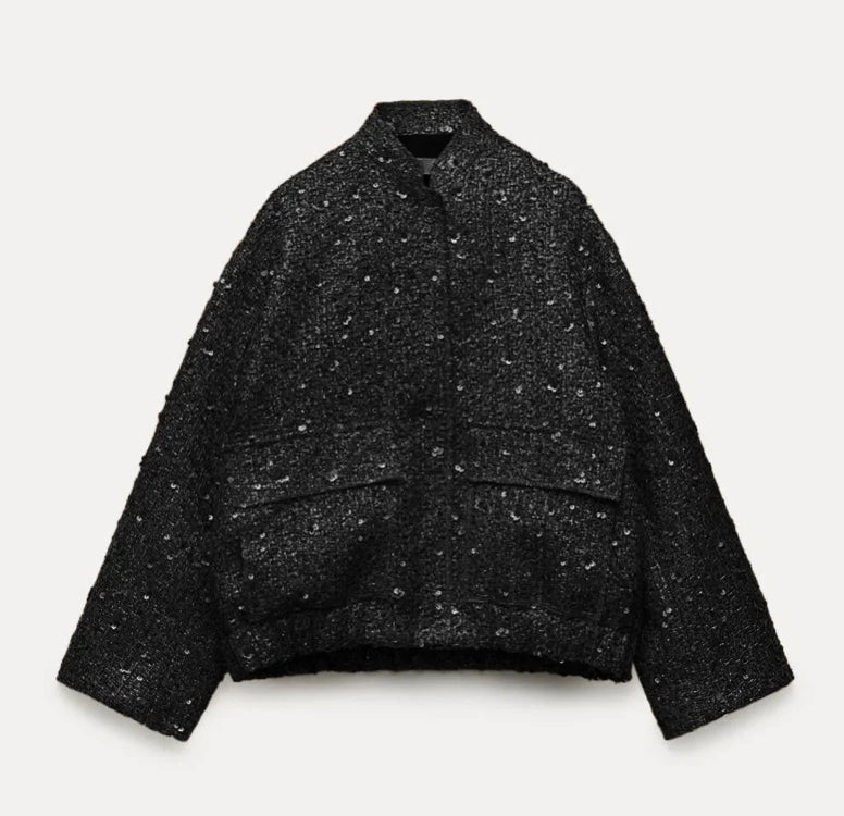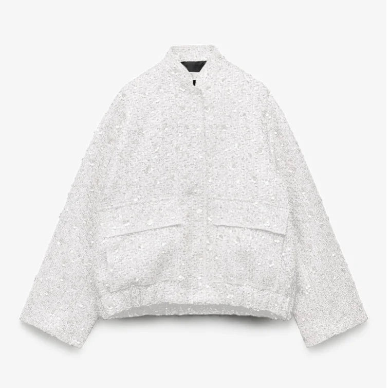 Model Number: Metal Color Sequin O Neck Jacket For Women