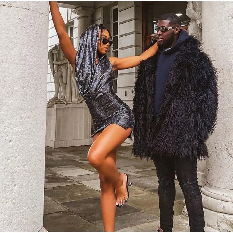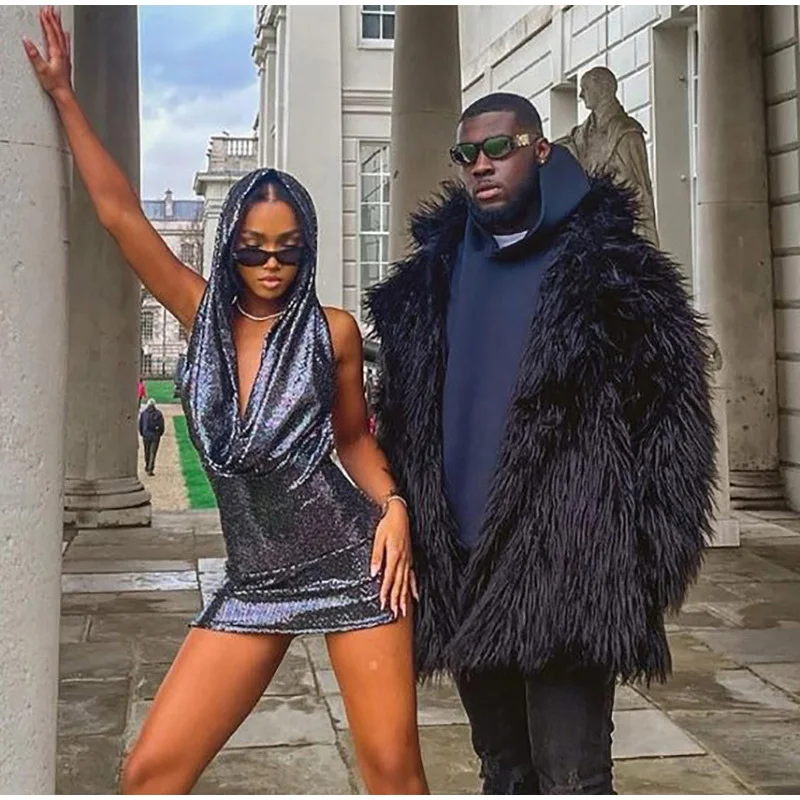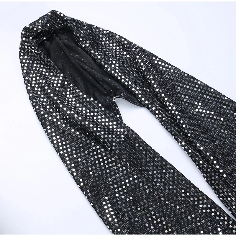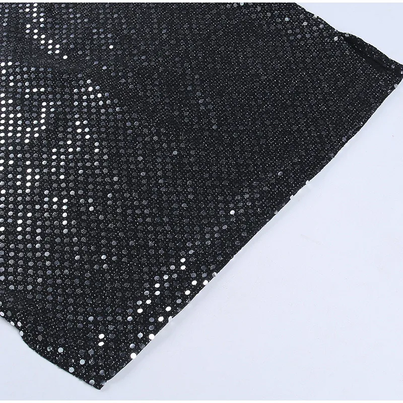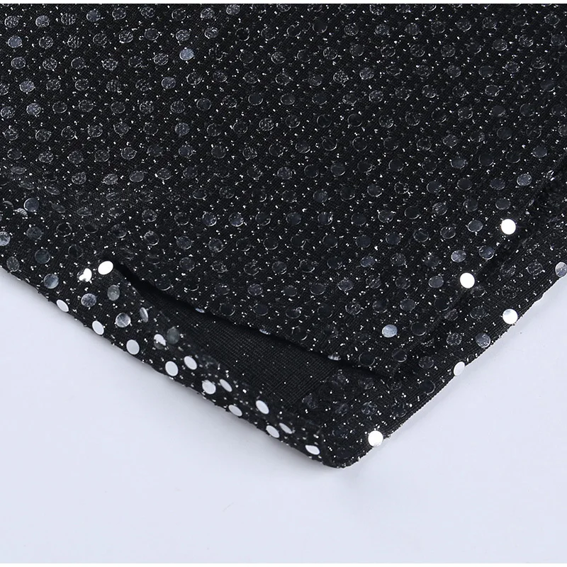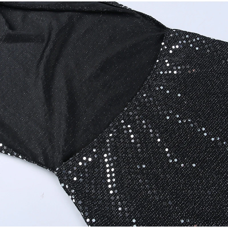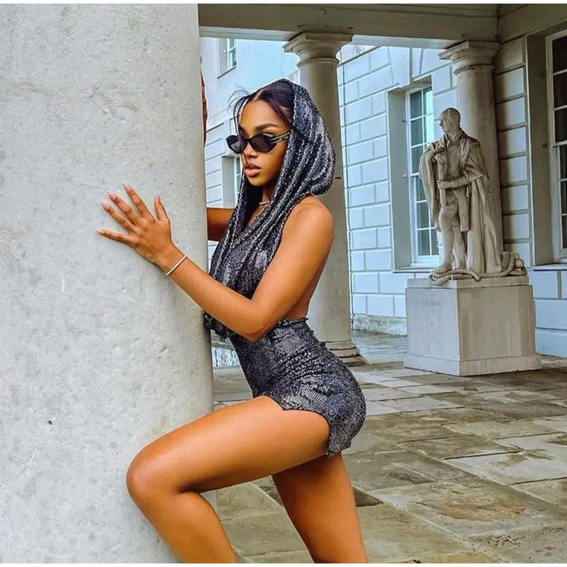 Yipinpay Sequin Hooded Backless Halter Dress For Women Fashion Solid Sleeveless Slit Mini Dresses 2023 High Street Swing Collar Robe