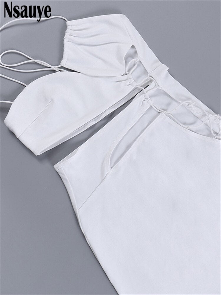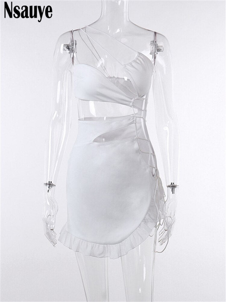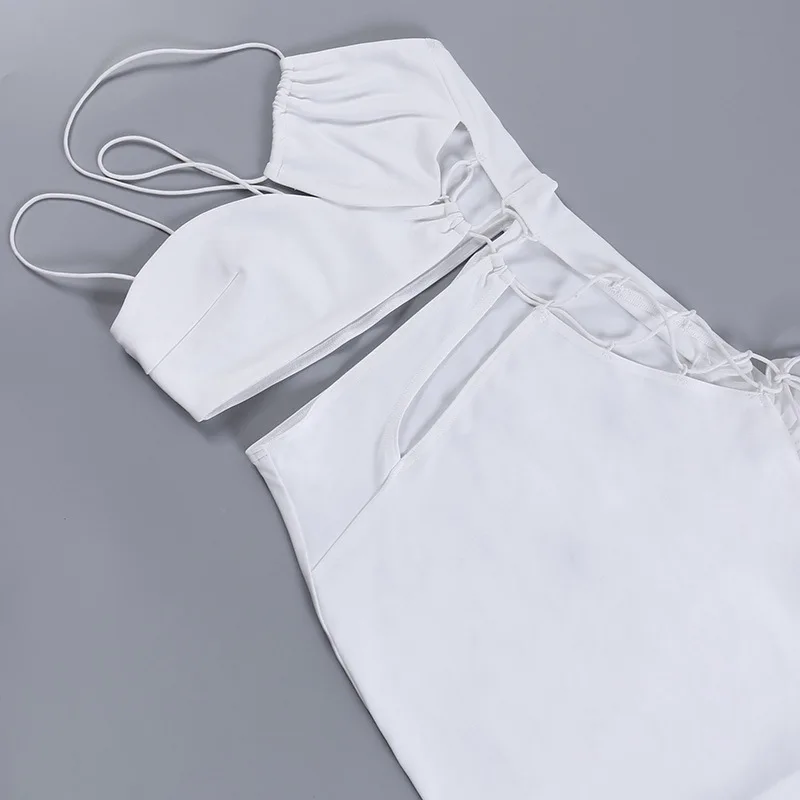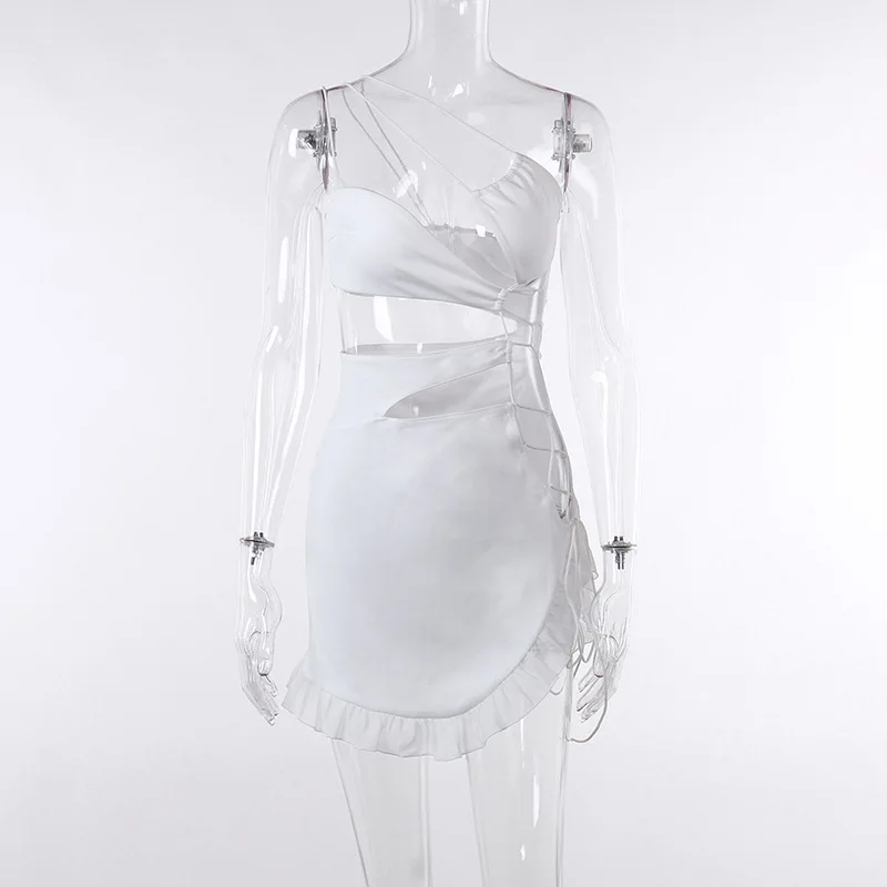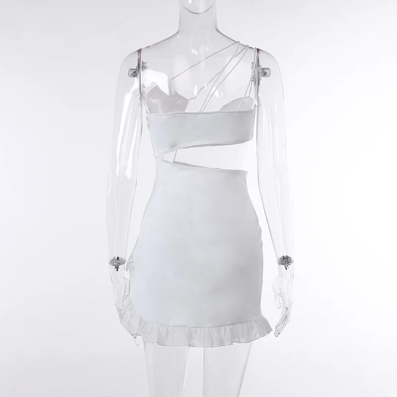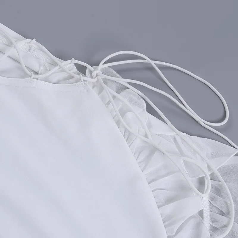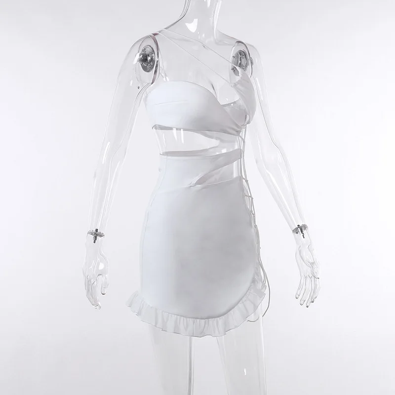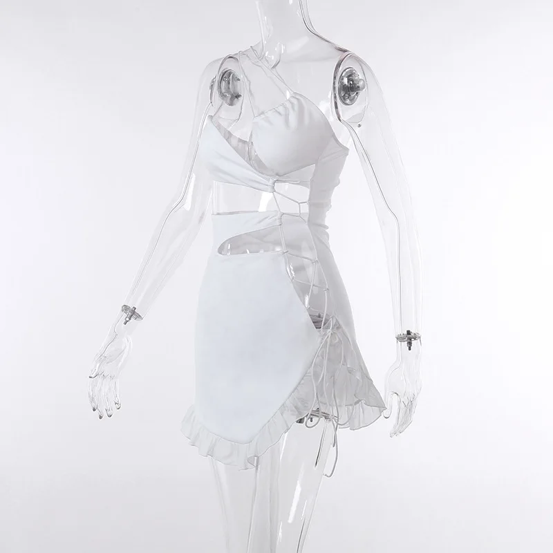 yipinpay Sexy Backless Night Club Fashion Elegant Outfits Mini Dress Women Summer 2023 Hollow Out Sleeveless Ruffles Party Dress 920