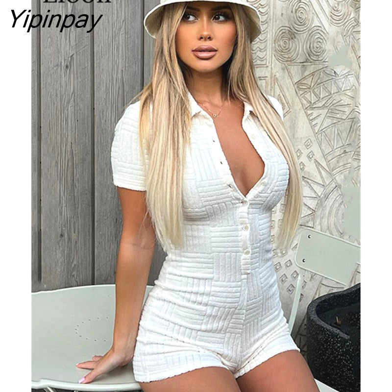 Yipinpay Sexy Button Up Playsuit For Women Jumpsuit Summer Short Sleeve Turndown Collar Streetwear Bodycon Rompers White Jumpsuits