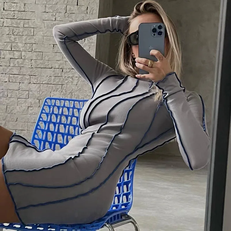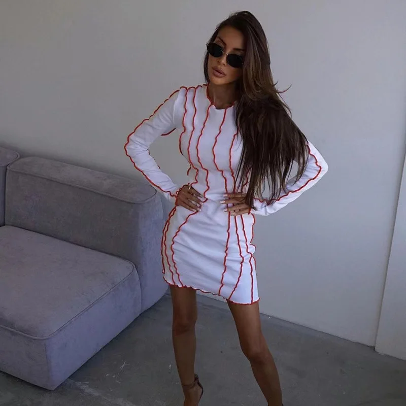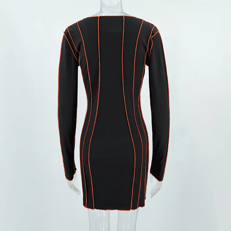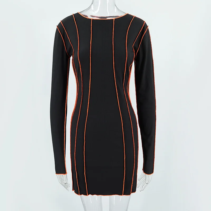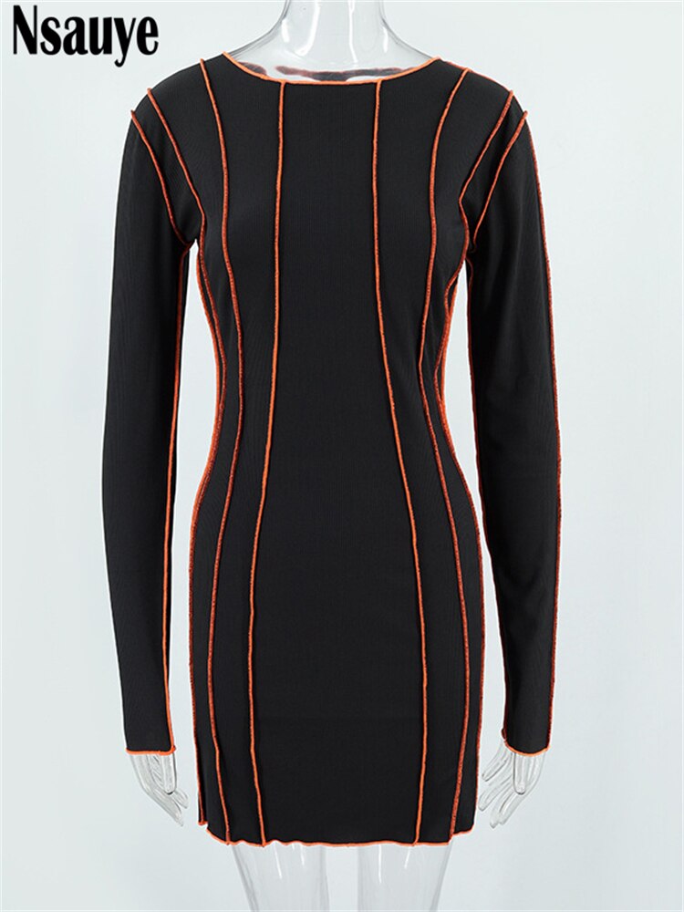 yipinpay Sexy Evening Club Y2K Party Mini Bodycon Women Black Ribber Knitted Dress Fashion Long Sleeve Clothes 2023 Casual Dress