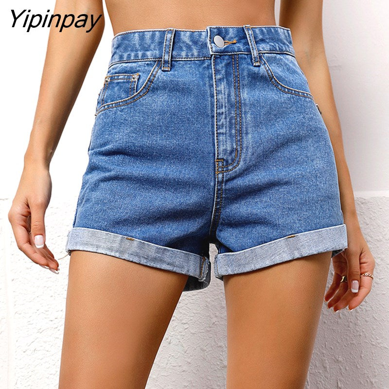 Yipinpay Sexy High Waist Curly Straight Jean Shorts Women Bottoms Summer 2023 New Streetwear With Pockets Blue Cuffed Denim Shorts