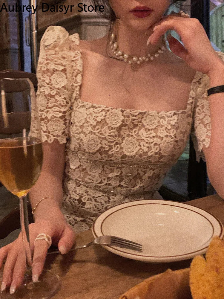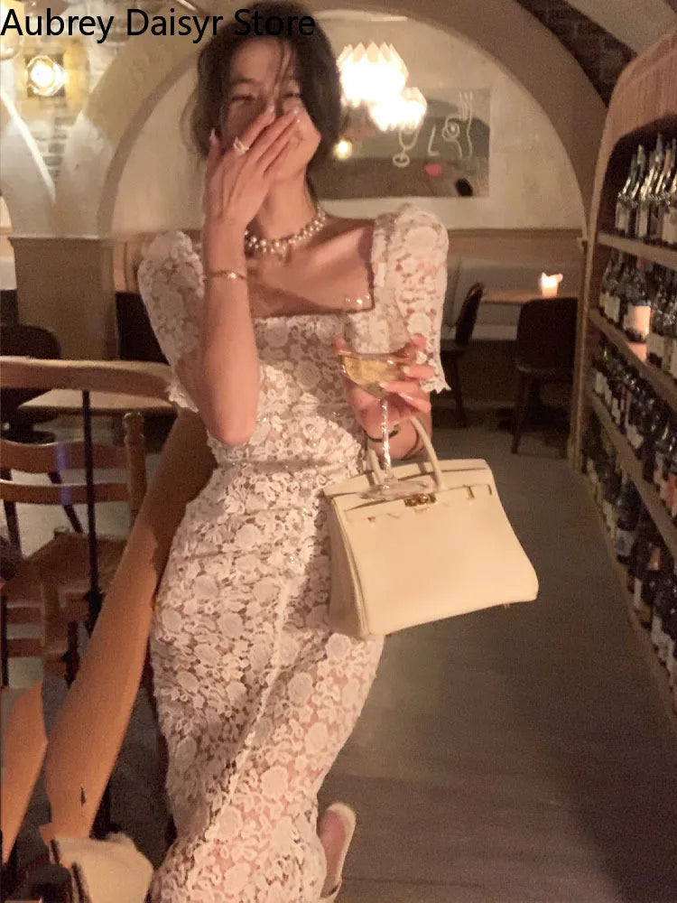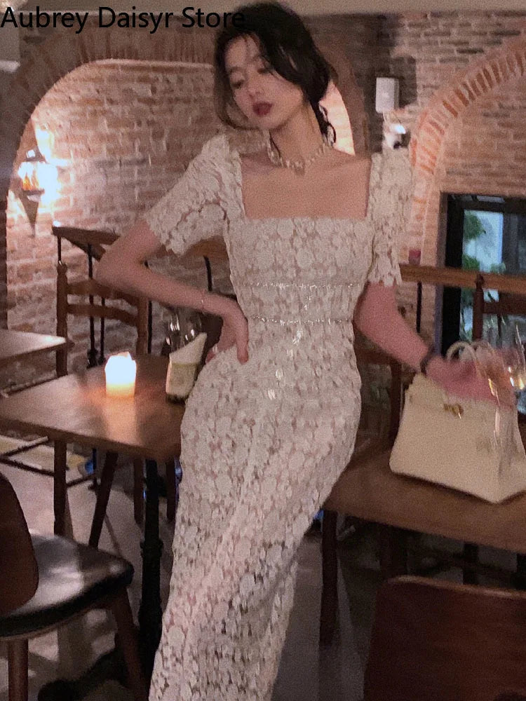 Yipinpay Sexy Long Lace Dress Women Korean Elegant Vintage Chic Design Bodycon Dress Female Summer Casual Evening Party Dress