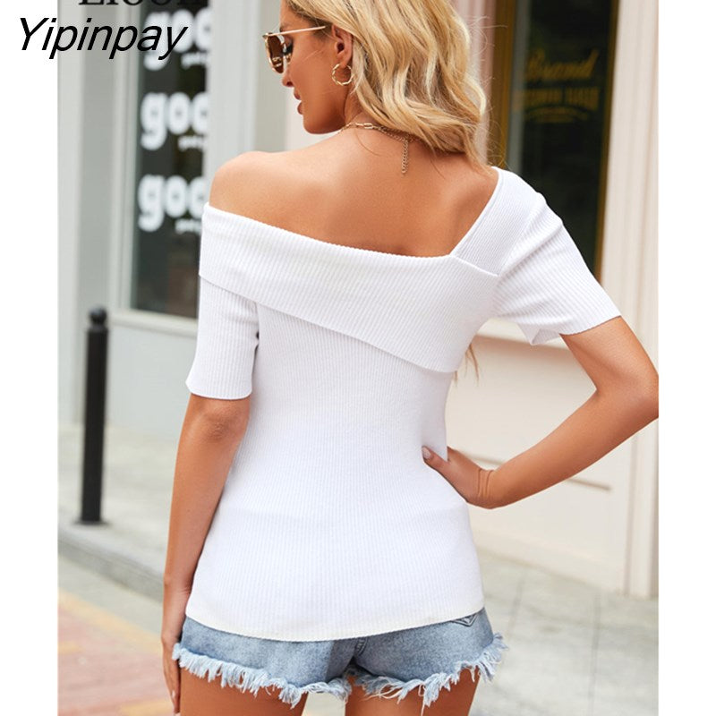 Yipinpay Sexy Off Shoulder Knit T Shirt Women Ribbed Top Short Sleeve Basic Tees Summer Tshirt Black White Bodycon Knitted Tops