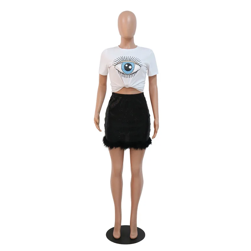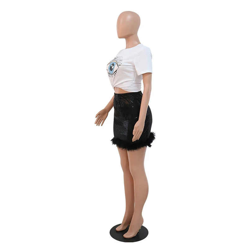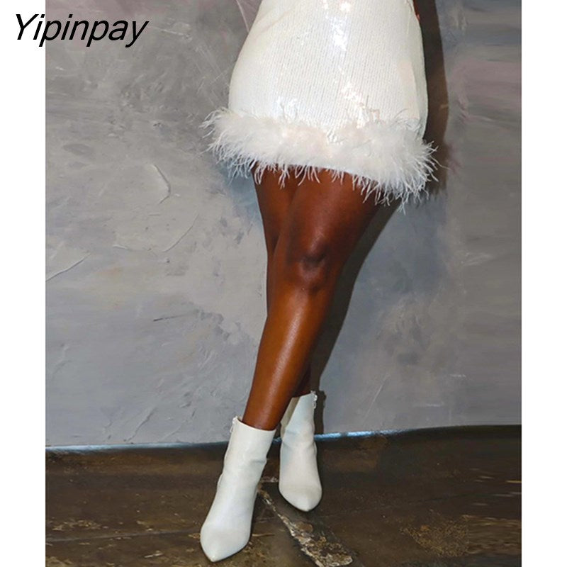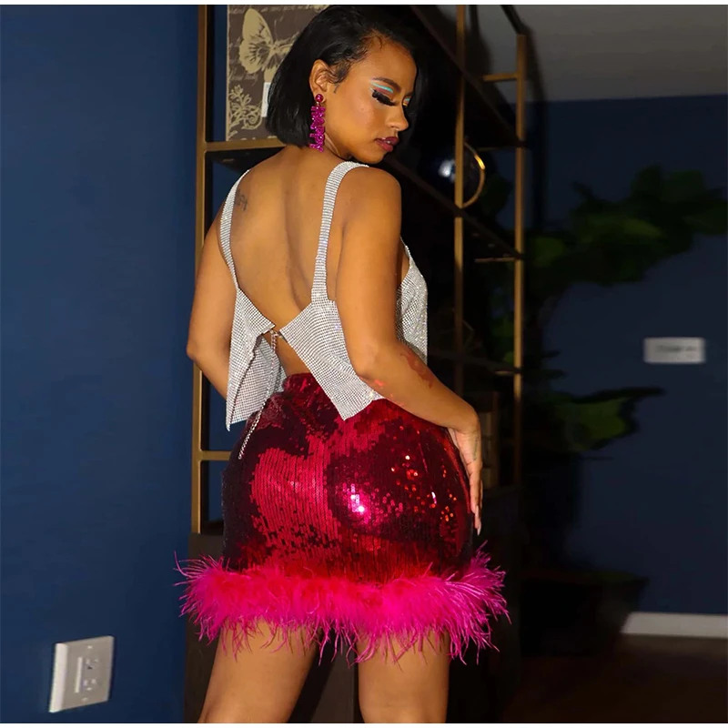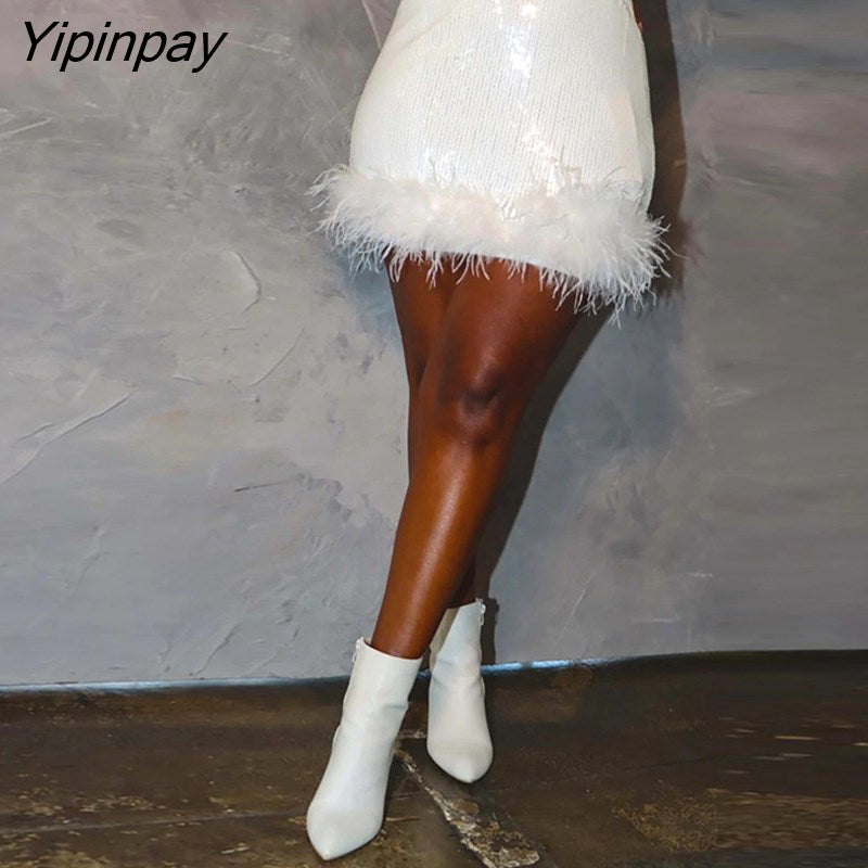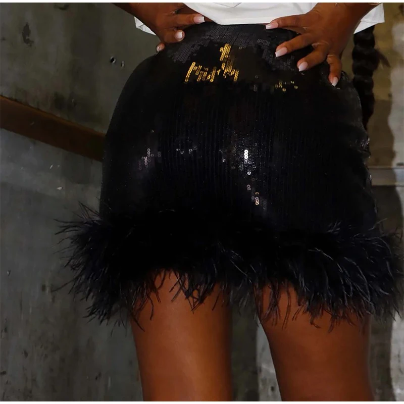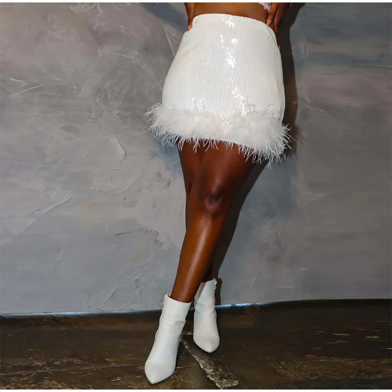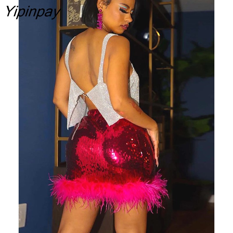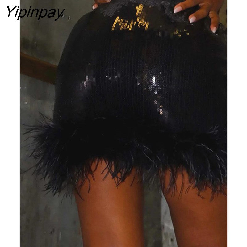 Yipinpay Sexy Sequins Feather Hip Skirt Lady Club Bar Banquet Wild Short Skirt Female Casual Dance Pants Mini Skirt Summer Fashion