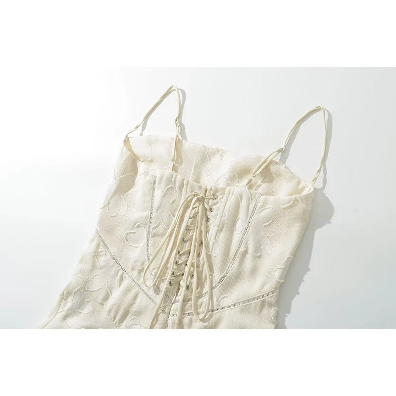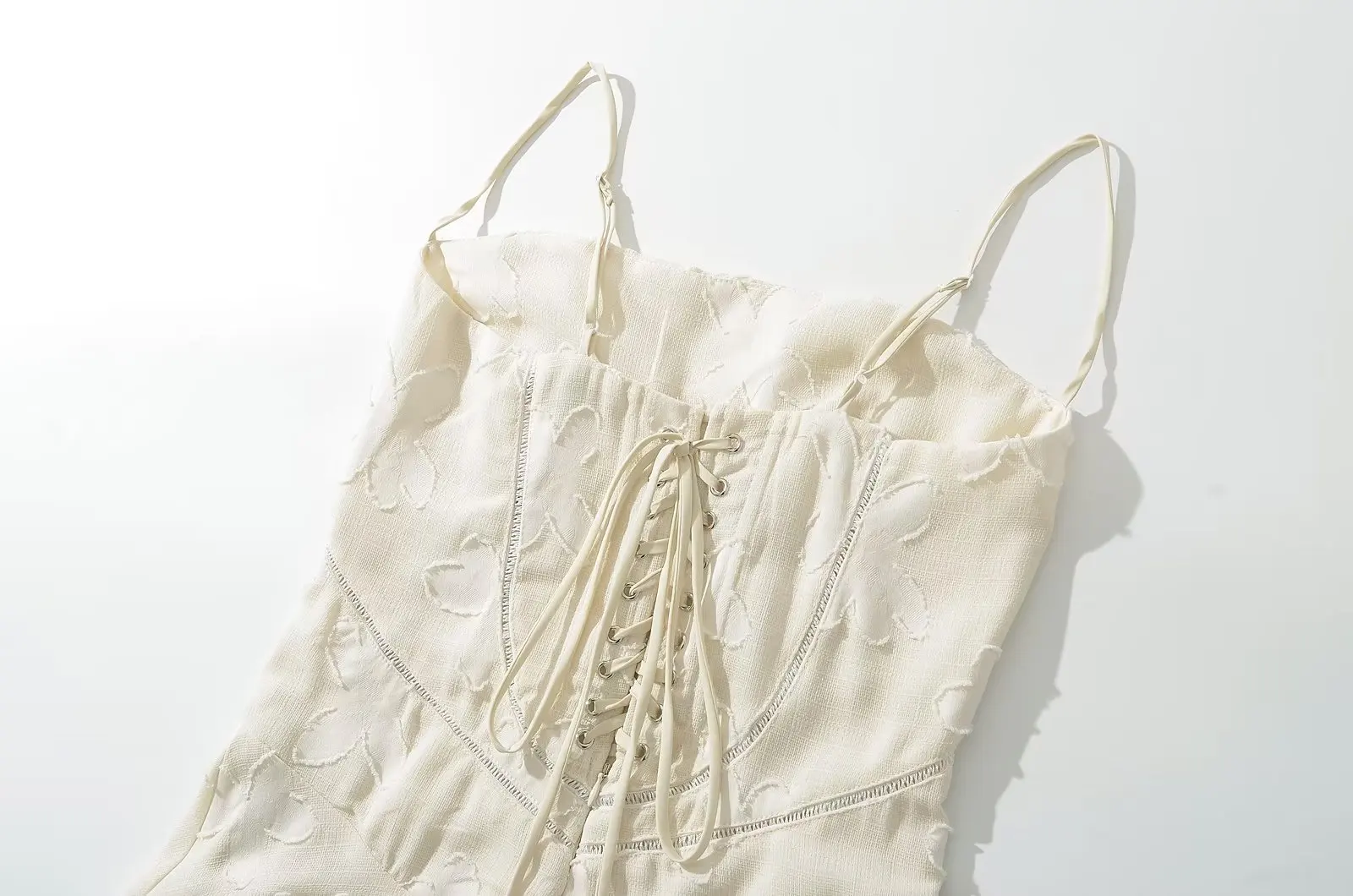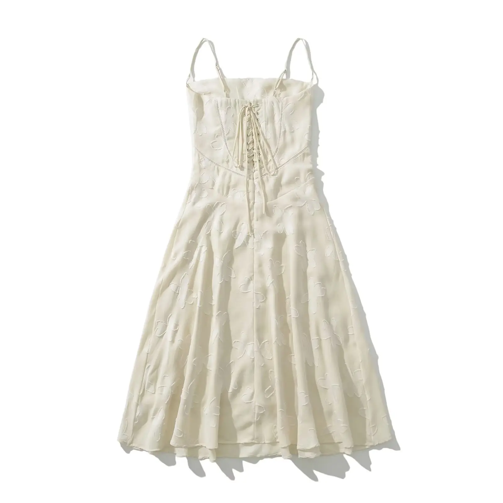 Yipinpay Sexy Women Cross Bandage Lacing Up Back Floral Sling Dress Party Hem A-line Midi Long Robe