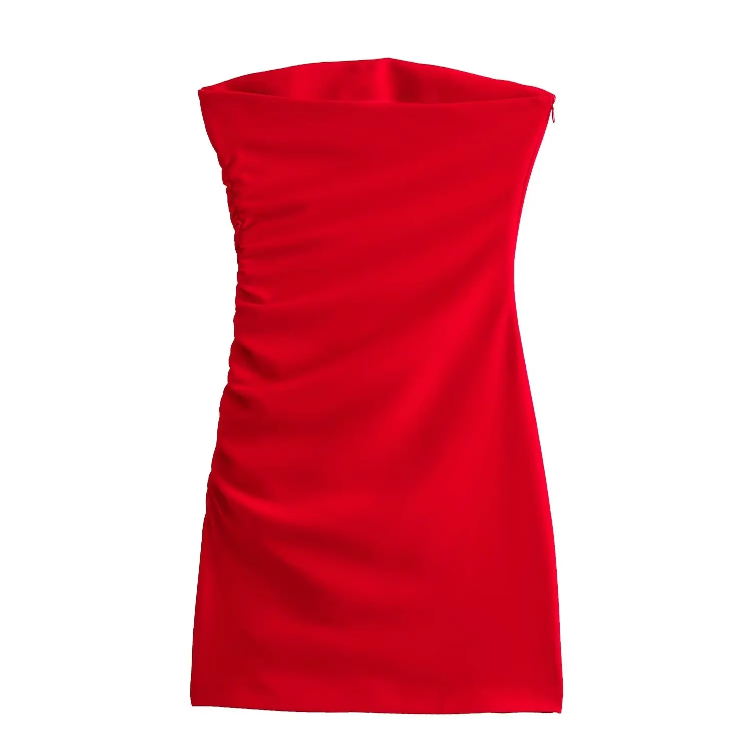 Yipinpay Sexy Women Red Ruched Strapless Mini Dress Christmas Party Vestidos