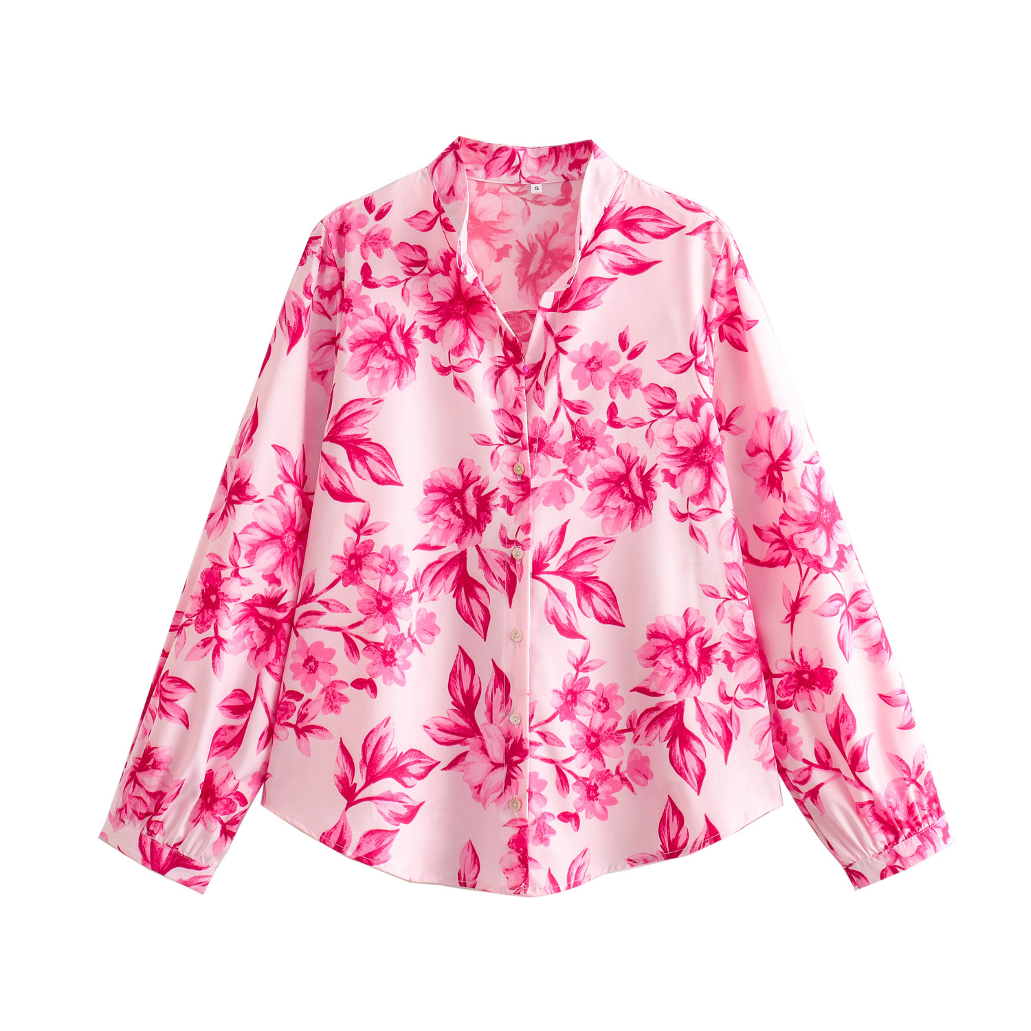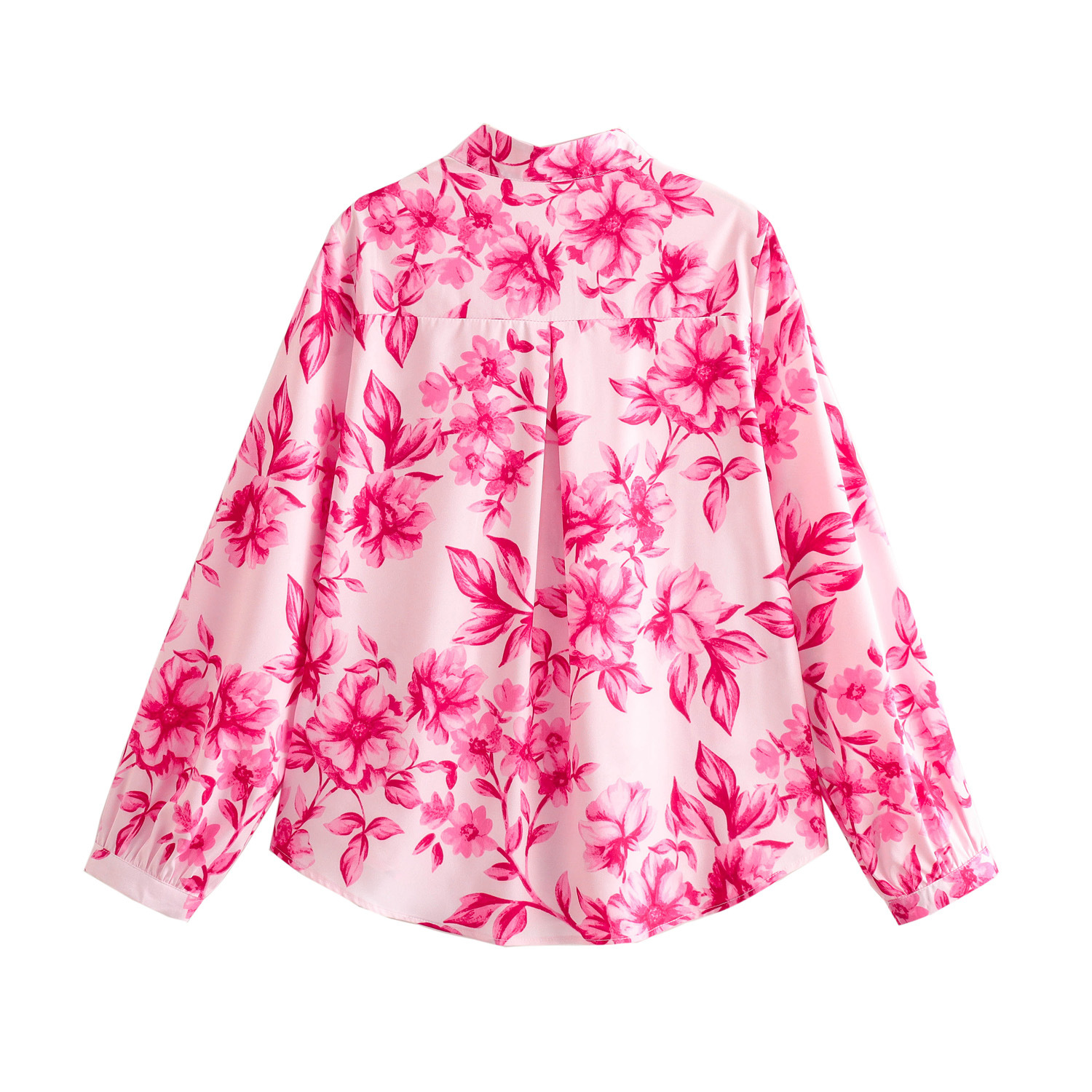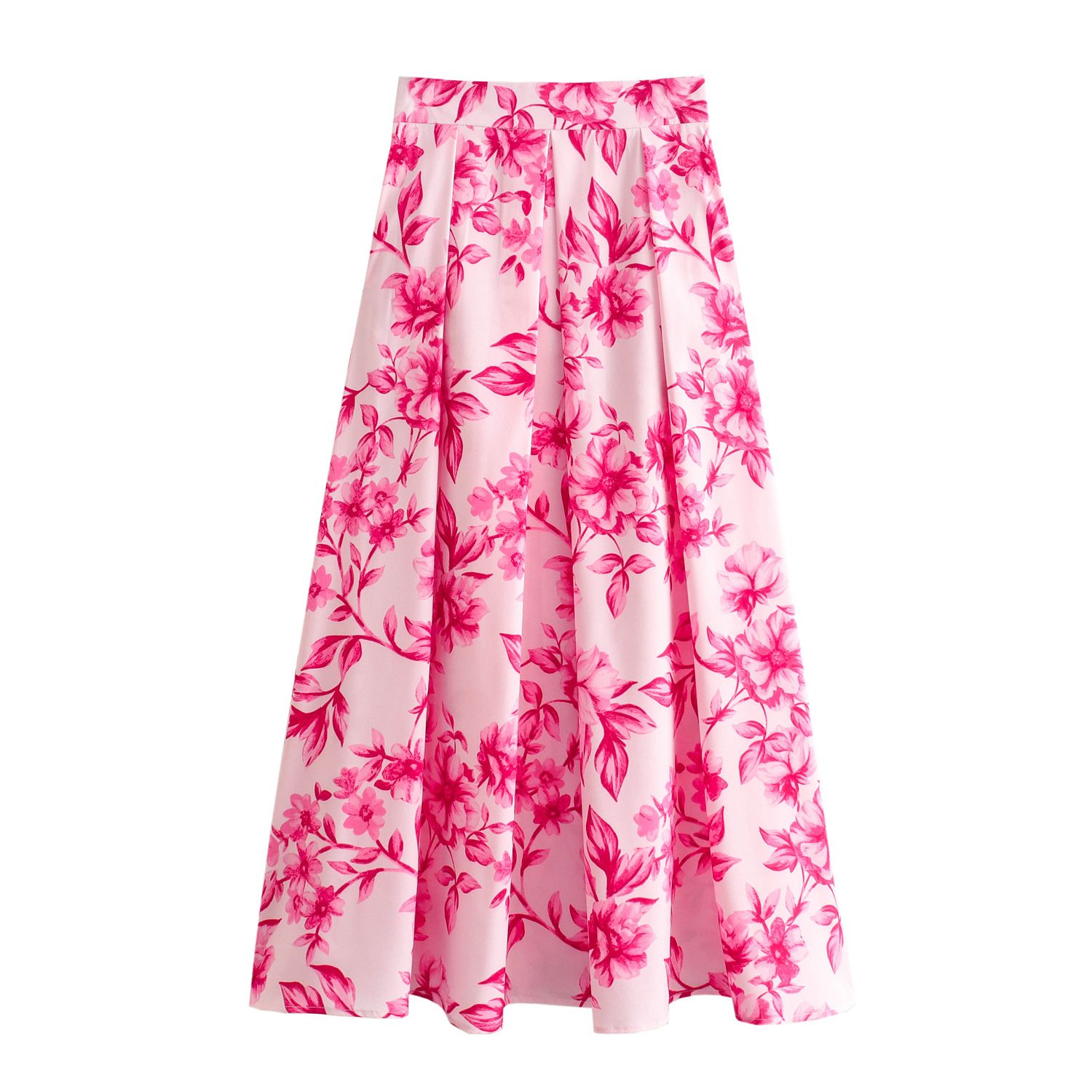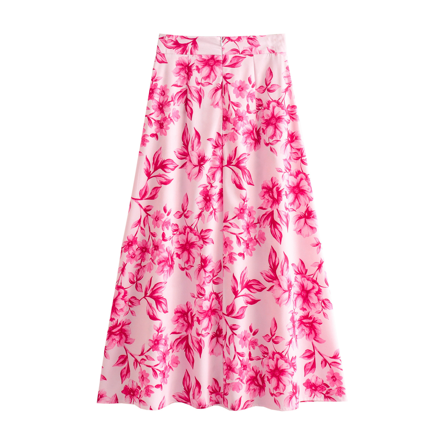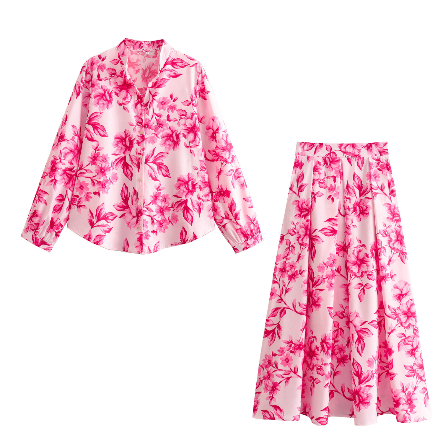 Yipinpay Shirt 7484067 Flower Printed Flute Skirt 7484067 Set
