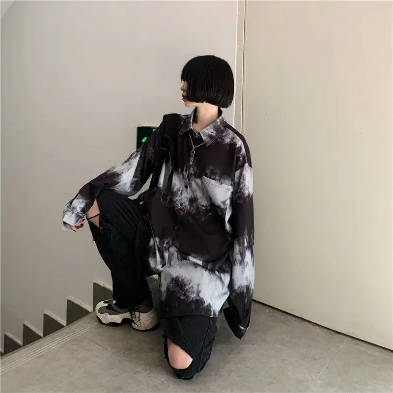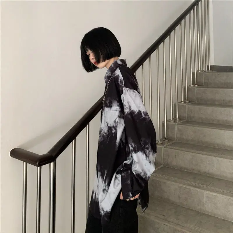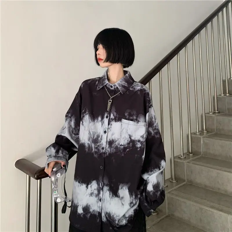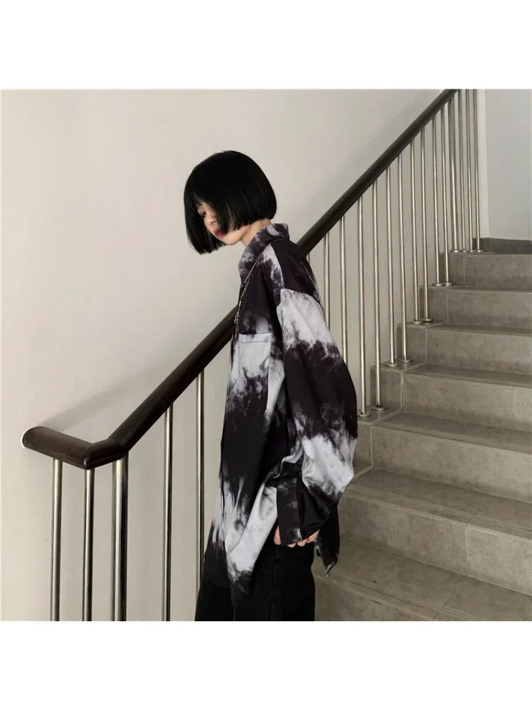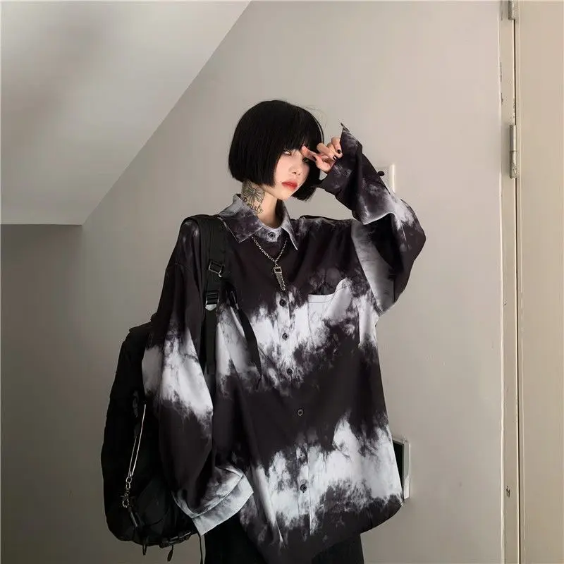 Yipinpay Shirts For Men Women 2024SS New Harajuku Bf Dark Gothic Wear All-match Long-sleeved Blouse Trend Black White Streetwear