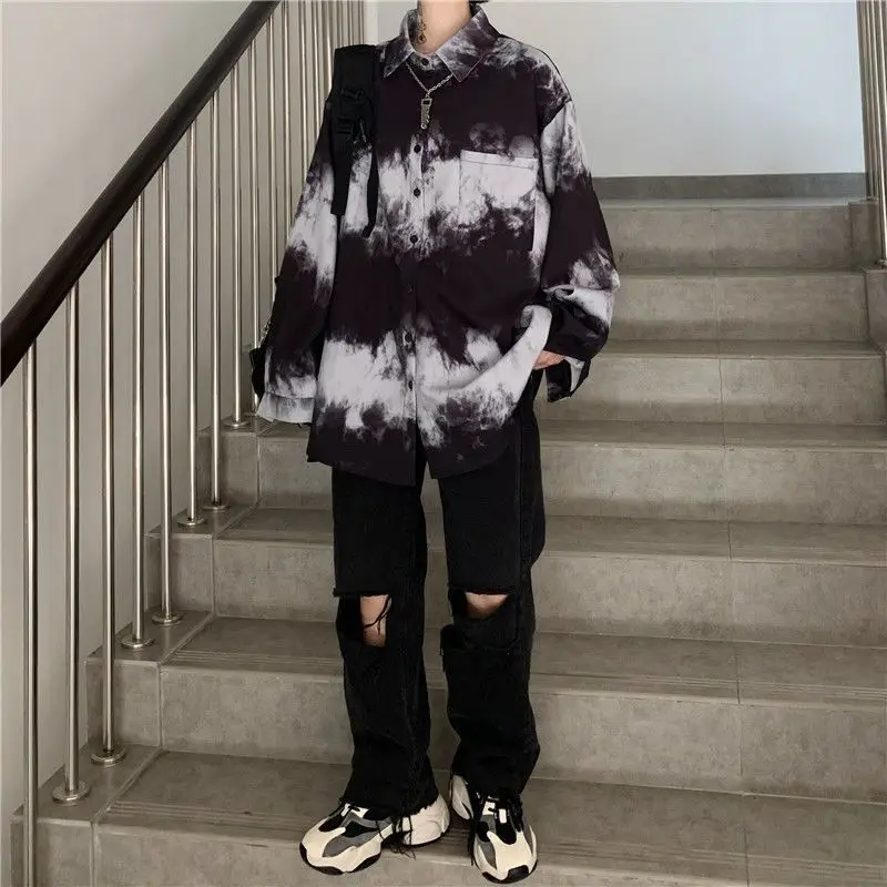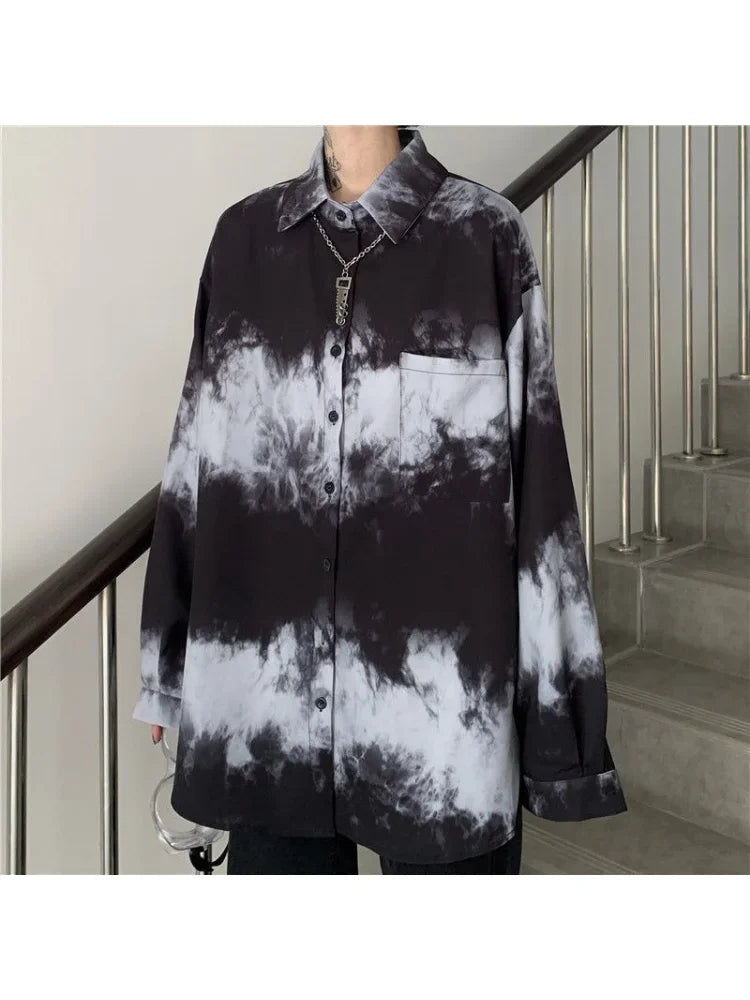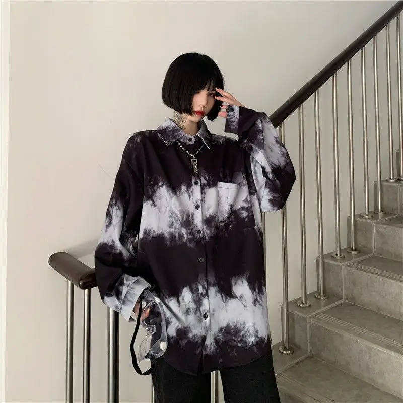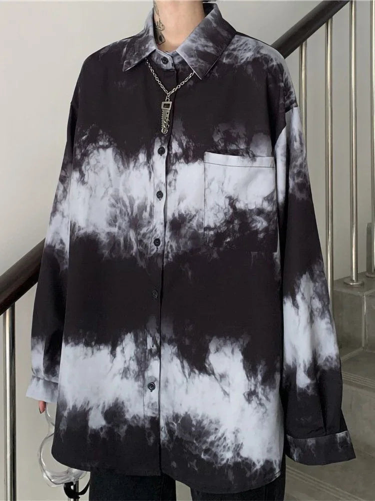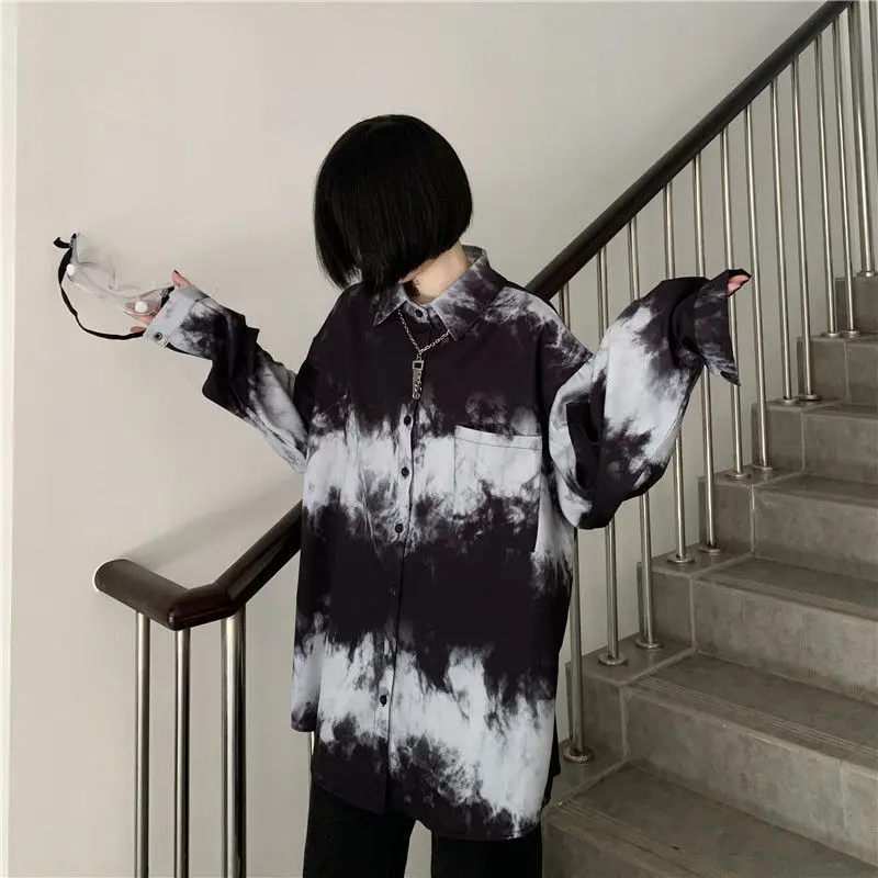 Yipinpay Shirts For Men Women 2024SS New Harajuku Bf Dark Gothic Wear All-match Long-sleeved Blouse Trend Black White Streetwear