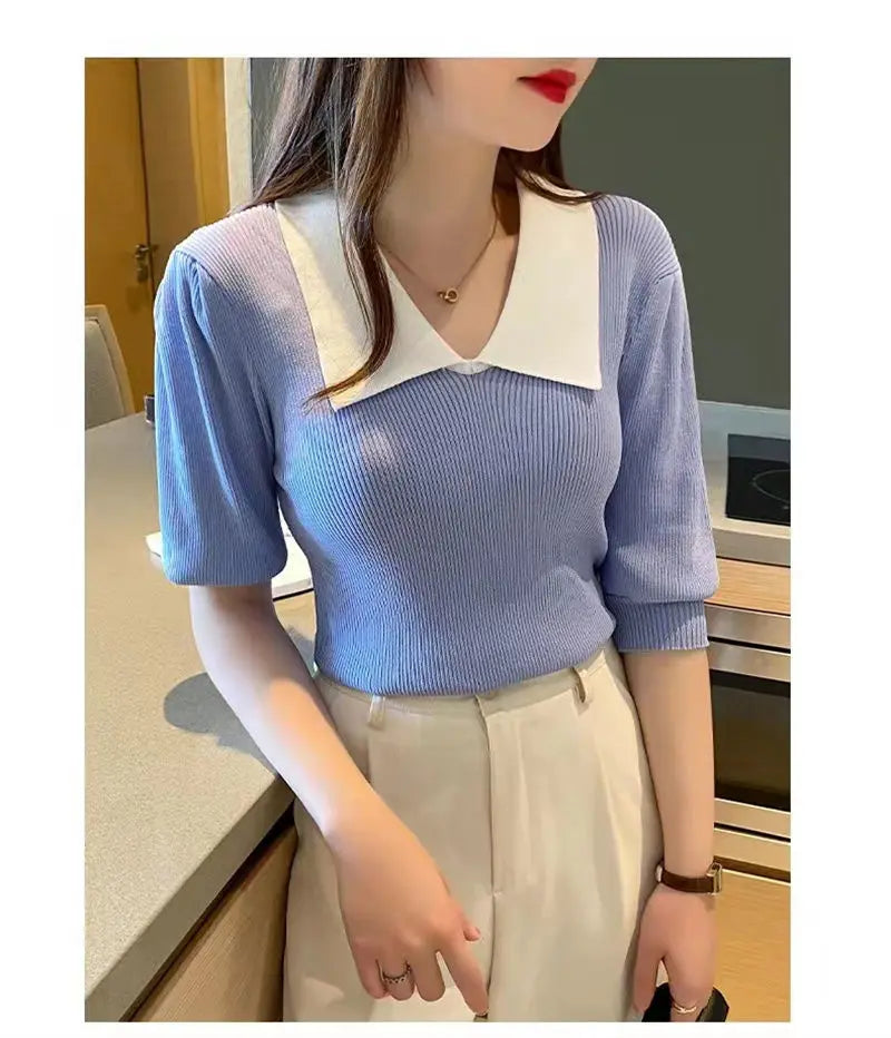 Yipinpay Shirts for Women Ice Silk Short Sleeve Black Tshirt Women Bubble Knitted Top Wild Slim Crop Top Ropa Mujer Y2k White Tee