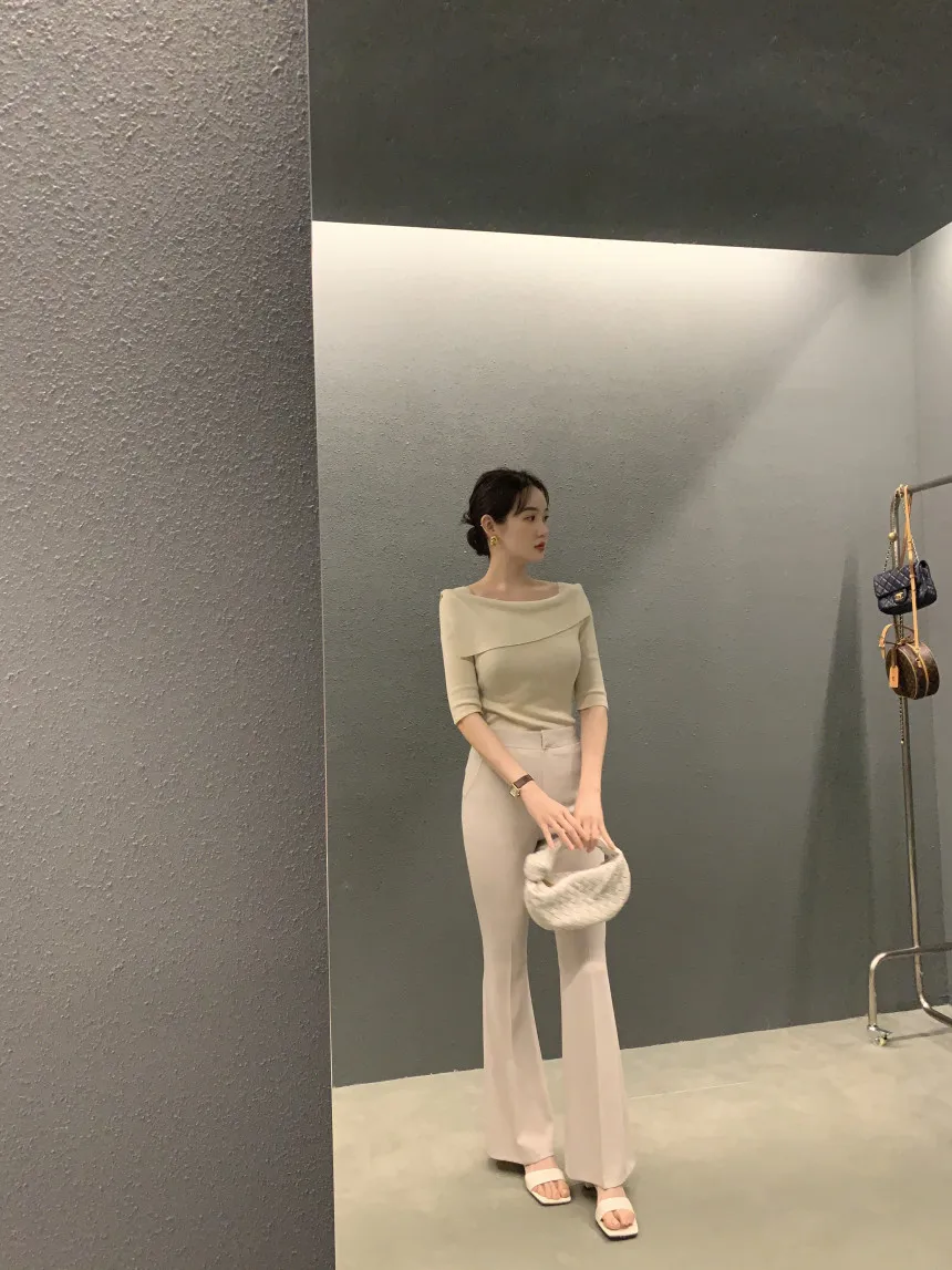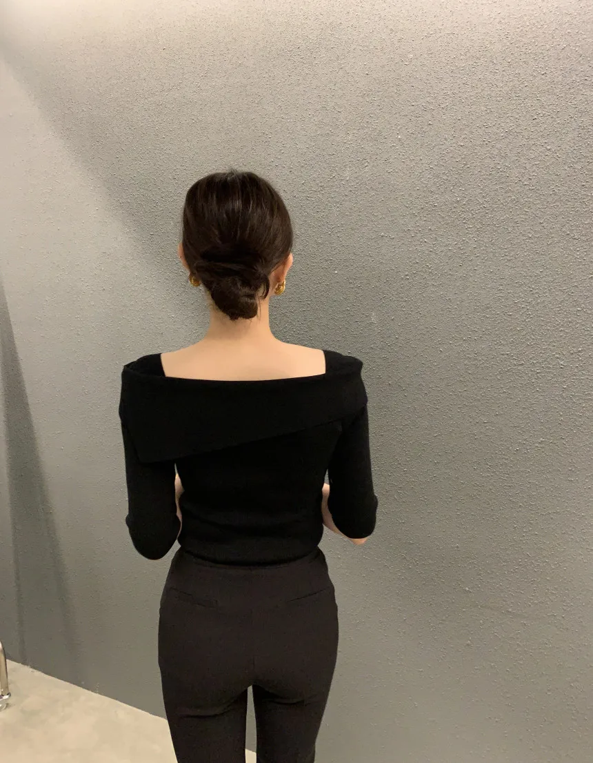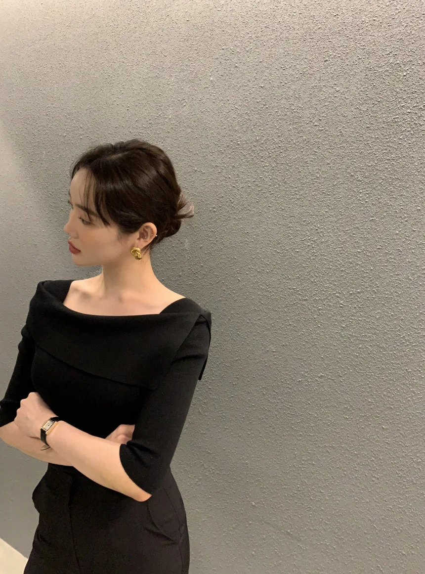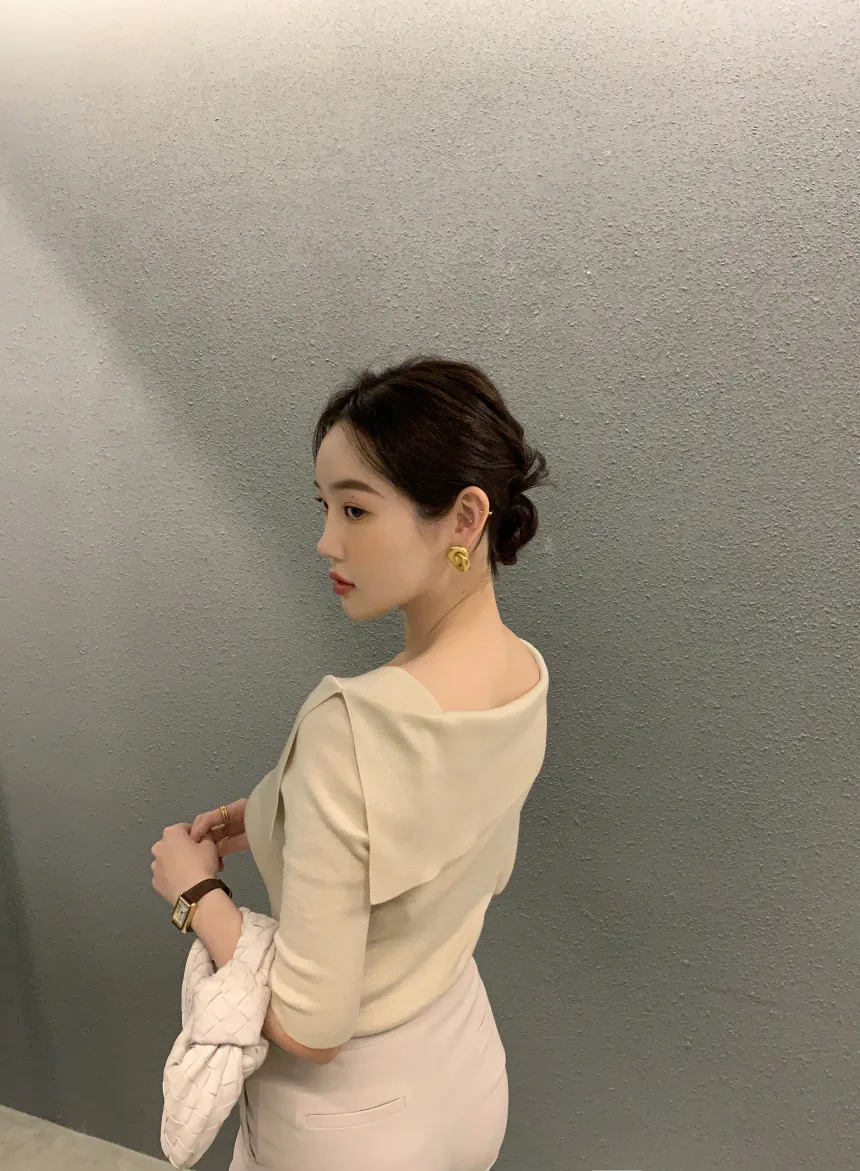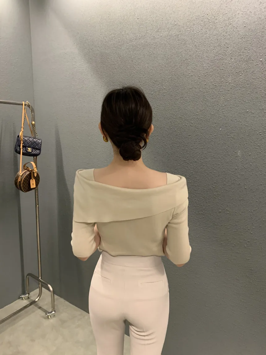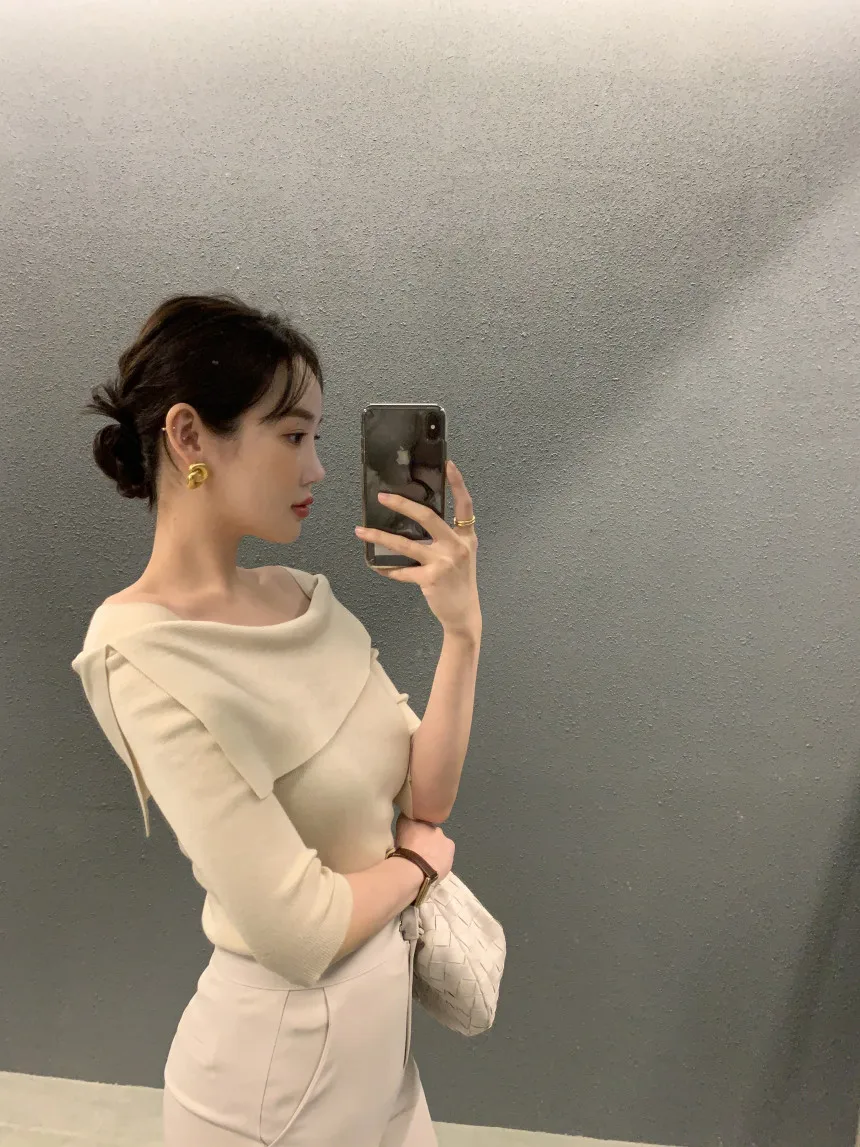 Yipinpay Shirts for Women Slim One Shoulder Half Sleeve T Shirt Women Thin Ice Silk White Top Short Sleeve Black Knitted Tshirt