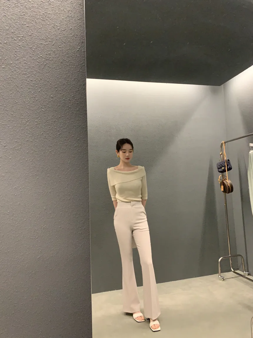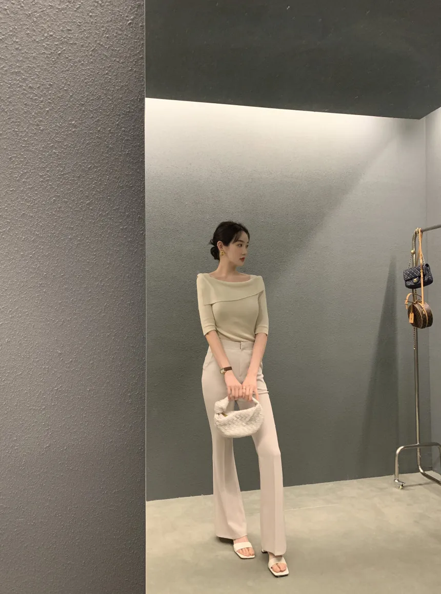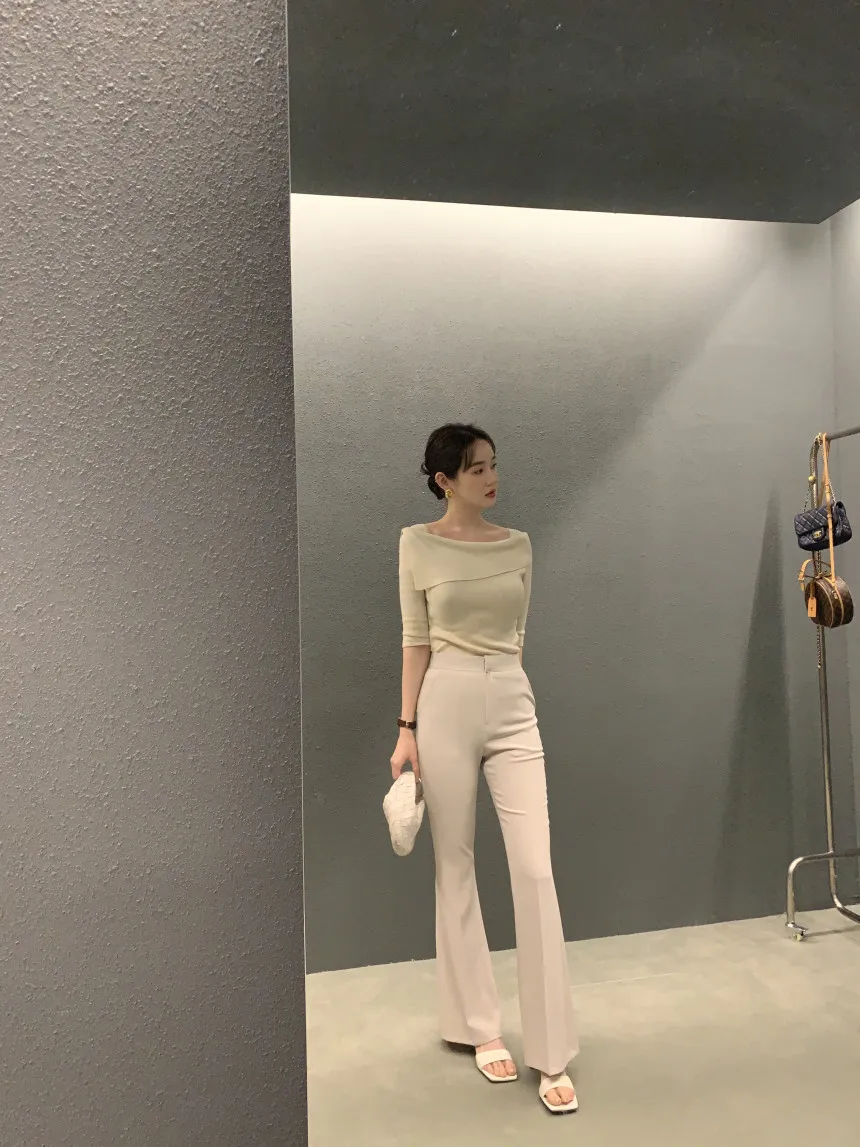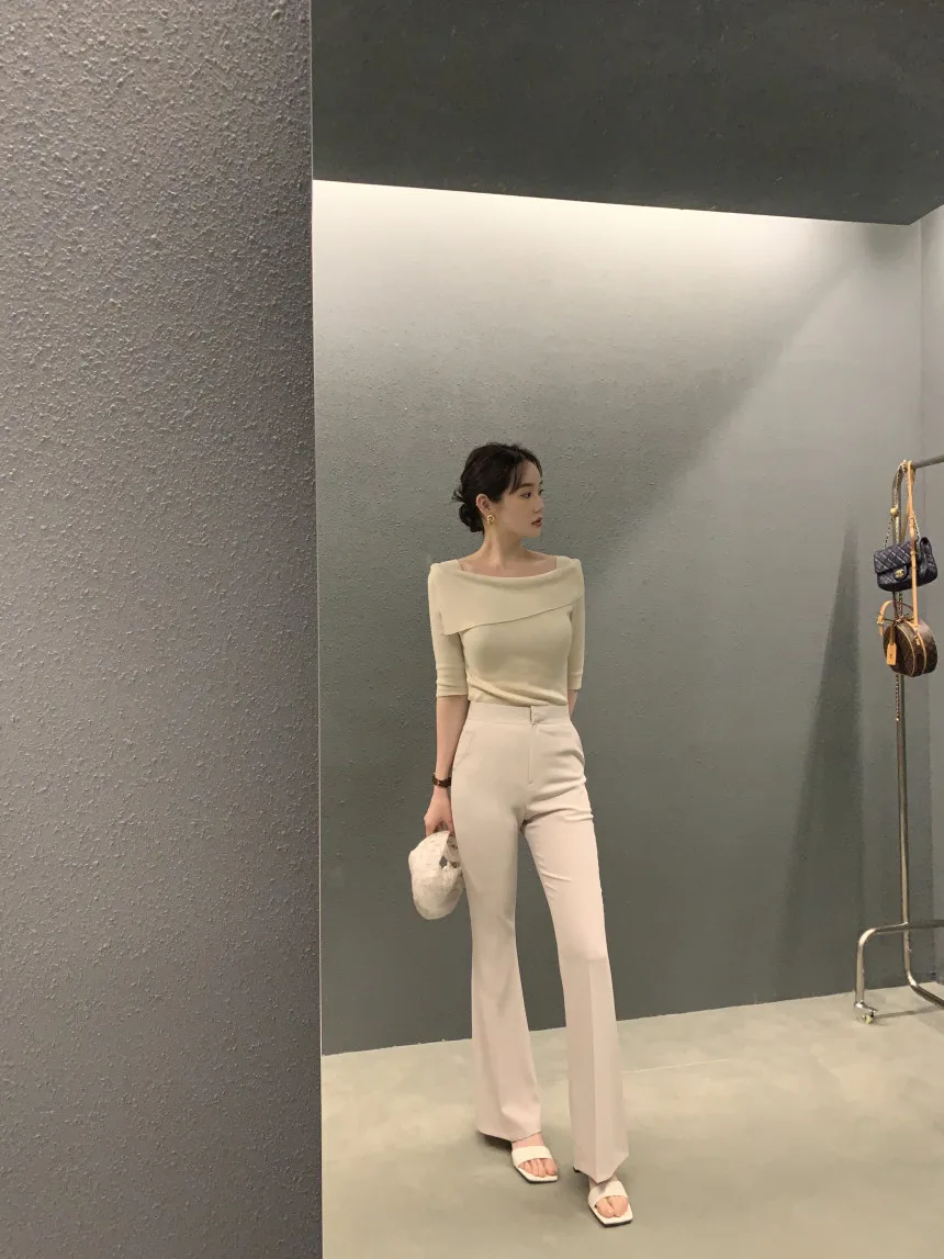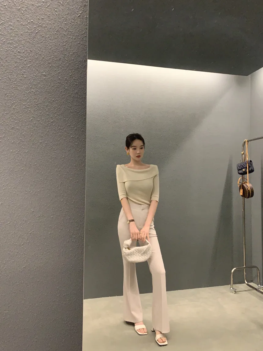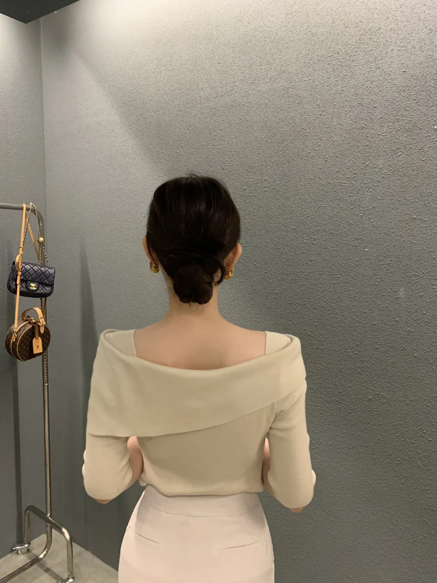 Yipinpay Shirts for Women Slim One Shoulder Half Sleeve T Shirt Women Thin Ice Silk White Top Short Sleeve Black Knitted Tshirt